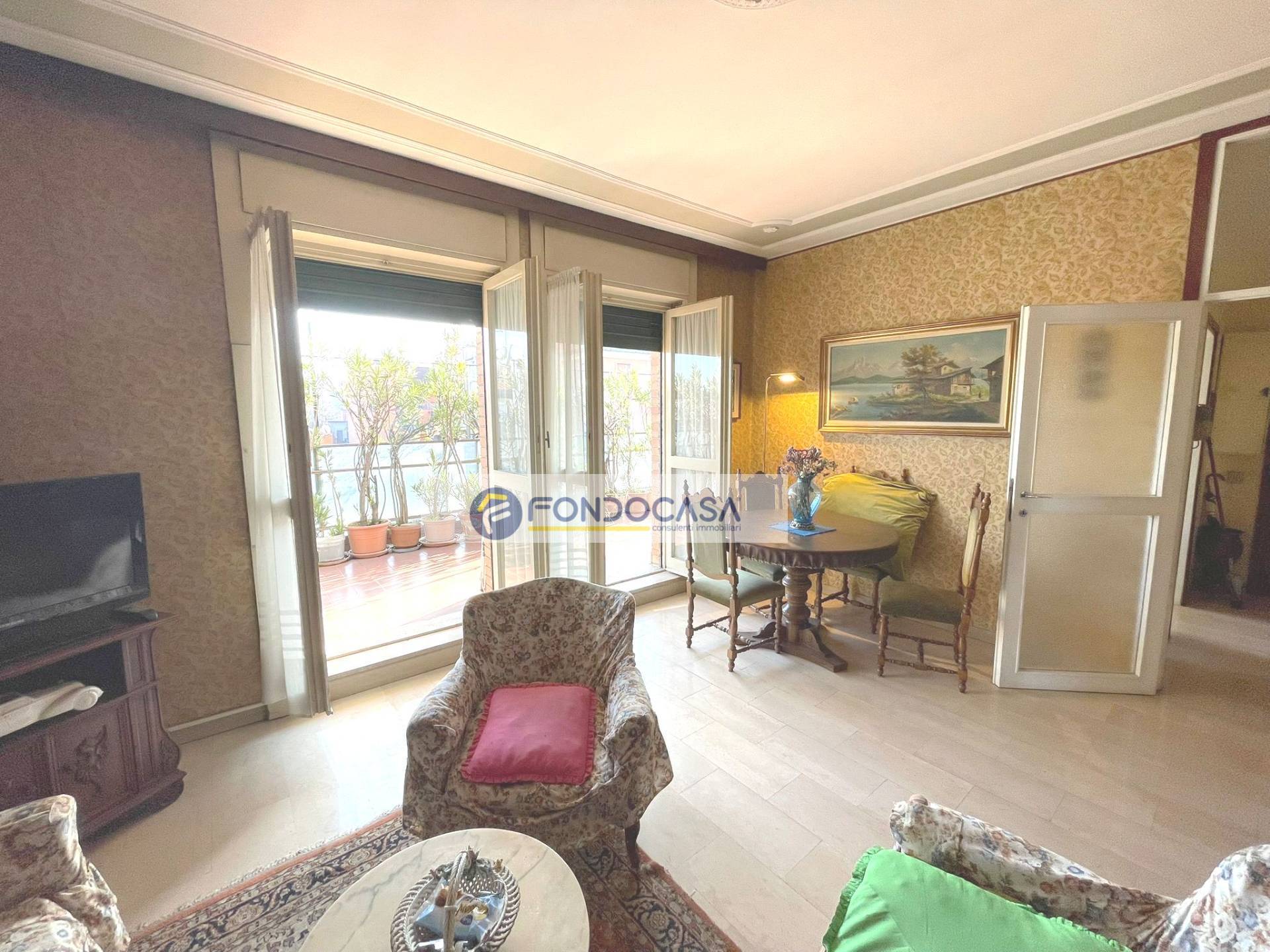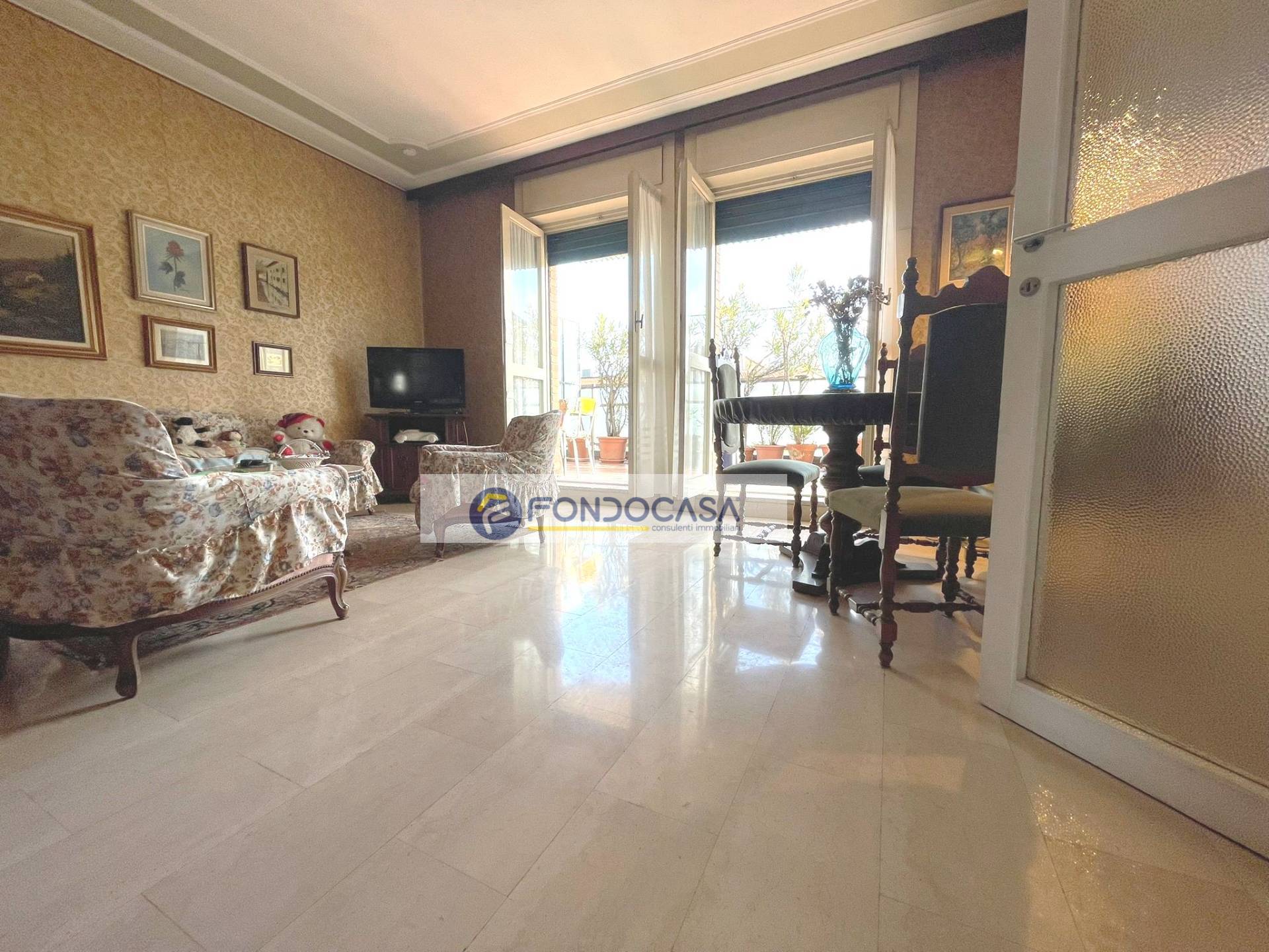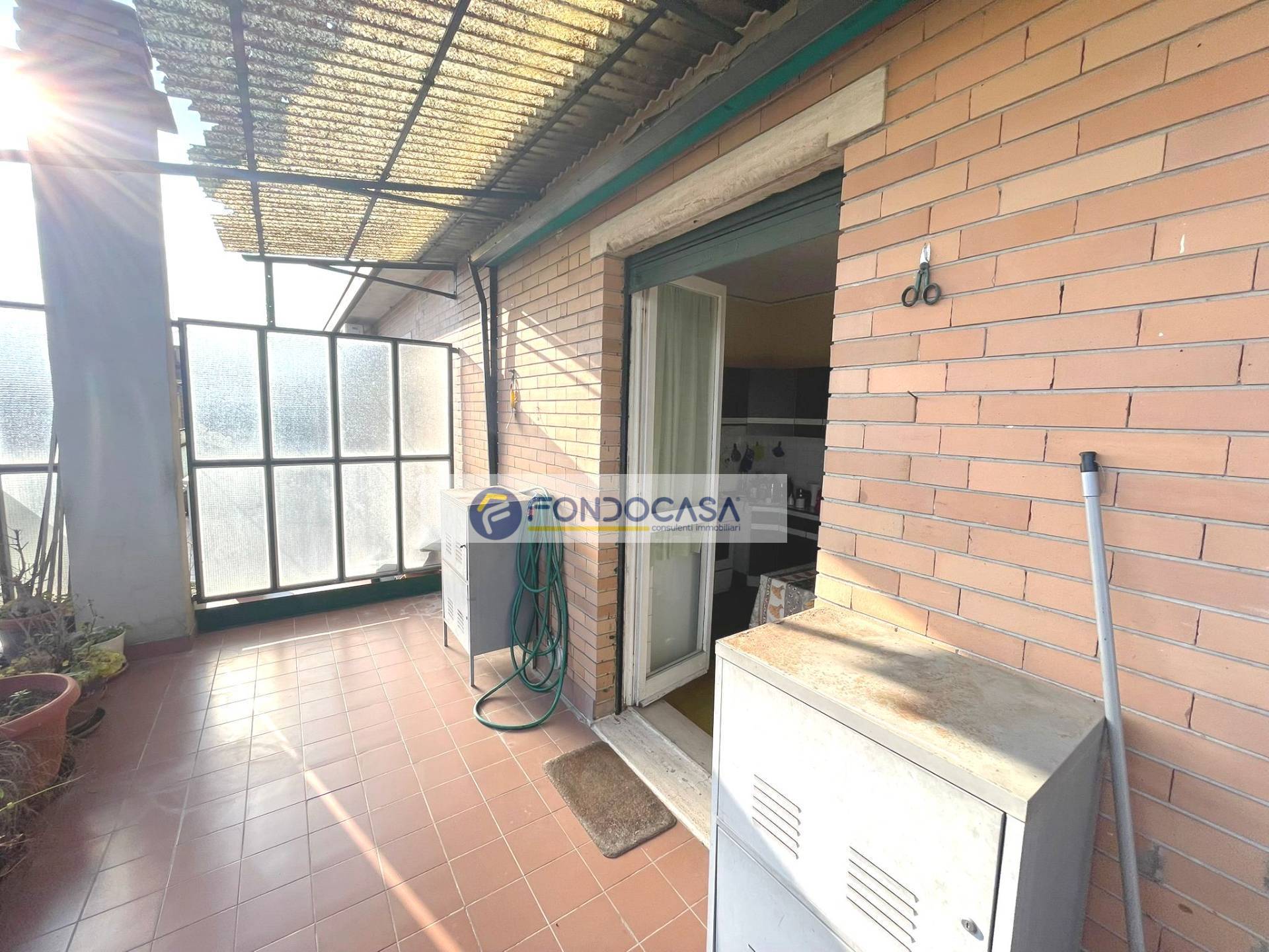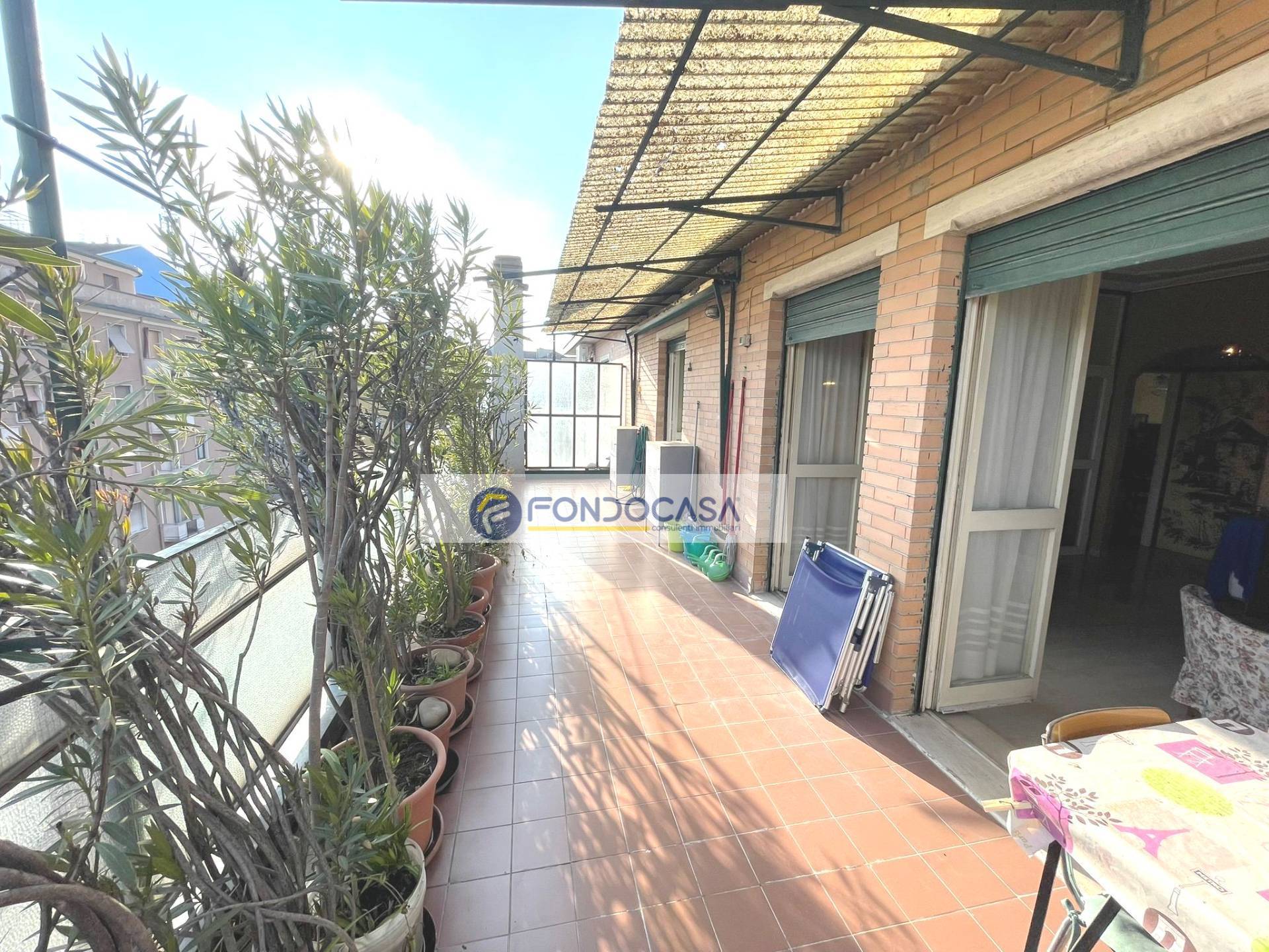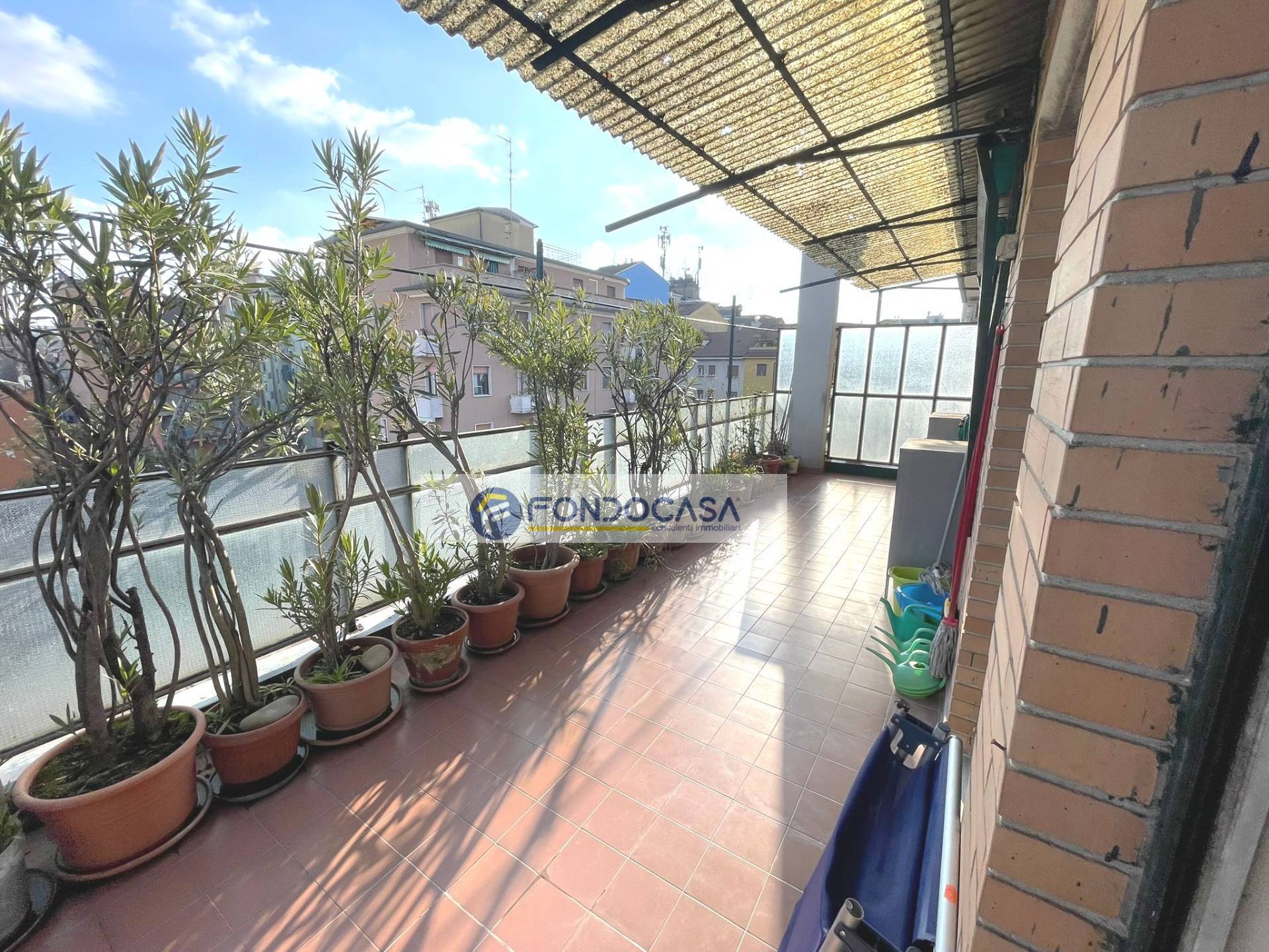 In zona servita da attività e mezzi pubblici, in una piccola palazzina proponiamo in vendita un luminosissimo attico di 105 mq, al quarto piano con ascensore, composto da ingresso su ampio soggiorno, cucina abitabile, terrazzo di 30 mq con doppio accesso da soggiorno e cucina, una camera matrimoniale ed una singola con balcone, ampio bagno con vasca e disimpegno. POSSIBILITA' DI REALIZZARE SECONDO BAGNO E TERZA CAMERA. Completano la soluzione una cantina ed un solaio.