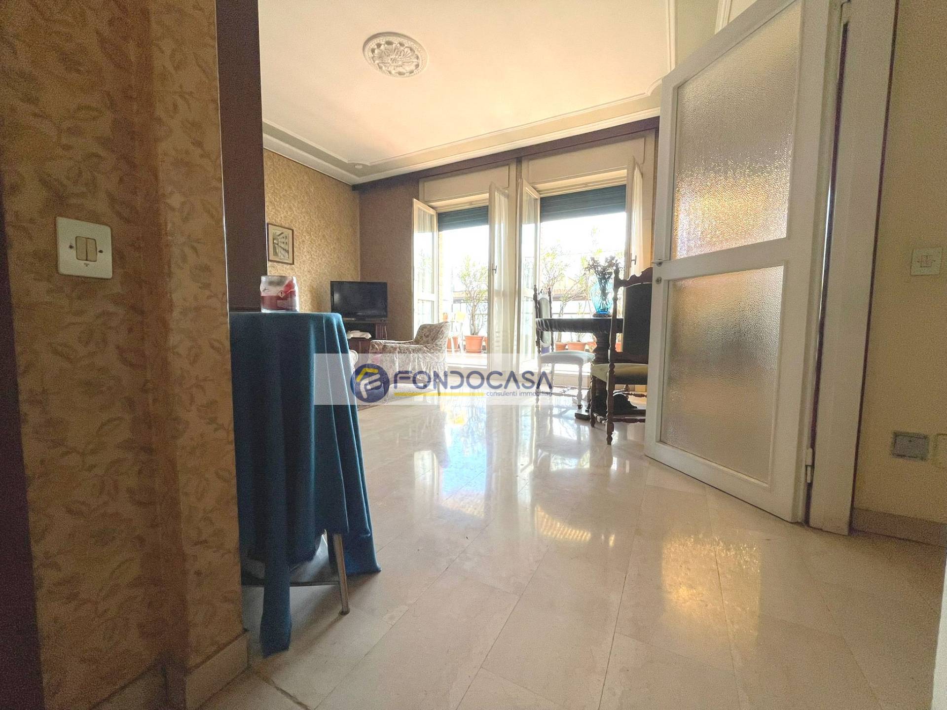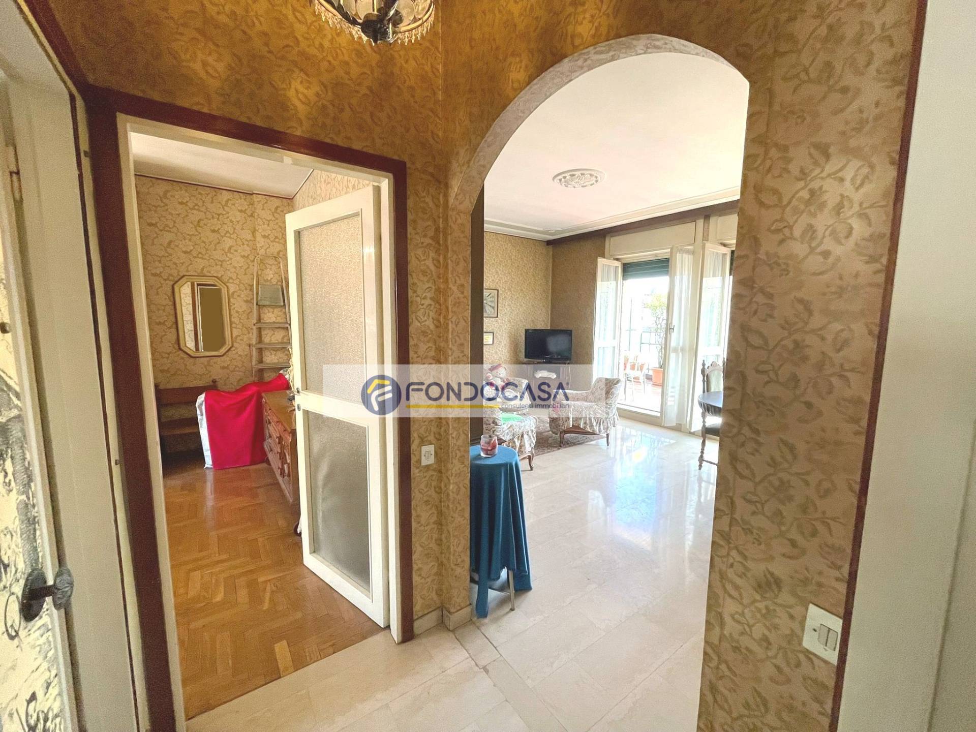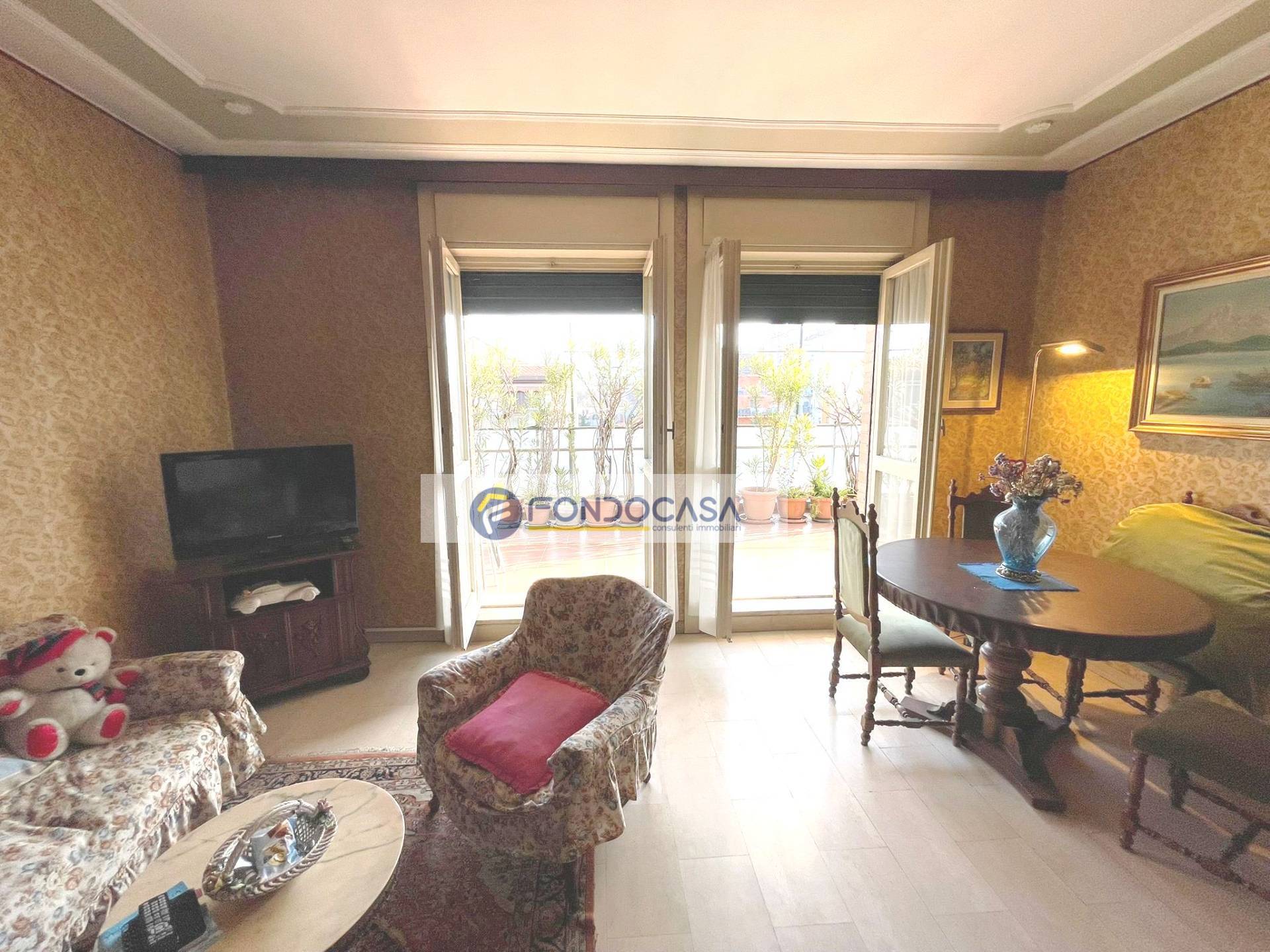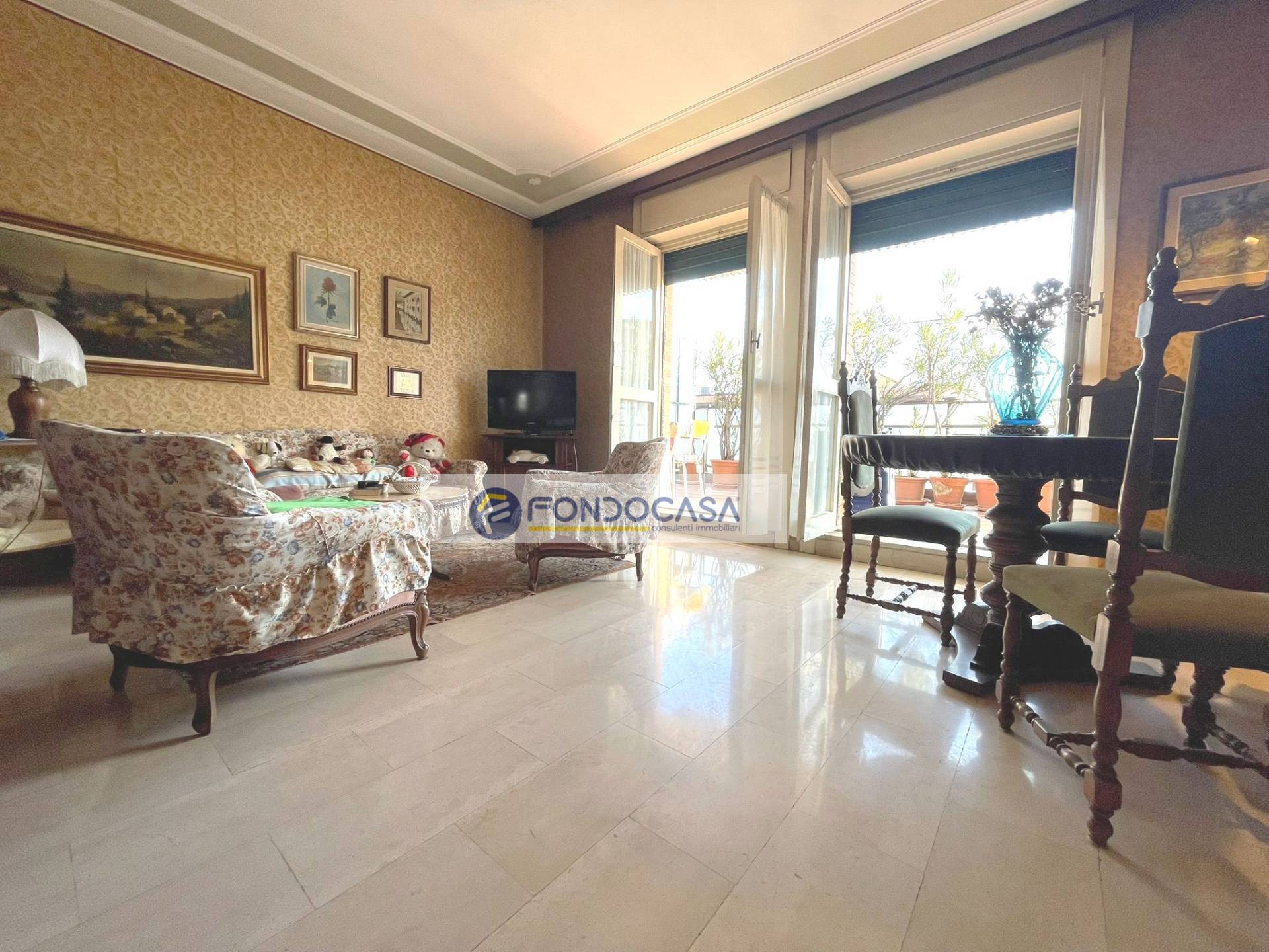 In zona servita da attività e mezzi pubblici, in una piccola palazzina proponiamo in vendita un luminosissimo attico di 105 mq, al quarto piano con ascensore, composto da ingresso su ampio soggiorno, cucina abitabile, terrazzo di 30 mq con doppio accesso da soggiorno e cucina, una camera matrimoniale ed una singola con balcone, ampio bagno con vasca e disimpegno. POSSIBILITA' DI REALIZZARE SECONDO BAGNO E TERZA CAMERA. Completano la soluzione una cantina ed un solaio.