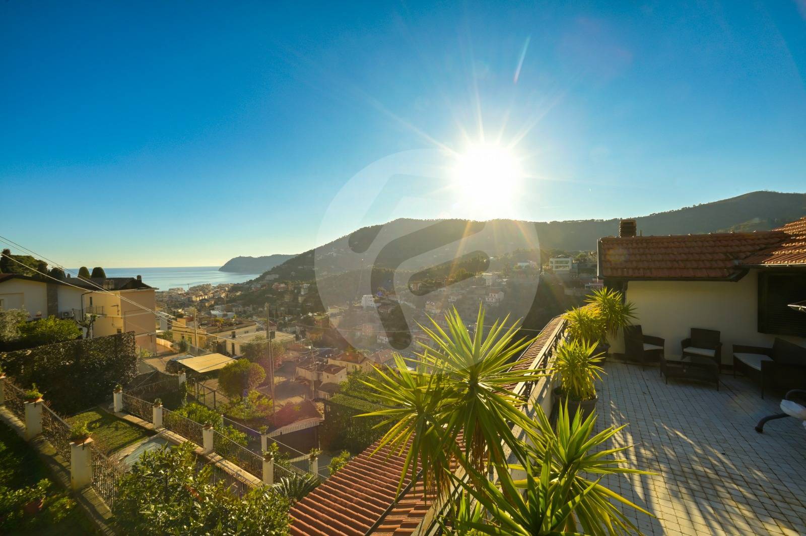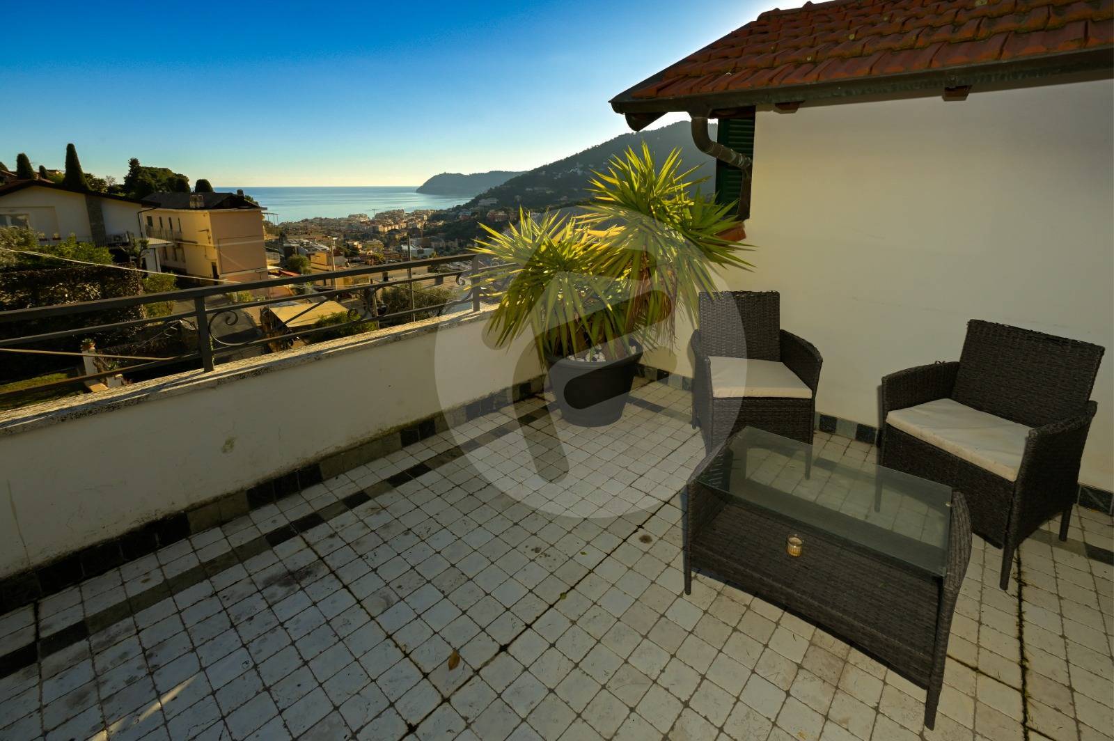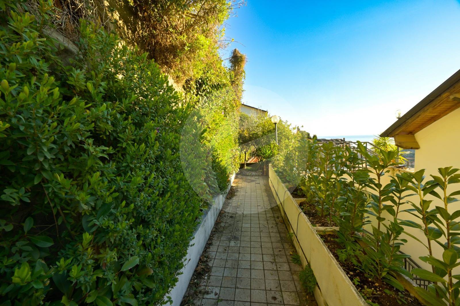 In prima collina, a 2 km dal mare, proponiamo appartamento in villa sito al terzo e ultimo piano con accesso da scalinata. Internamente troviamo un ingresso su ampio salone con camino, angolo cottura, ripostiglio/dispensa, studio, due camere da letto di cui una con bagno padronale, secondo bagno di servizio, ampio terrazzo vista mare.