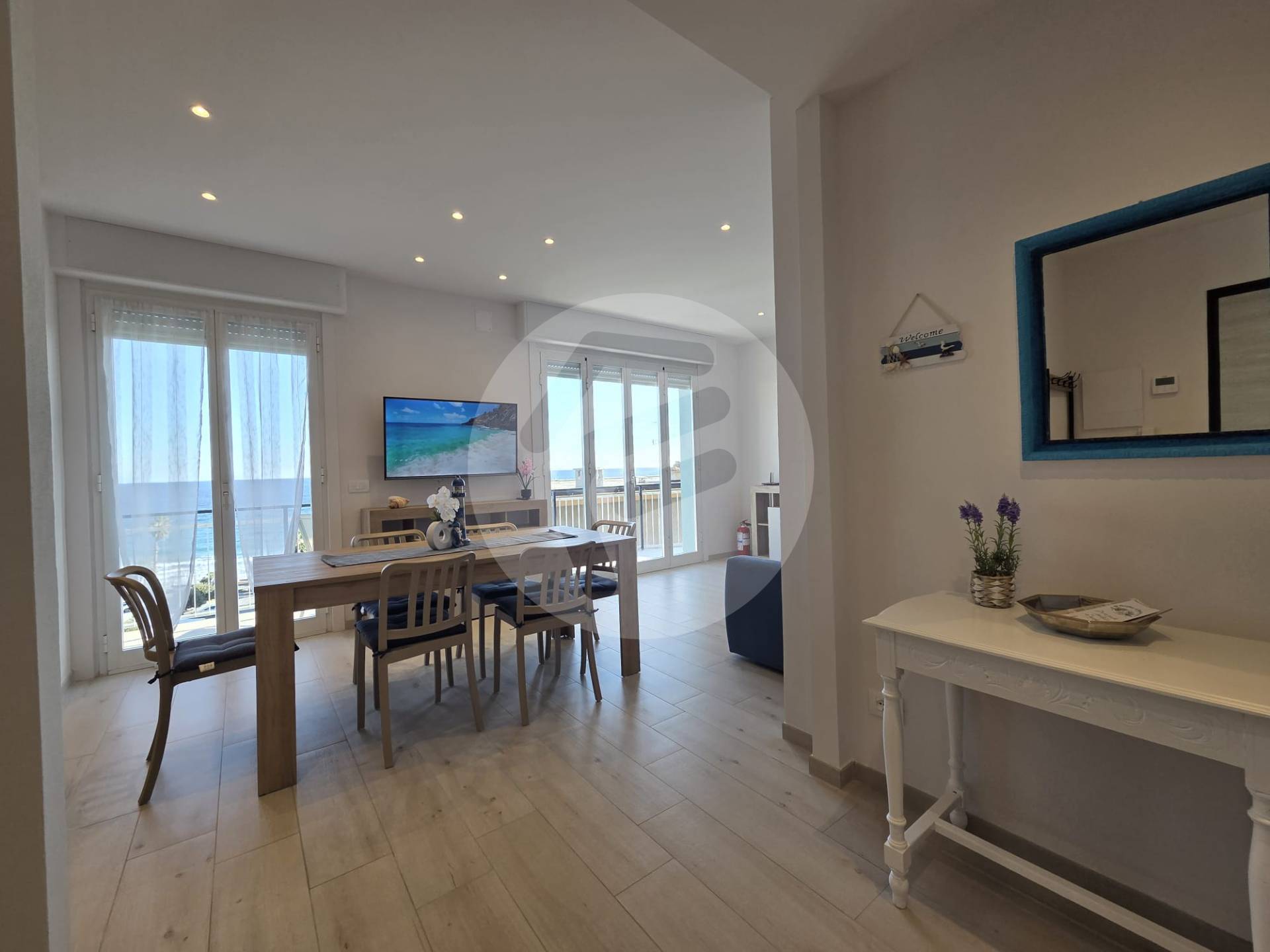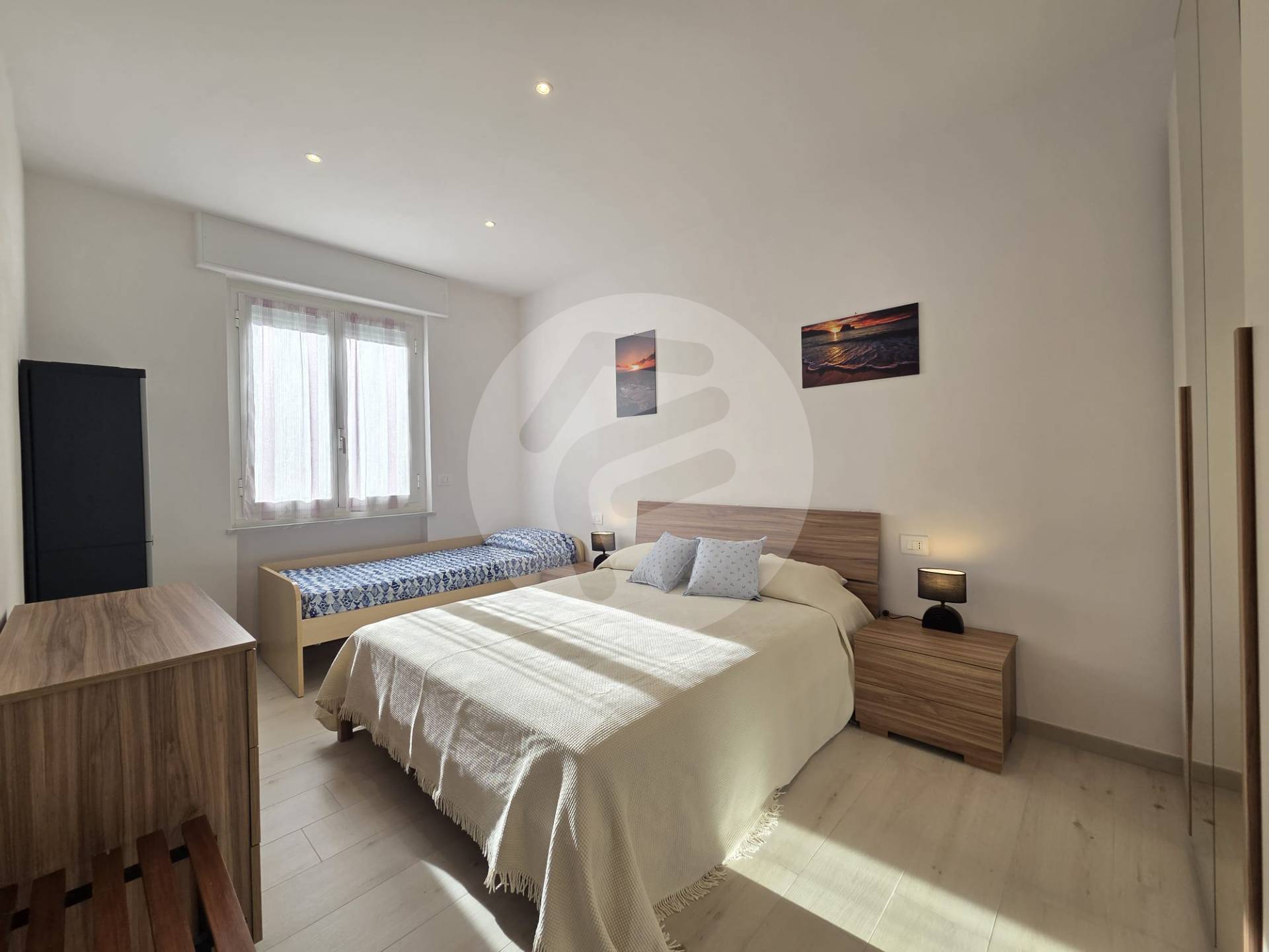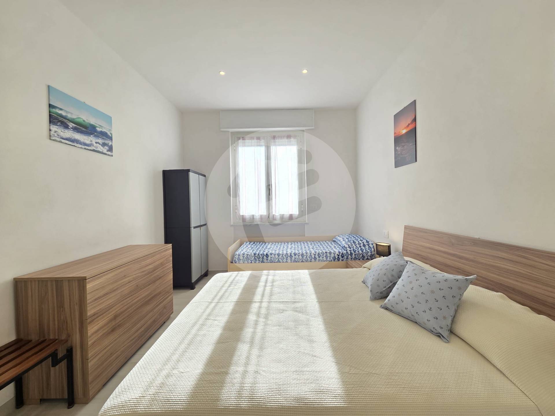 Proponiamo in affitto turistico, a soli 100 mt dal mare con box auto di proprietà, meraviglioso trilocale completamente ristrutturato ed arredato finemente con estrema attenzione ai particolari composto da: Ingresso su soggiorno/ cucina, zona notte separata con camera da letto matrimoniale e seconda camera matrimoniale con l'aggiunta di letto singolo, bagno con doccia finestrato e balcone vista mare. Dallo stesso, si accede tramite una scala a chiocciola esterna al lastrico solare dove poter mettere sdraio e sedie per godersi al massimo la vista incantevole sul golfo