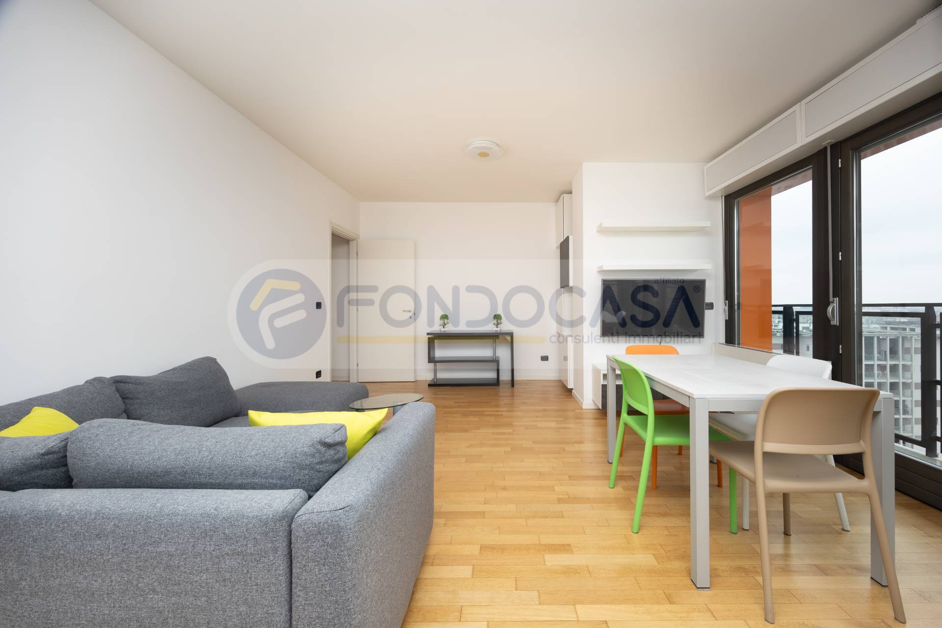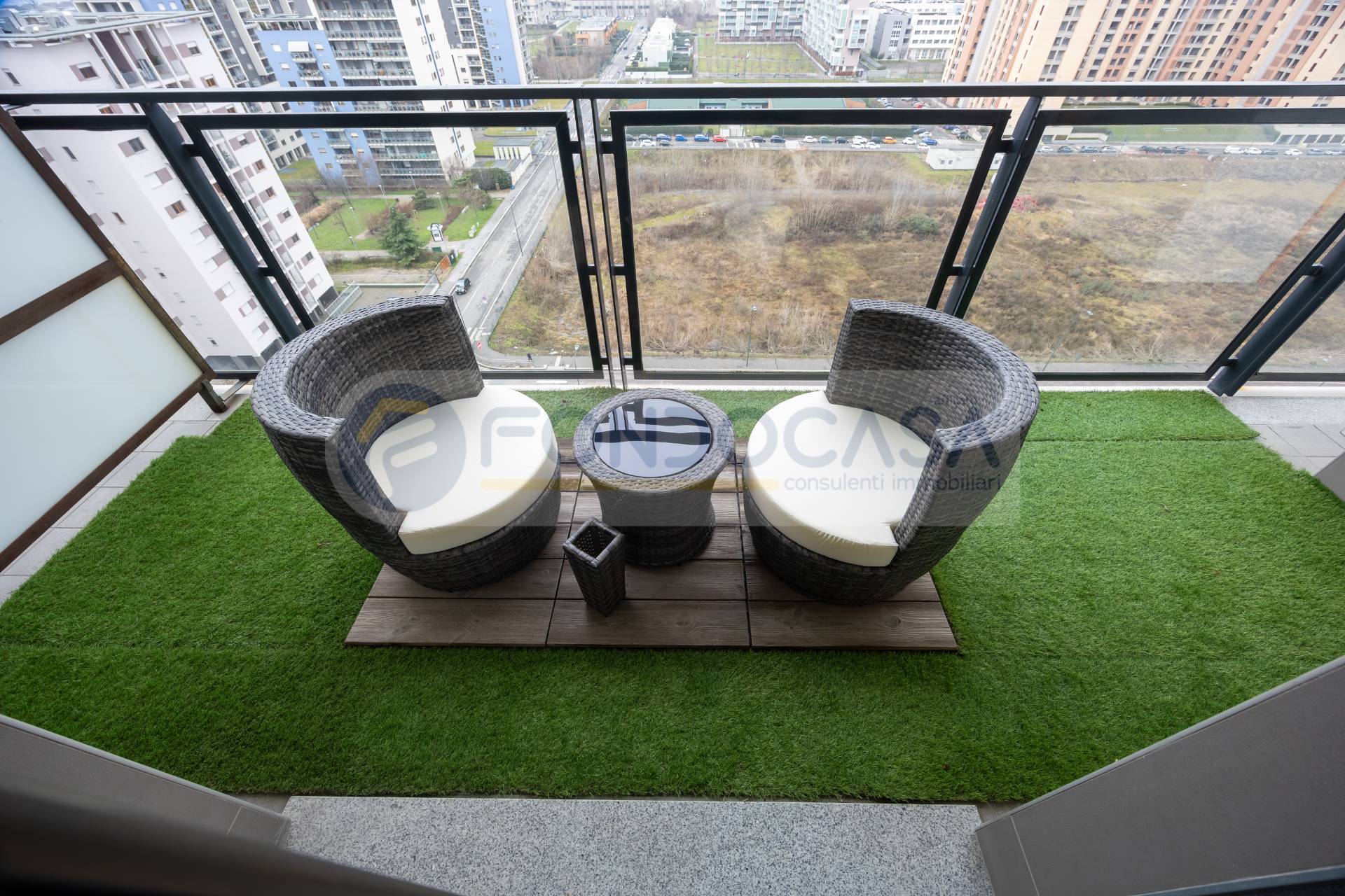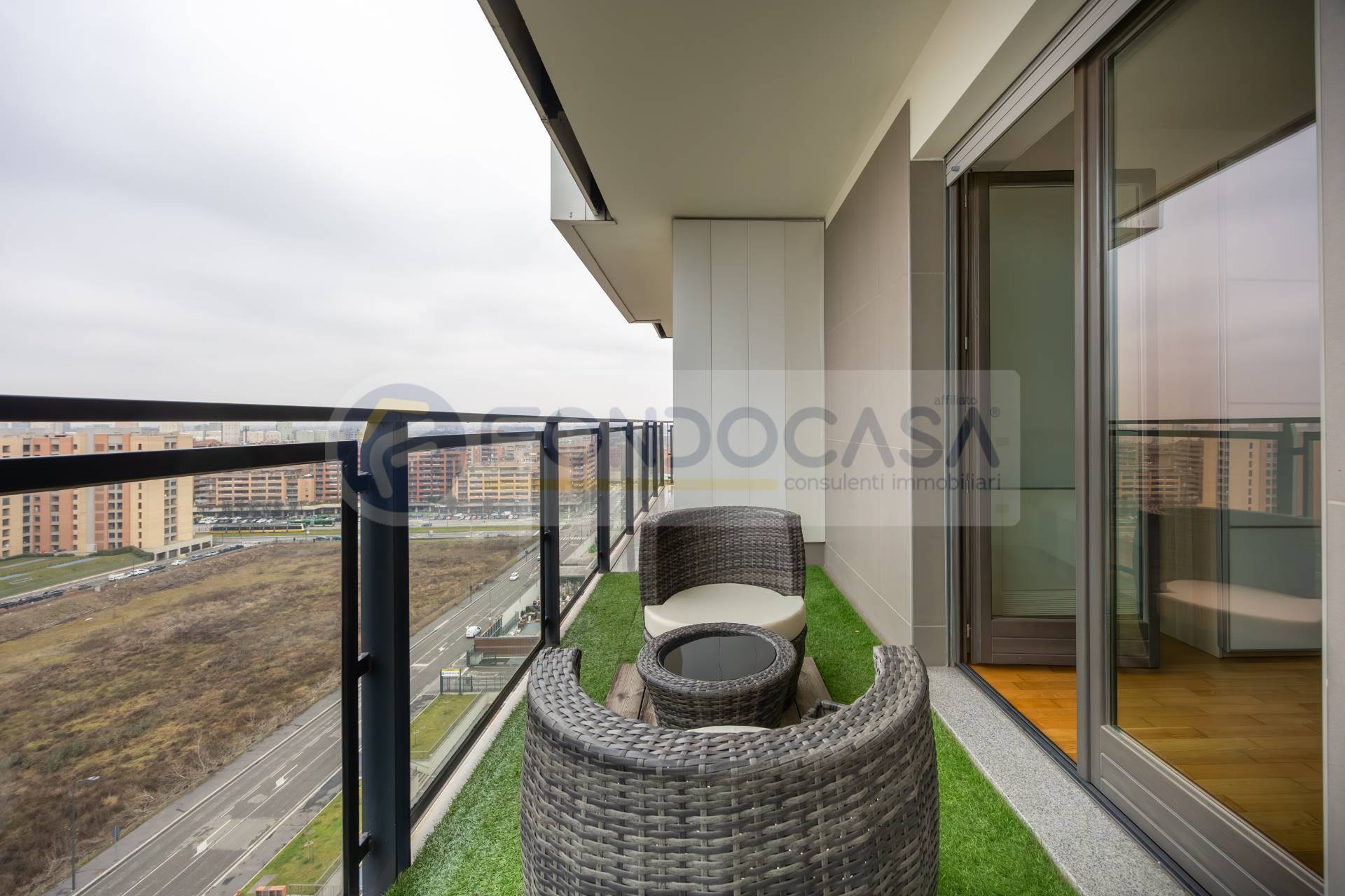 Luminosissimo ed ampio bilocale di 86mq, mantenuto in ottimo stato interno, con un bellissimo terrazzo angolare che circonda tutta l'abitazione, permettendo l'accesso da tutte le stanze ed offrendo una vista invidiabile sulla città e sull'arco alpino, a quasi 360 gradi. L'appartamento si sviluppa partendo da un disimpegno d'ingresso, proseguendo verso un'ariosa zona living, caratterizzata da ampie vetrate che consentono di godere di ottima luminosità, affiancata da un'elegante e spaziosa cucina abitabile, una camera da letto matrimoniale di comoda metratura ed infine un bagno finestrato. La disposizione degli spazi interni si presenta molto funzionale, con la possibilità di creare una seconda camera ed impreziosito da un arredamento in ottimo stato, moderno e giovanile.