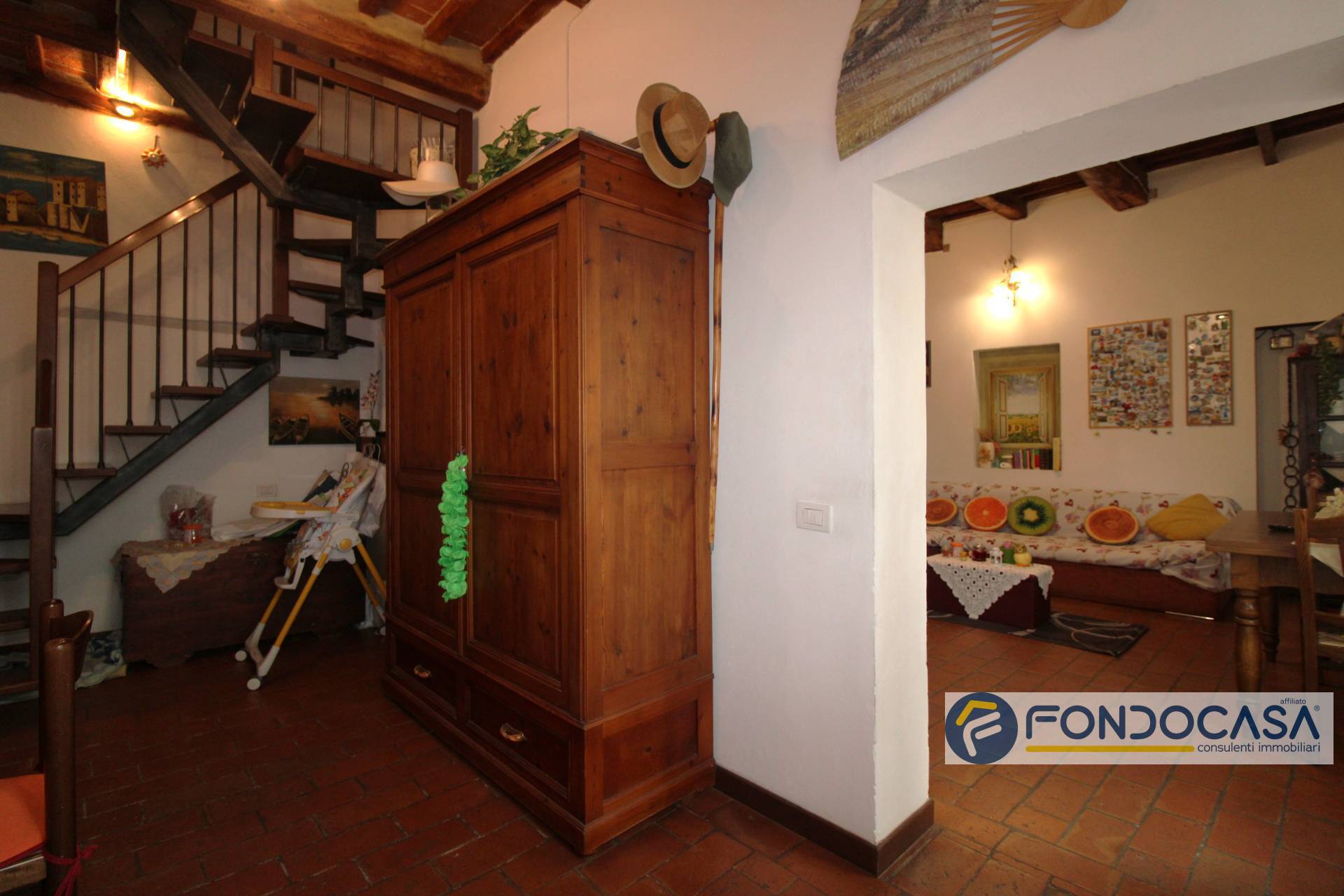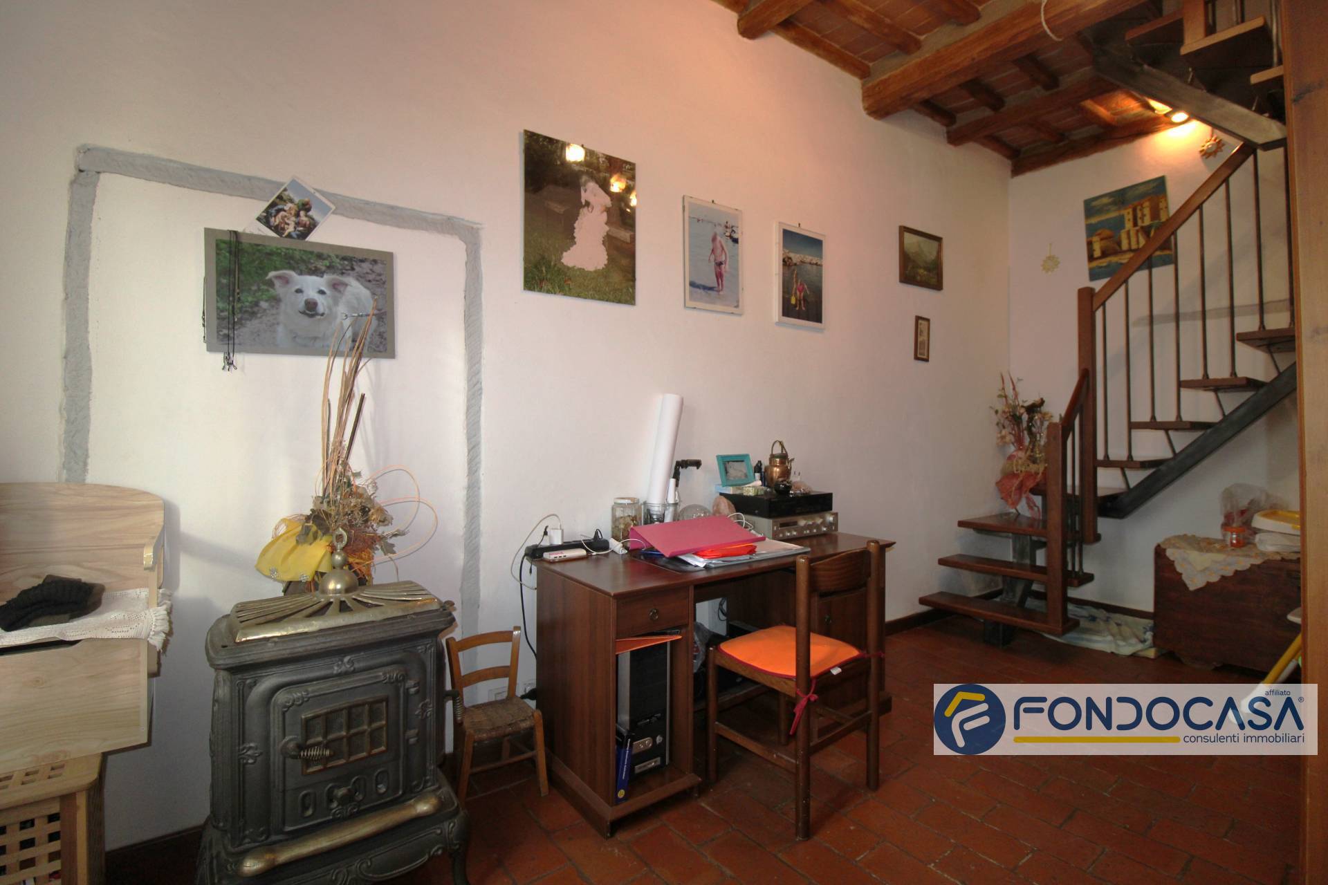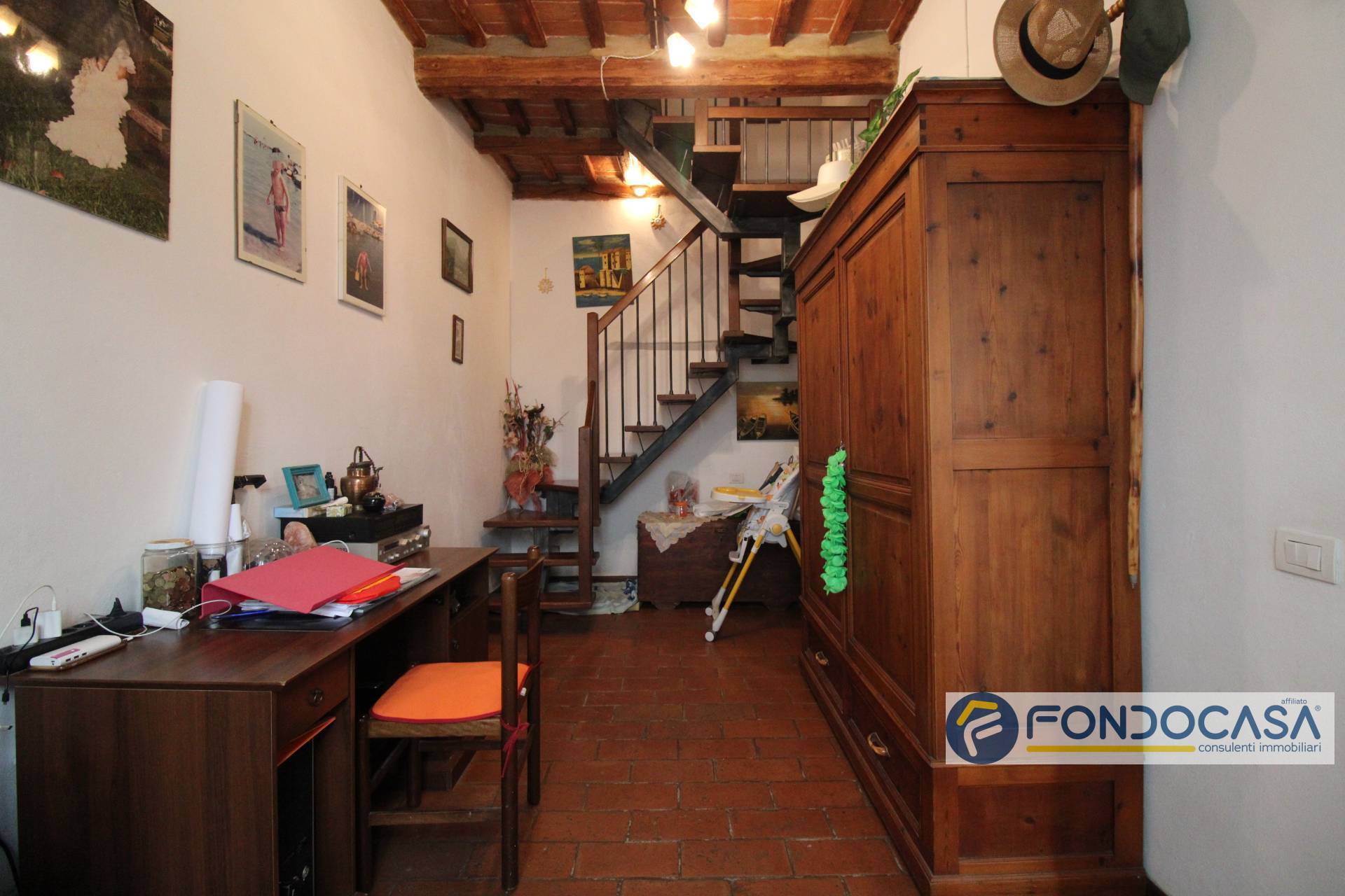 Dallo studio troviamo una scala, che ci accompagna al piano superiore composto da: camera da letto matrimoniale con doppia finestra, camera doppia, camerina, bagno con finestra e vasca e un comodo ripostiglio/zona lavanderia finestrato. Questo immobile in stile rustico toscano, è perfetto per chi desidera una soluzione pronta da abitare. L'abitazione ha un doppio ingresso, sia dal primo che dal secondo piano.