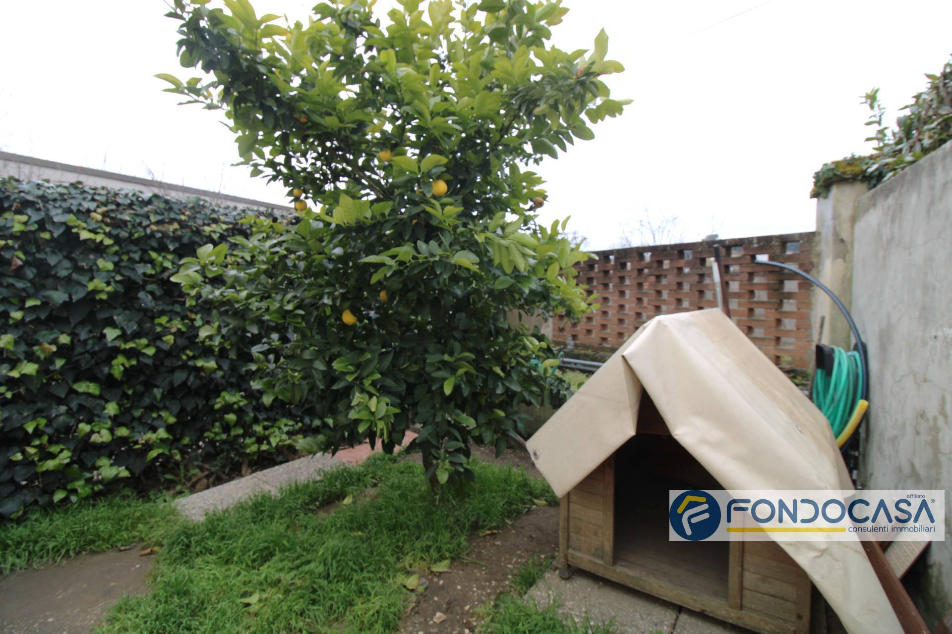 La casa si trova in un piccolo condominio di sole cinque famiglie, tramite il cancello carrabile si accede nel resede a comune. Al piano terra l'abitazione ha un giardino esclusivo di 32mq.