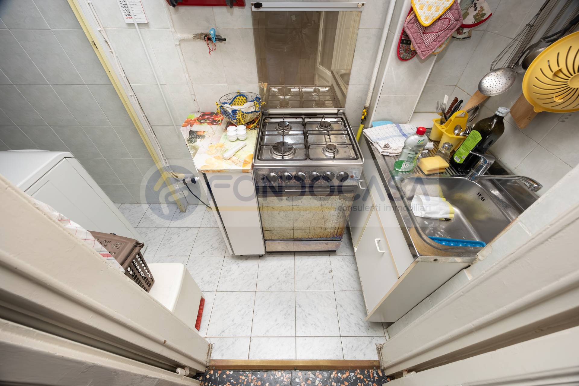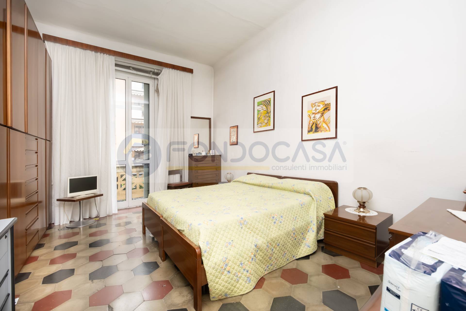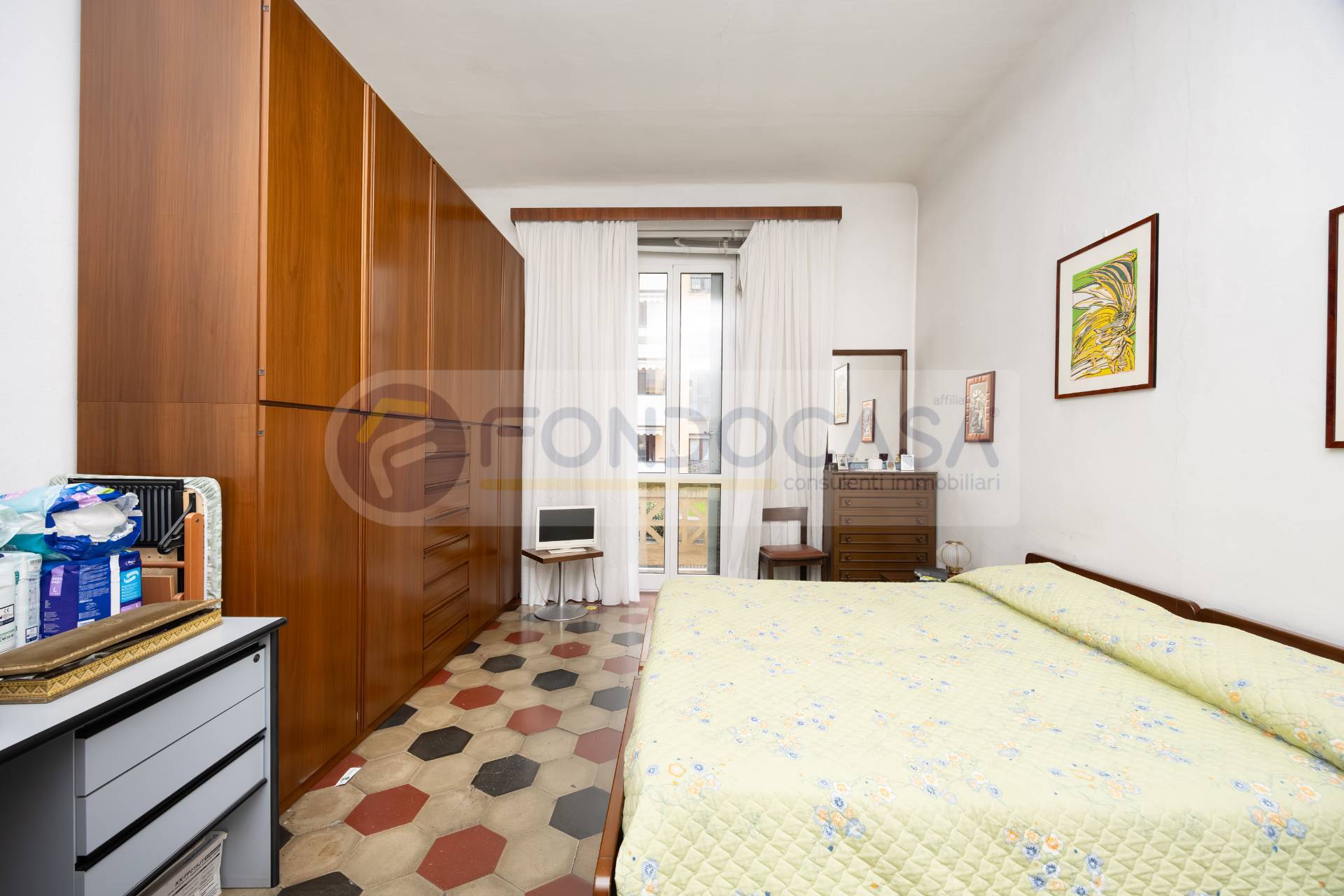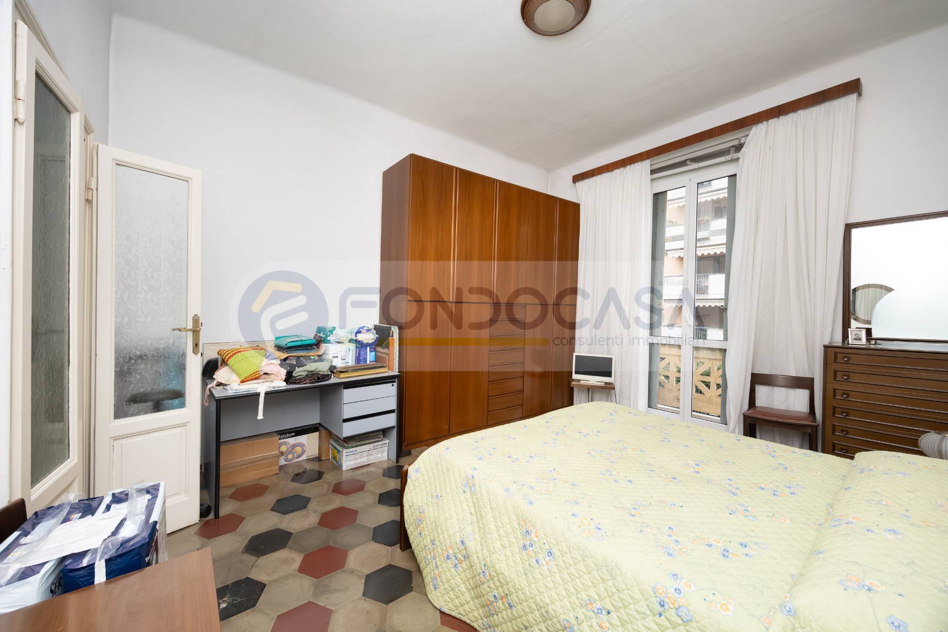 Bilocale di 60 mq, posto ad un primo piano senza ascensore, attualmente composto da ingresso su un ampio disimpegno, un soggiorno con accesso ad un primo balcone, un cucinotto separato, un bagno finestrato ed una camera matrimoniale con accesso al secondo balcone.