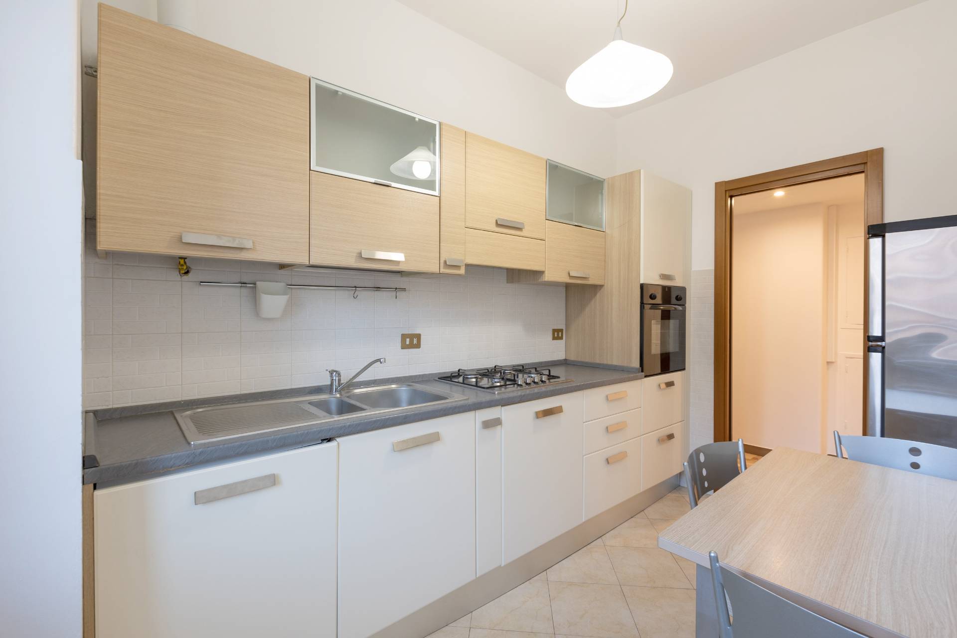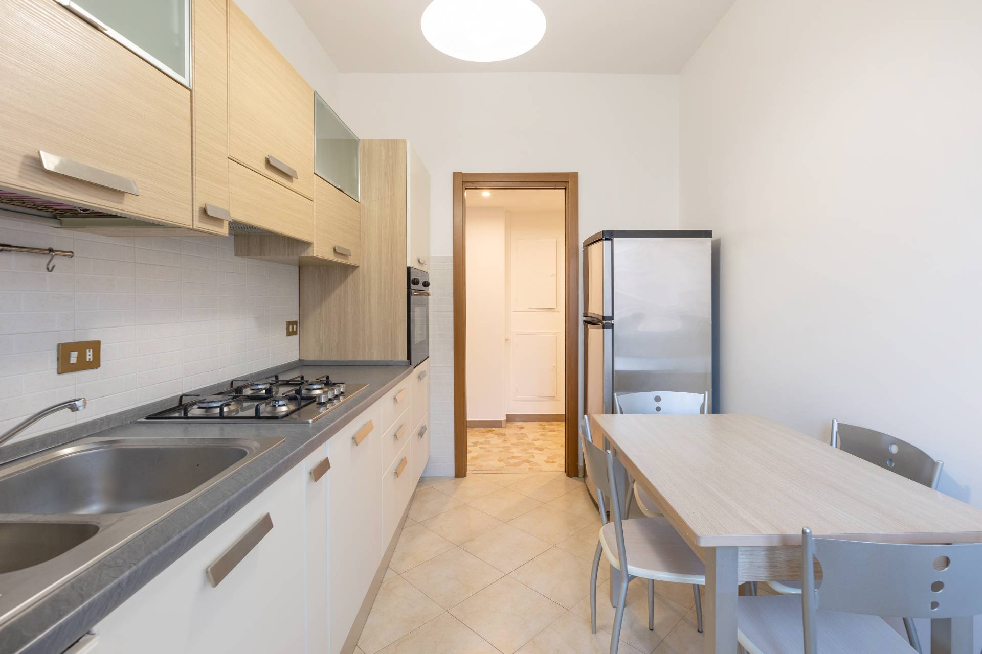 - cucina abitabile completamente attrezzata con piano cottura a gas, frigorifero con congelatore, forno, lavastoviglie, tavolo con quattro sedie