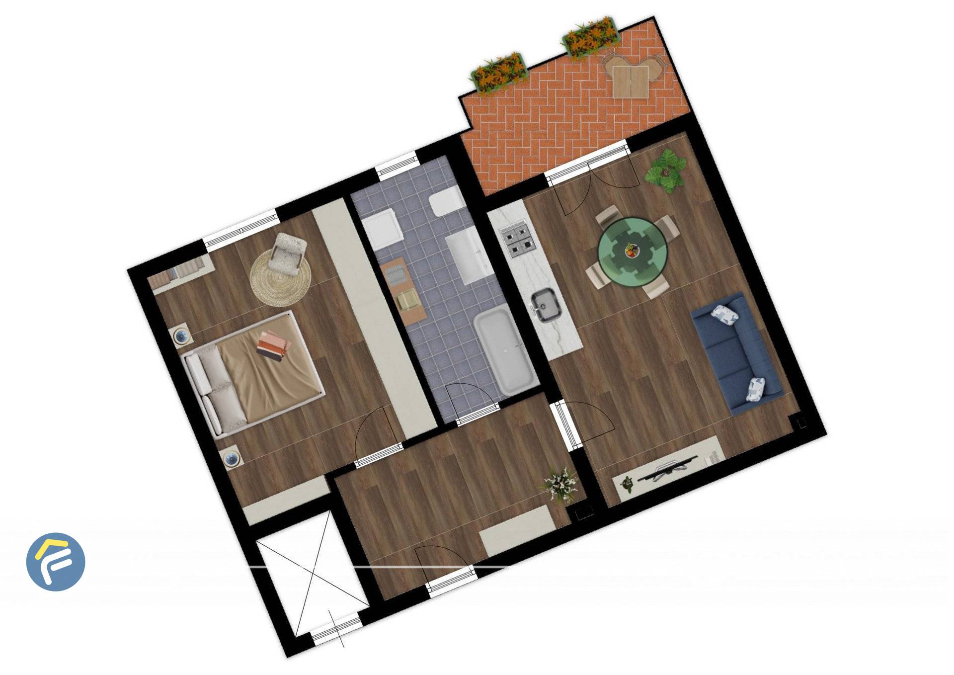 L´ingresso si apre su un comodo disimpegno che conduce al soggiorno con cucina a vista, spaziosa camera matrimoniale, bagno finestrato con vasca, ed un balcone che aggiunge uno sfogo esterno piacevole e riservato.