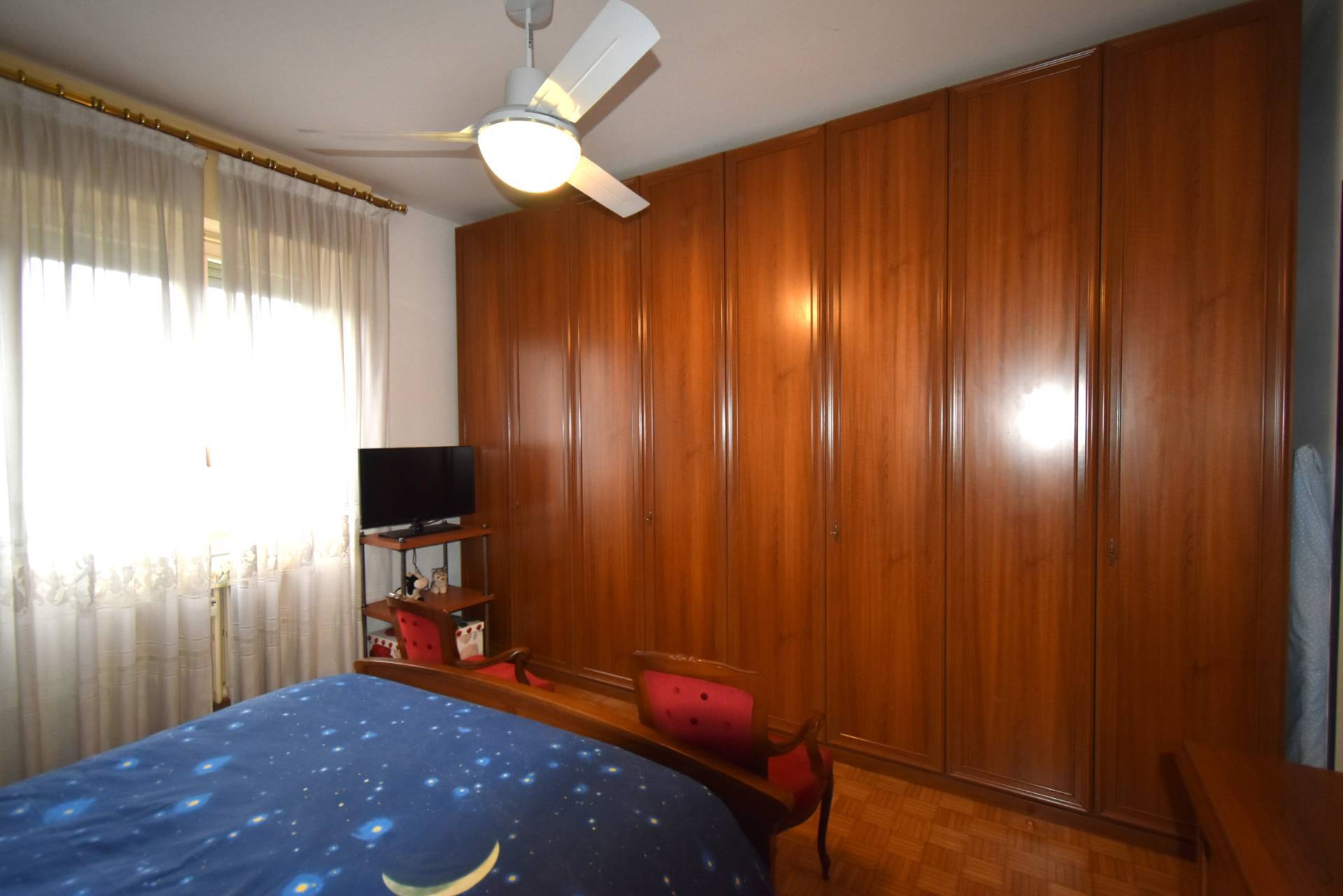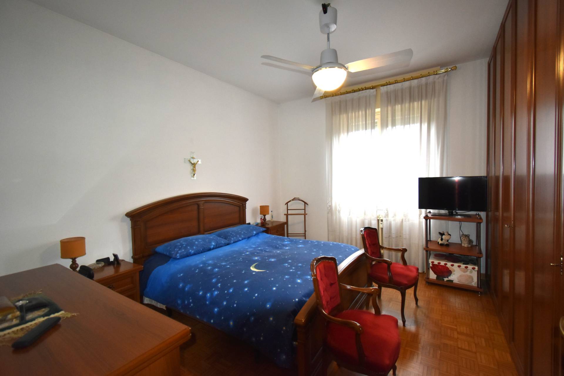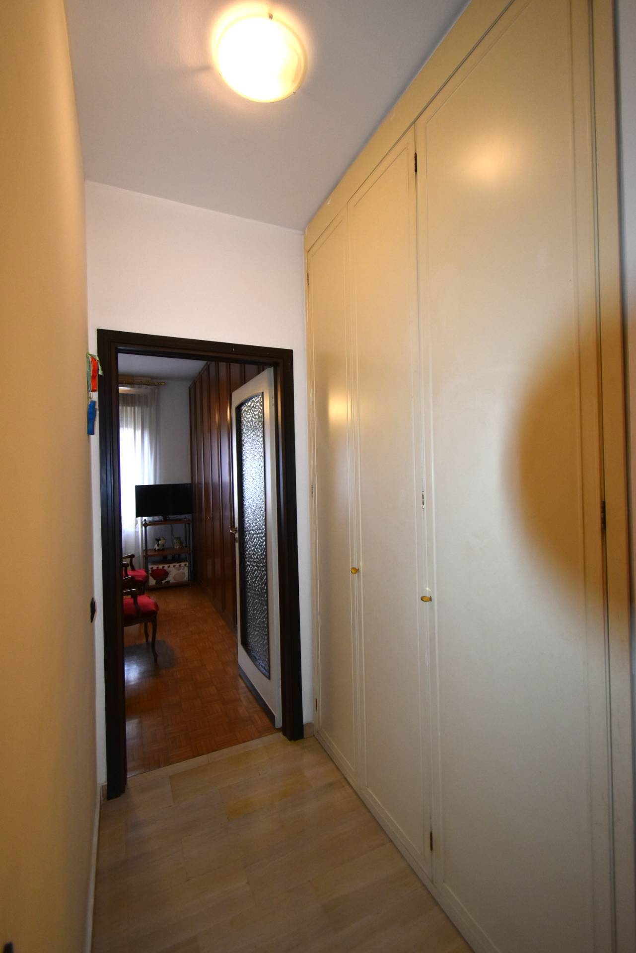 L'immobile situato al secondo piano è composto da un ampia zona di ingresso che conduce al soggiorno con terrazzo di 15 mq, una cucina abitabile, due camere da letto di cui una con balcone e un bagno con vasca e doccia. In origine l'appartamento era composto da tre camere da letto che facilmente possono essere ripristinate, attualmente c'è la matrimoniale ed una doppia.