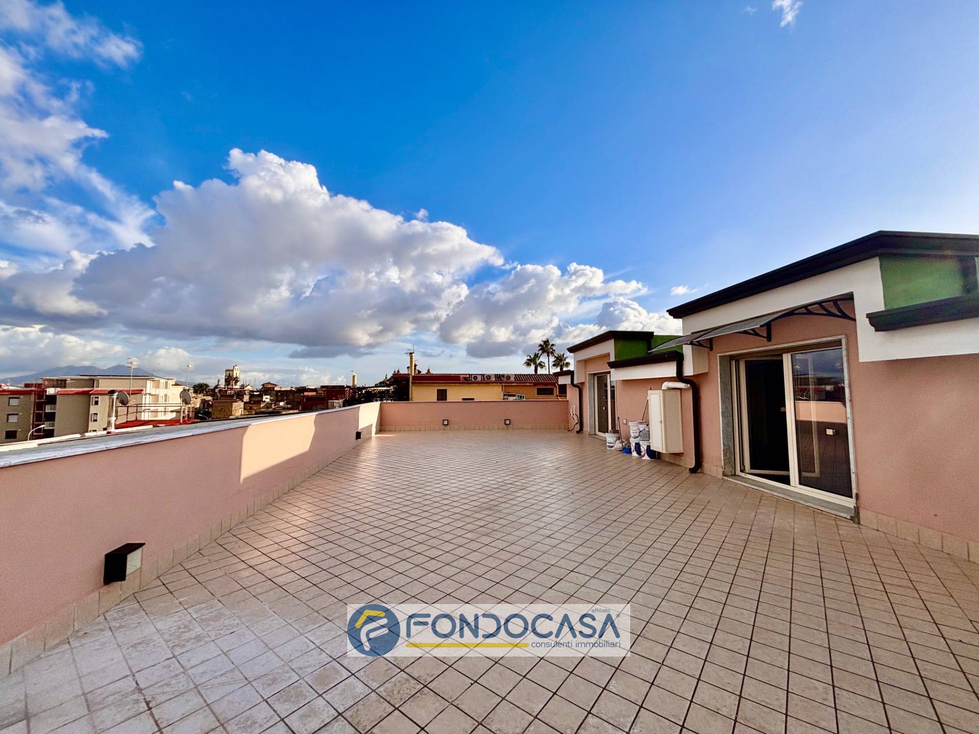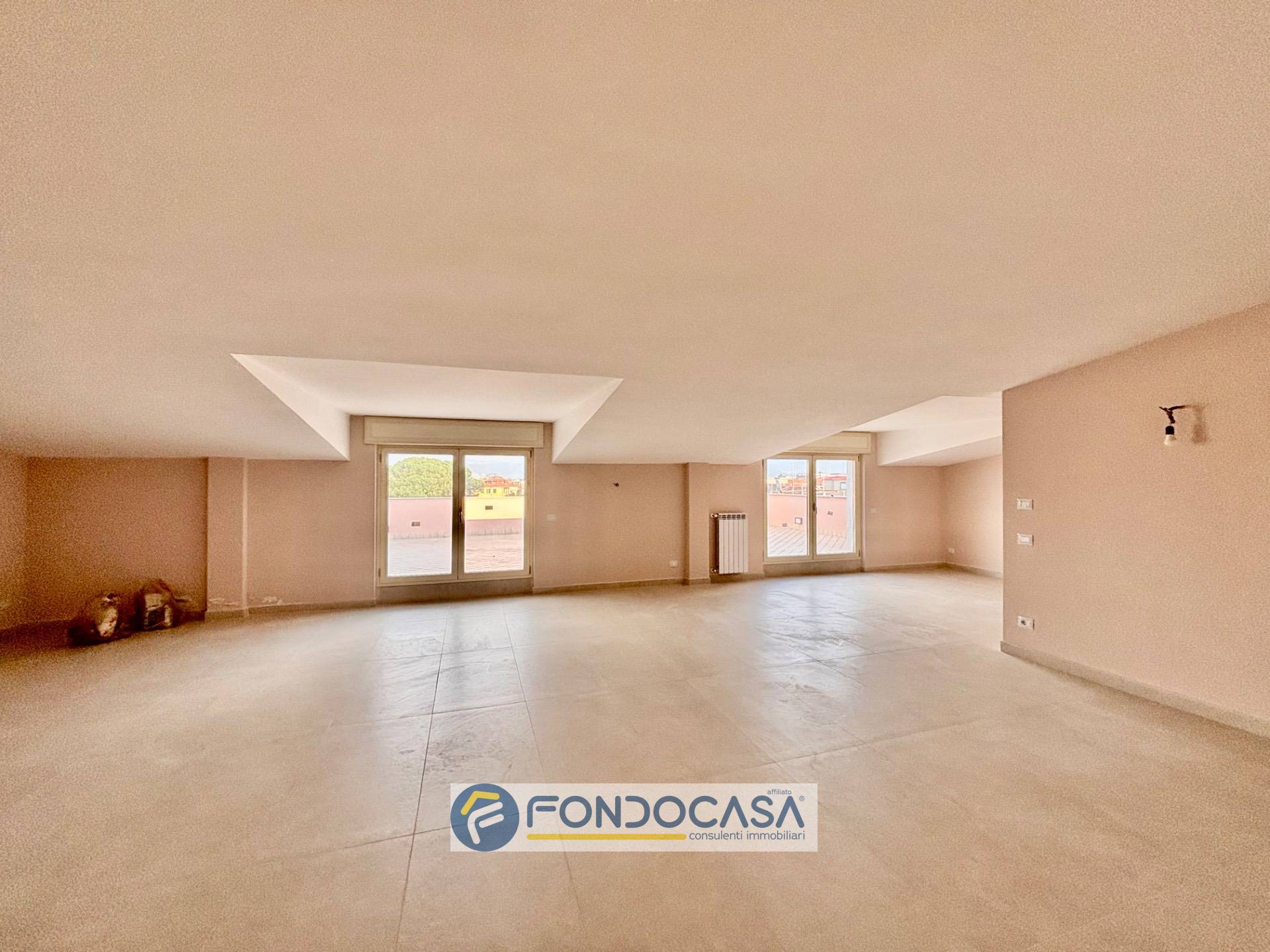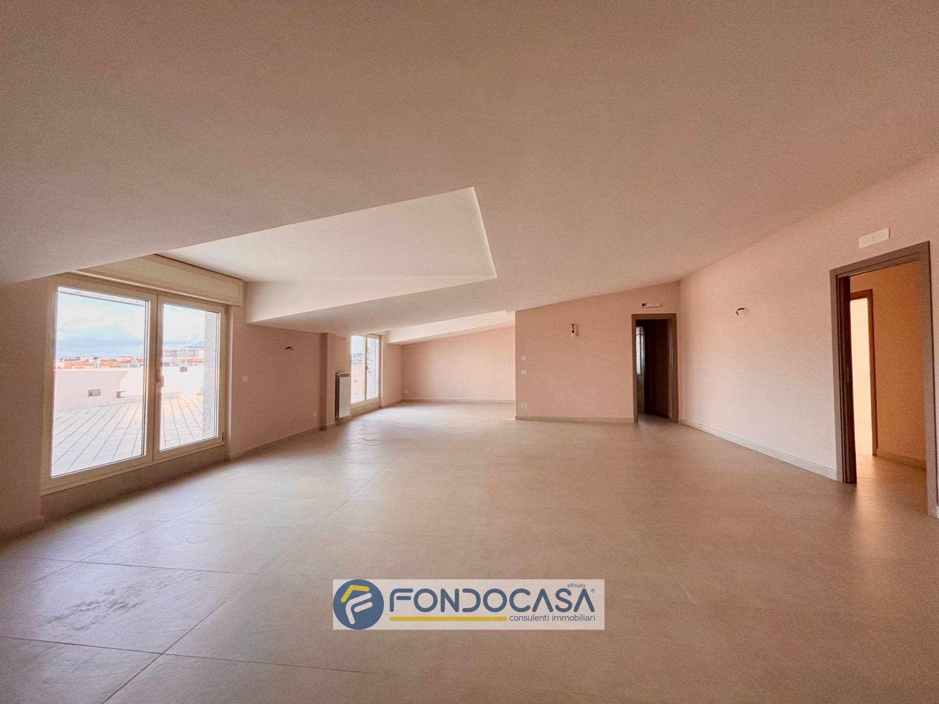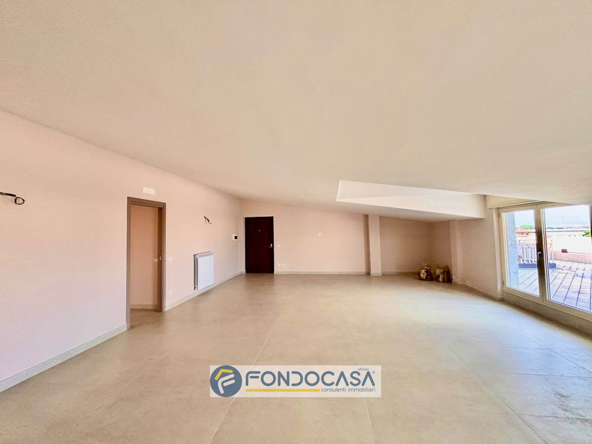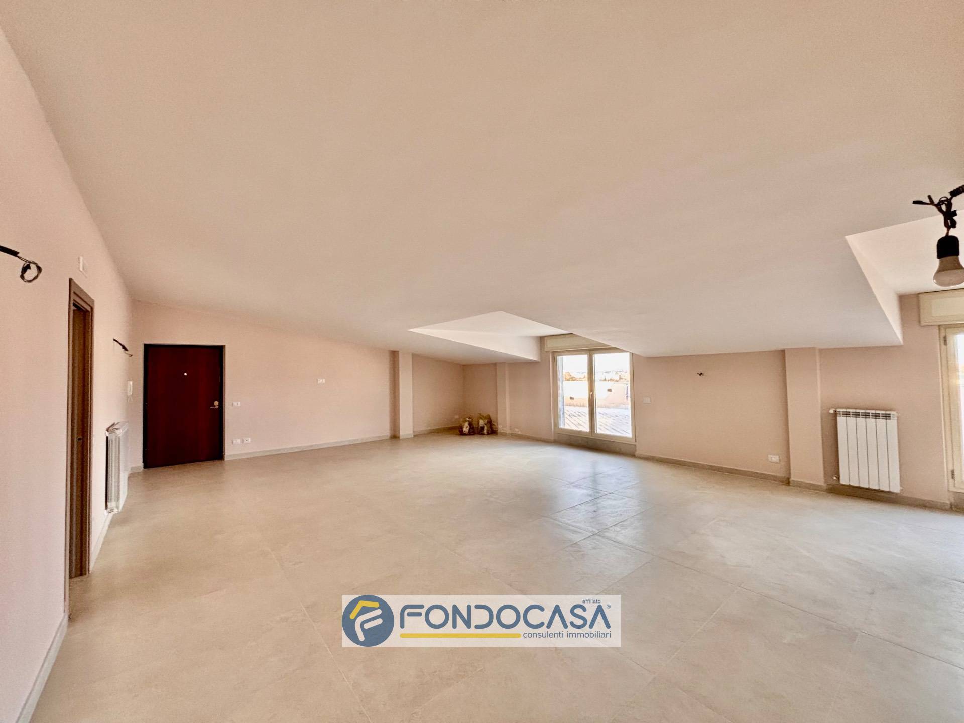 Parliamo di una mansarda di 140 mq interni, con 120 mq di spazi esterni, dove il protagonista assoluto è lui: un terrazzo a livello di circa 90 mq.