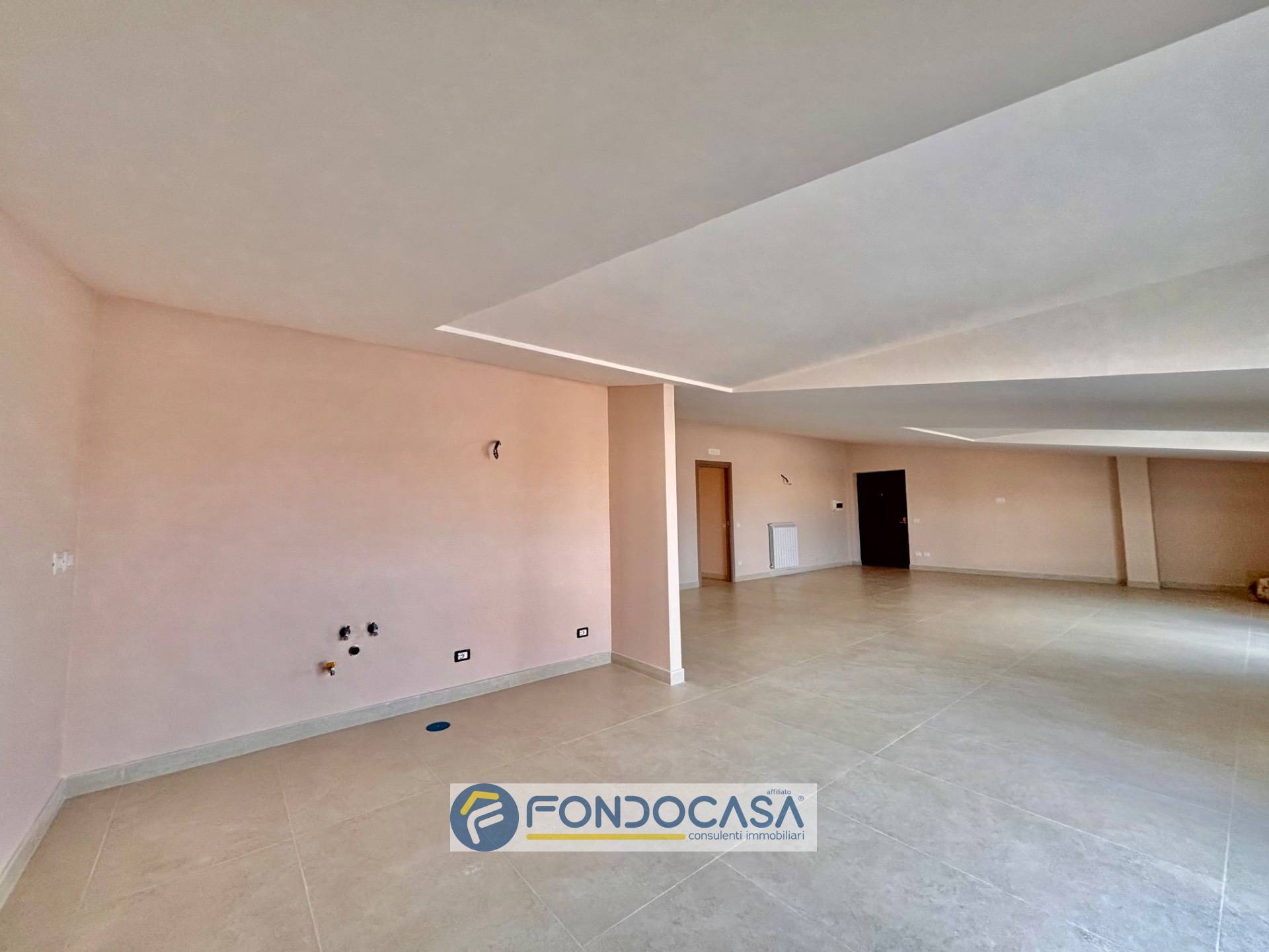 L´ingresso si apre su un ampio ambiente living, moderno e ben distribuito, con accesso diretto al terrazzo: la sensazione è quella di uno spazio che "respira", dove interno ed esterno comunicano in modo naturale.