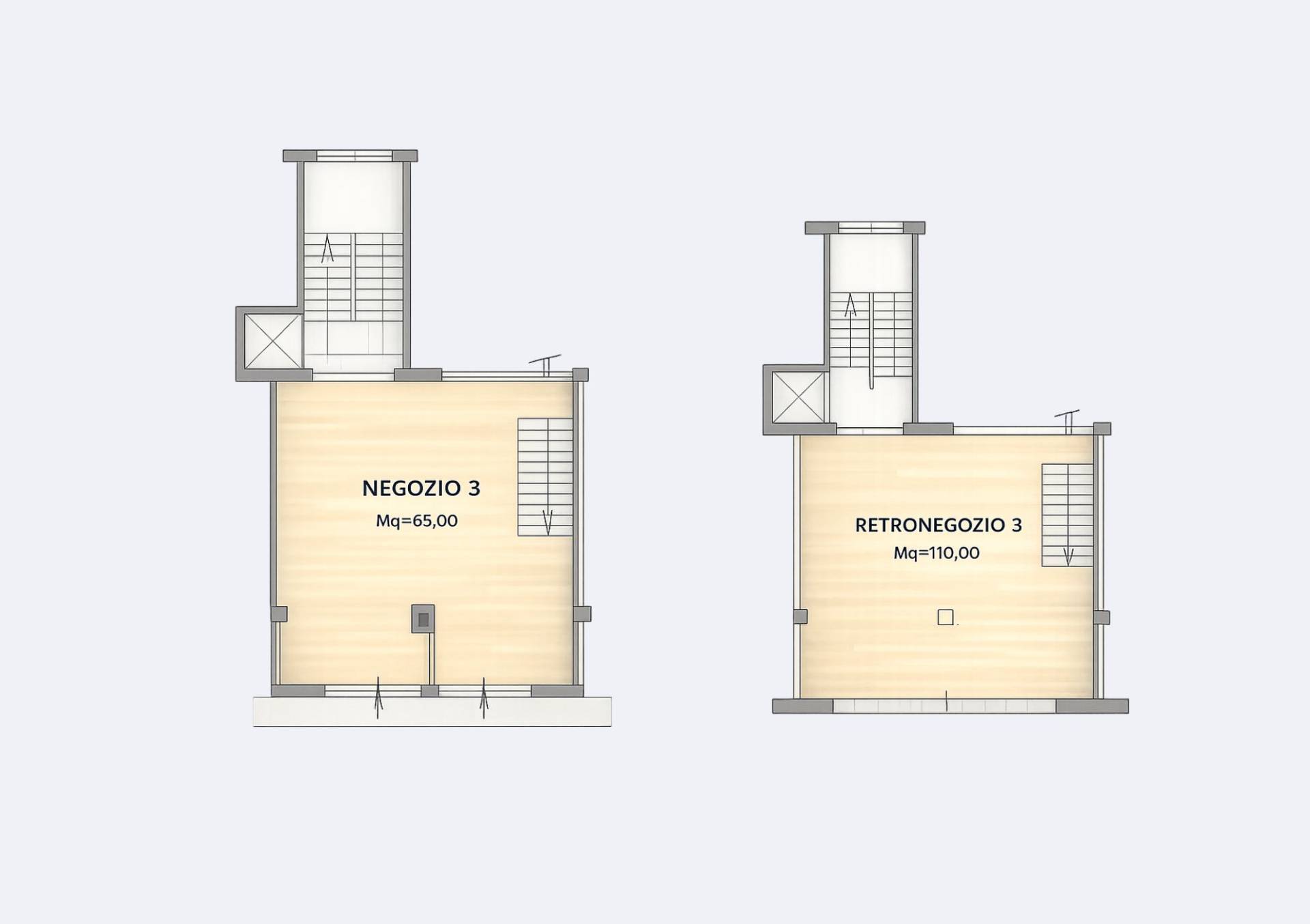 Il piano terra è destinato all´area vendita ed è dotato di due ampie vetrine fronte strada che garantiscono elevata visibilità e ottima illuminazione naturale.