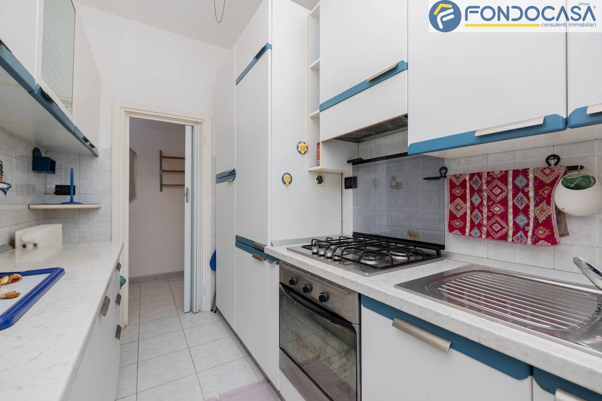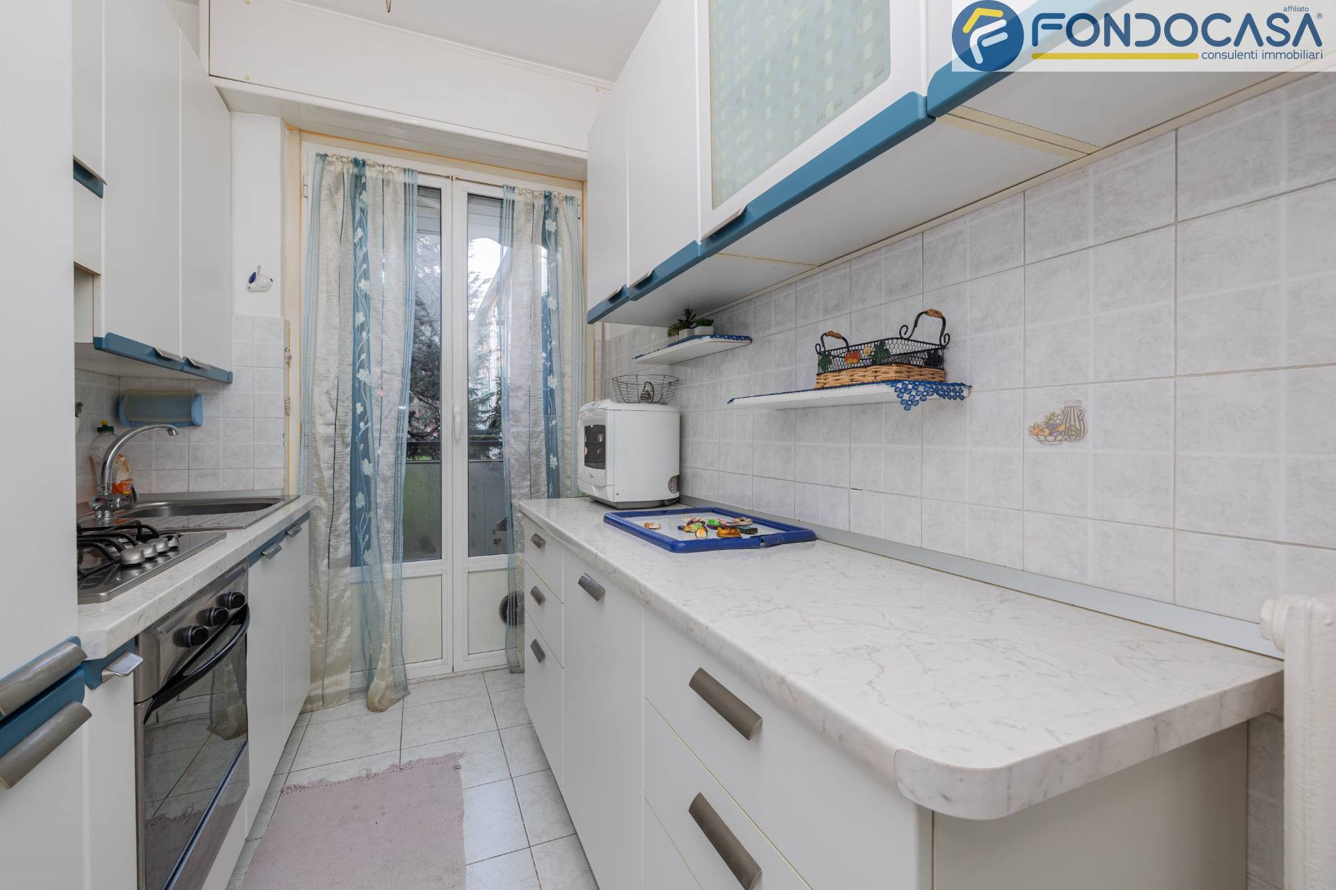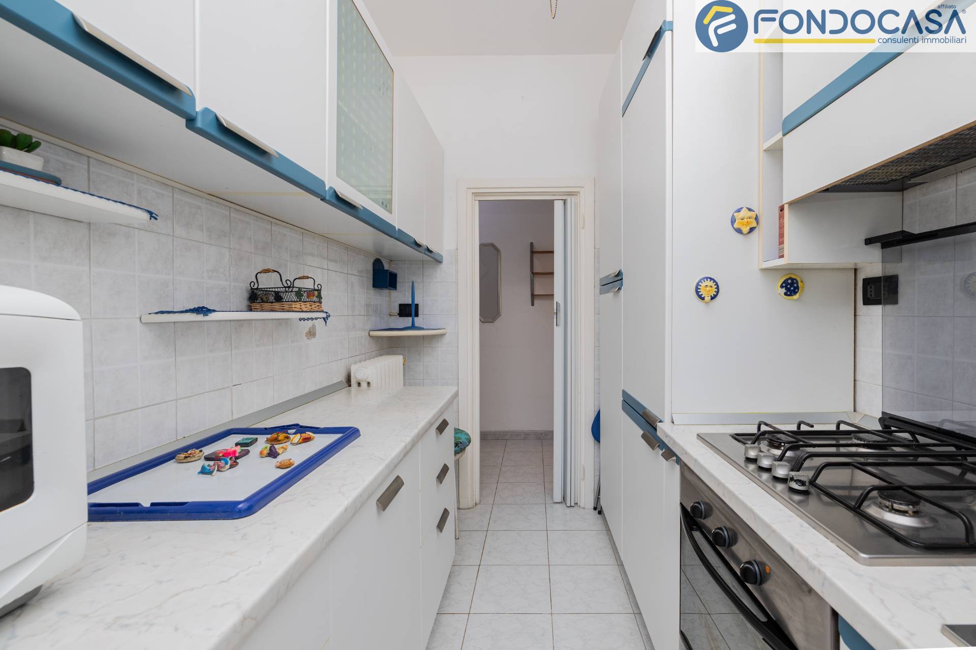 L´appartamento è composto da: ingresso, soggiorno con accesso al primo balcone, cucina abitabile con accesso al secondo balcone, disimpegno, camera da letto e servizio finestrato con box doccia.