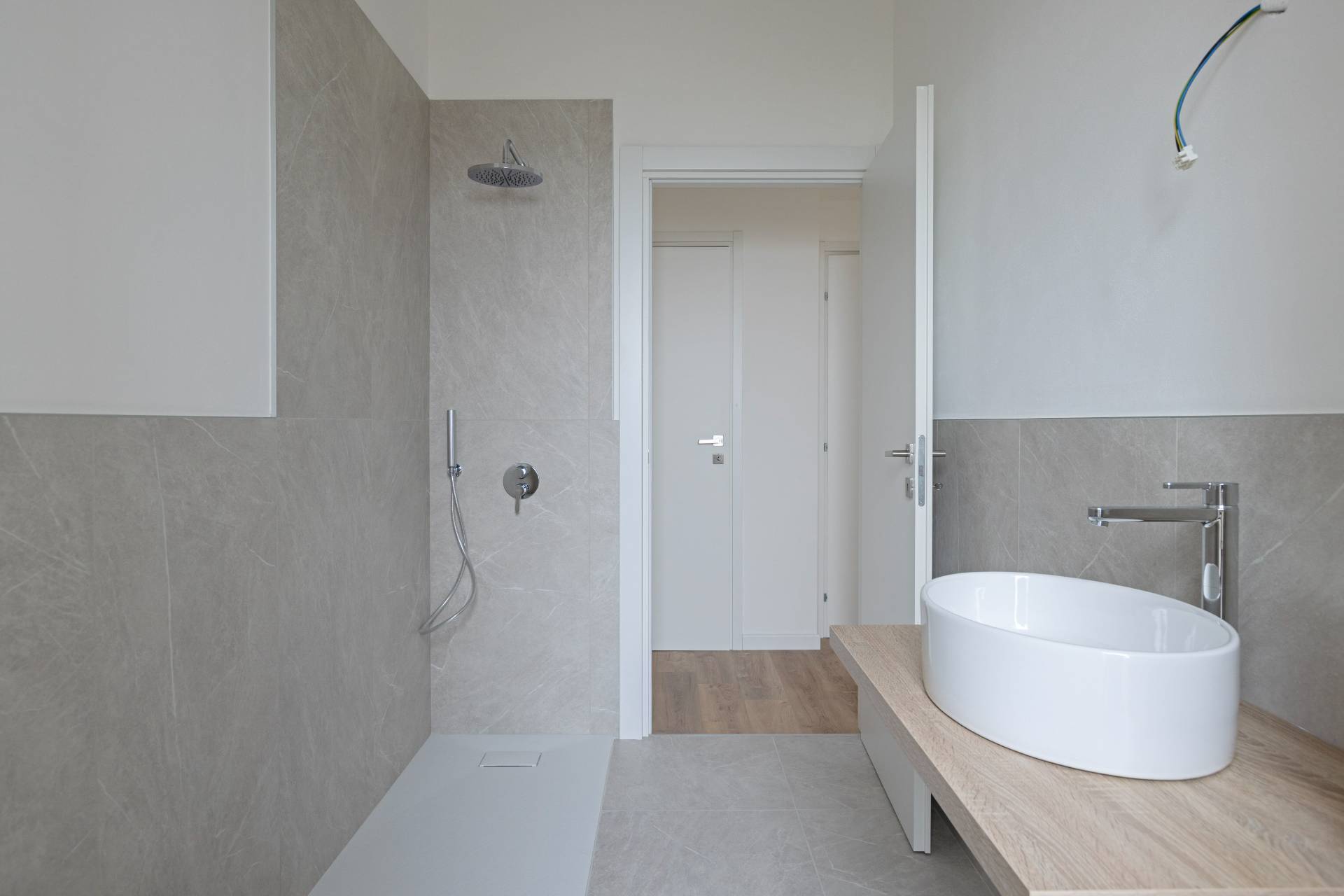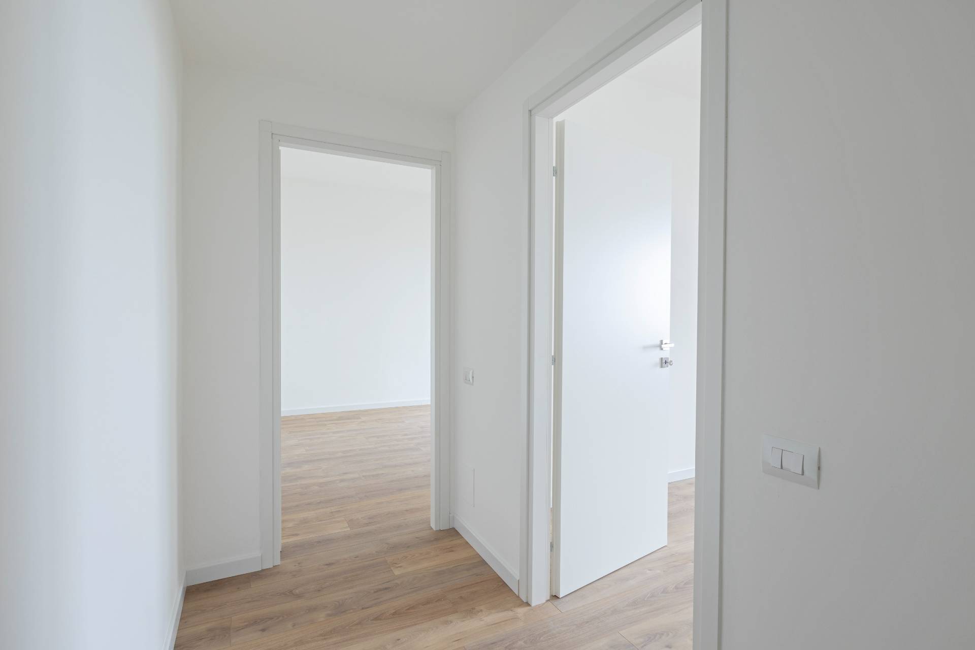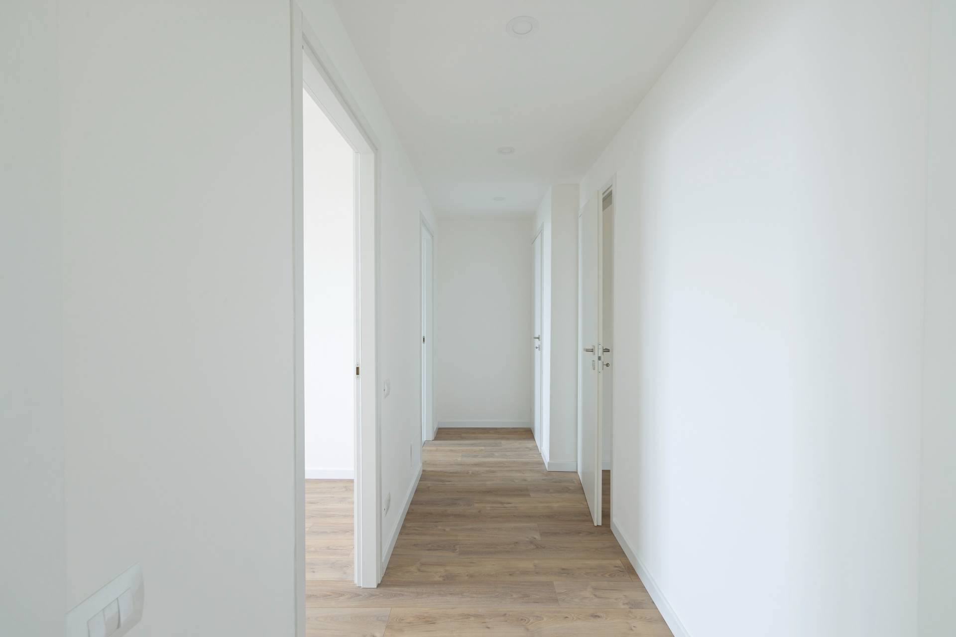 Le finiture sono moderne e curate: riscaldamento centralizzato a pavimento, acqua calda condominiale, parquet laminato in tutti gli ambienti (gres porcellanato nel bagno), porte interne bianche, predisposizione per l´aria condizionata nella zona giorno e nella zona notte, controsoffitti con faretti nell´ingresso e nel disimpegno, oltre a impianti elettrico e idraulico nuovi e certificati.