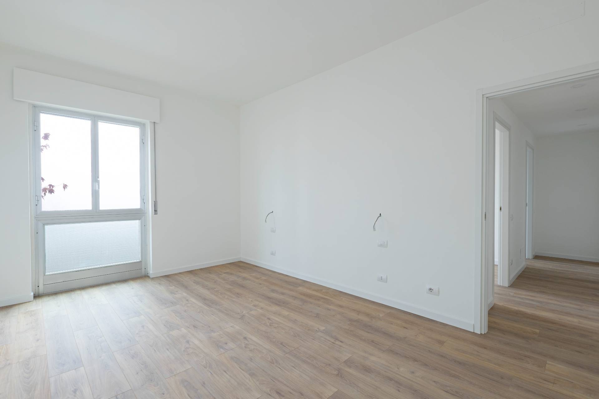 L´ingresso, dotato di porta blindata, accompagna nell´ampia zona giorno con cucina a vista, uno spazio luminoso e conviviale, con accesso al balcone affacciato sul giardino condominiale, perfetto per godere di un affaccio verde e riservato.