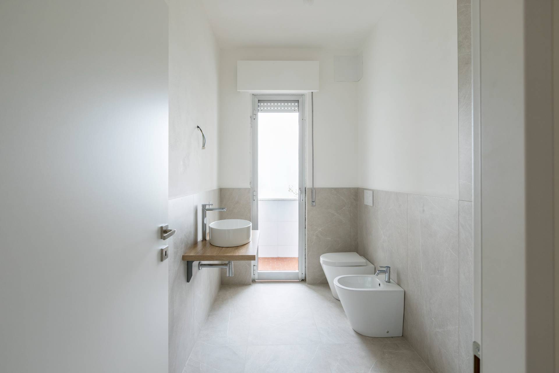 L´appartamento verrà consegnato con nuovi serramenti in PVC con doppio vetro e anta a ribalta, bianchi all´interno e grigi all´esterno.