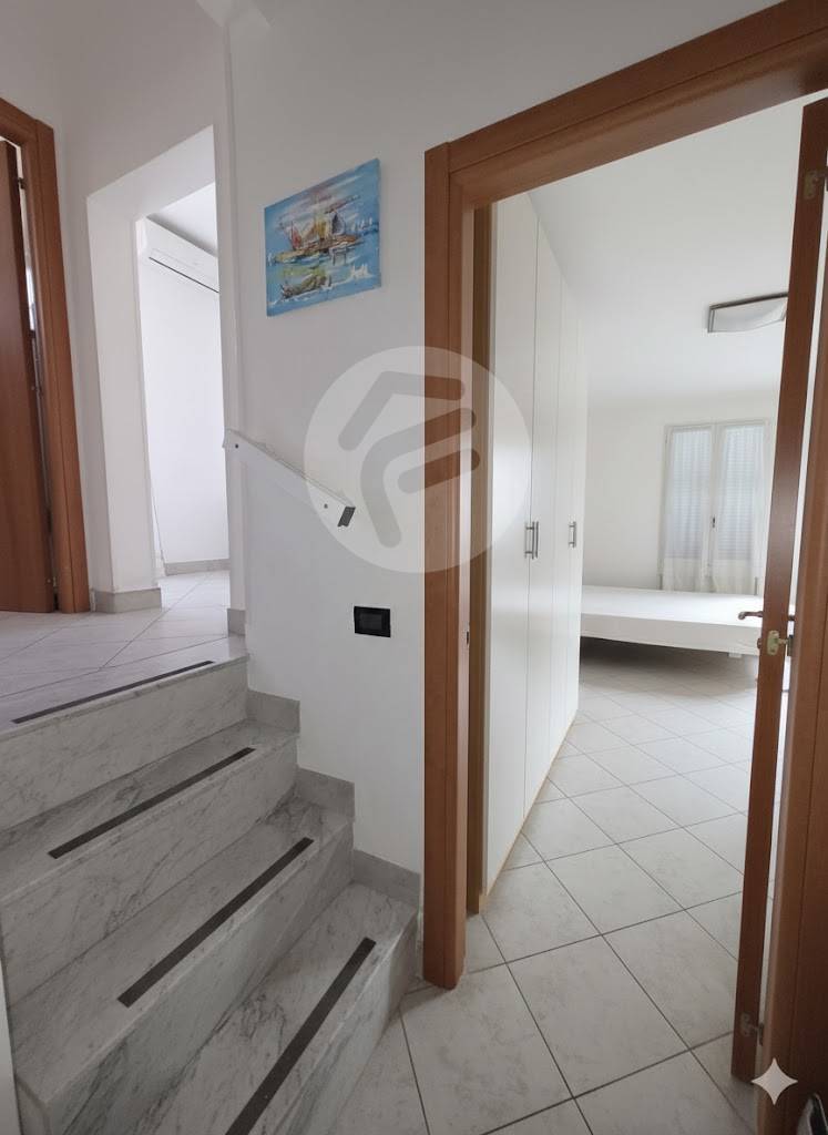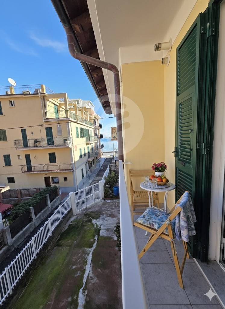 Appartamento in villa indipendente sito al 1° piano, a solo 20 mt dal mare bilocale internamente composto da ingresso su disimpegno, camera matrimoniale con 4 posti letto, letto matrimoniale e letto a castello, scalini per accedere alla zona giorno composta da cucinino/ zona giorno con accesso al balcone dove poter mettere due sedie e sentire il rumore del mare, bagno con doccia Aria condizionata e accesso indipendente