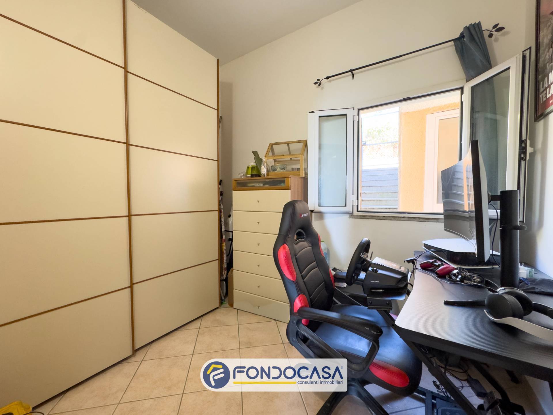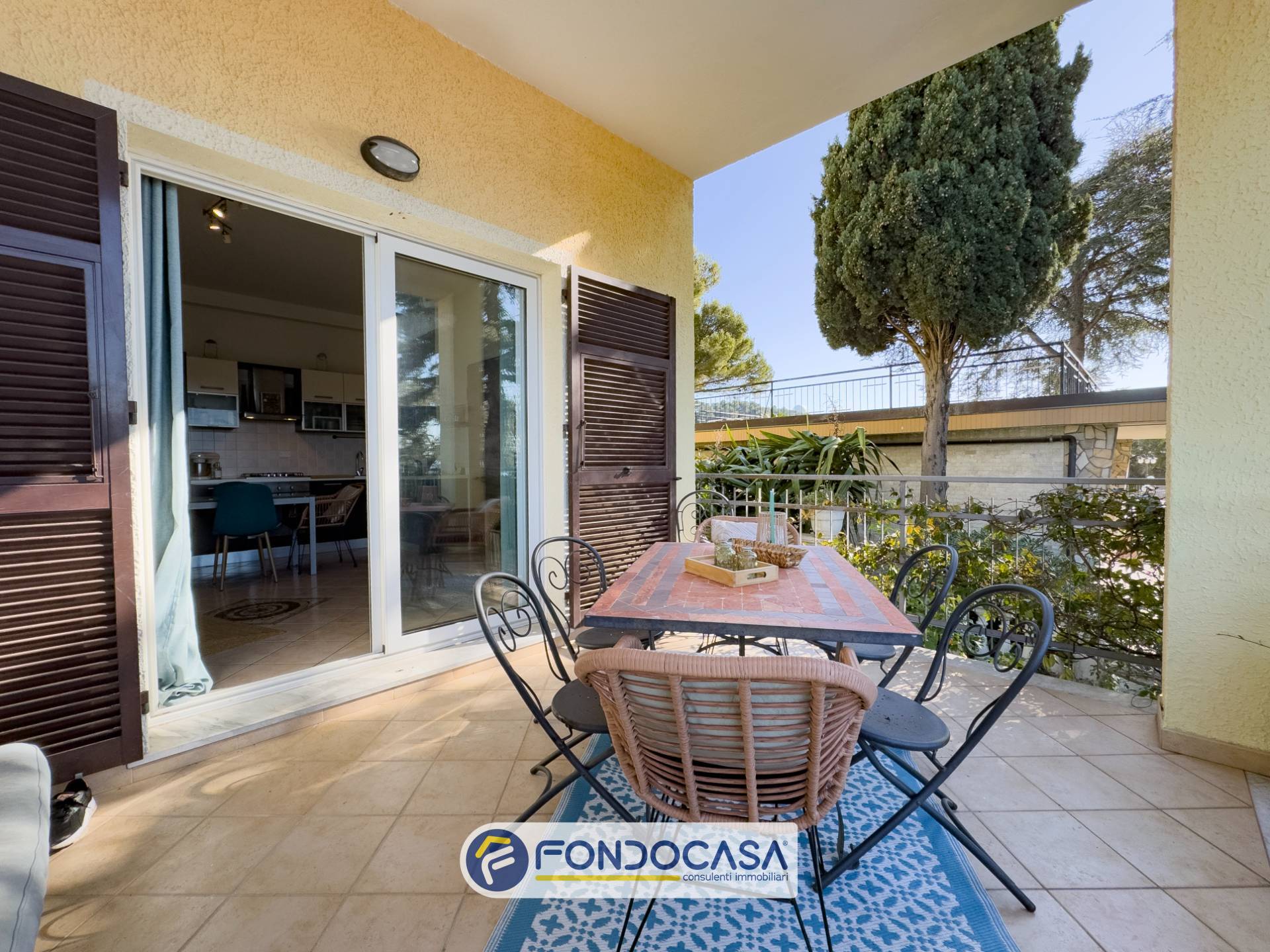 La soluzione, dotata di ingresso indipendente, si apre su una curata corte esterna che funge da piacevole spazio di accoglienza e zona relax. Da qui si accede a due comodi ripostigli e a una funzionale area lavanderia.