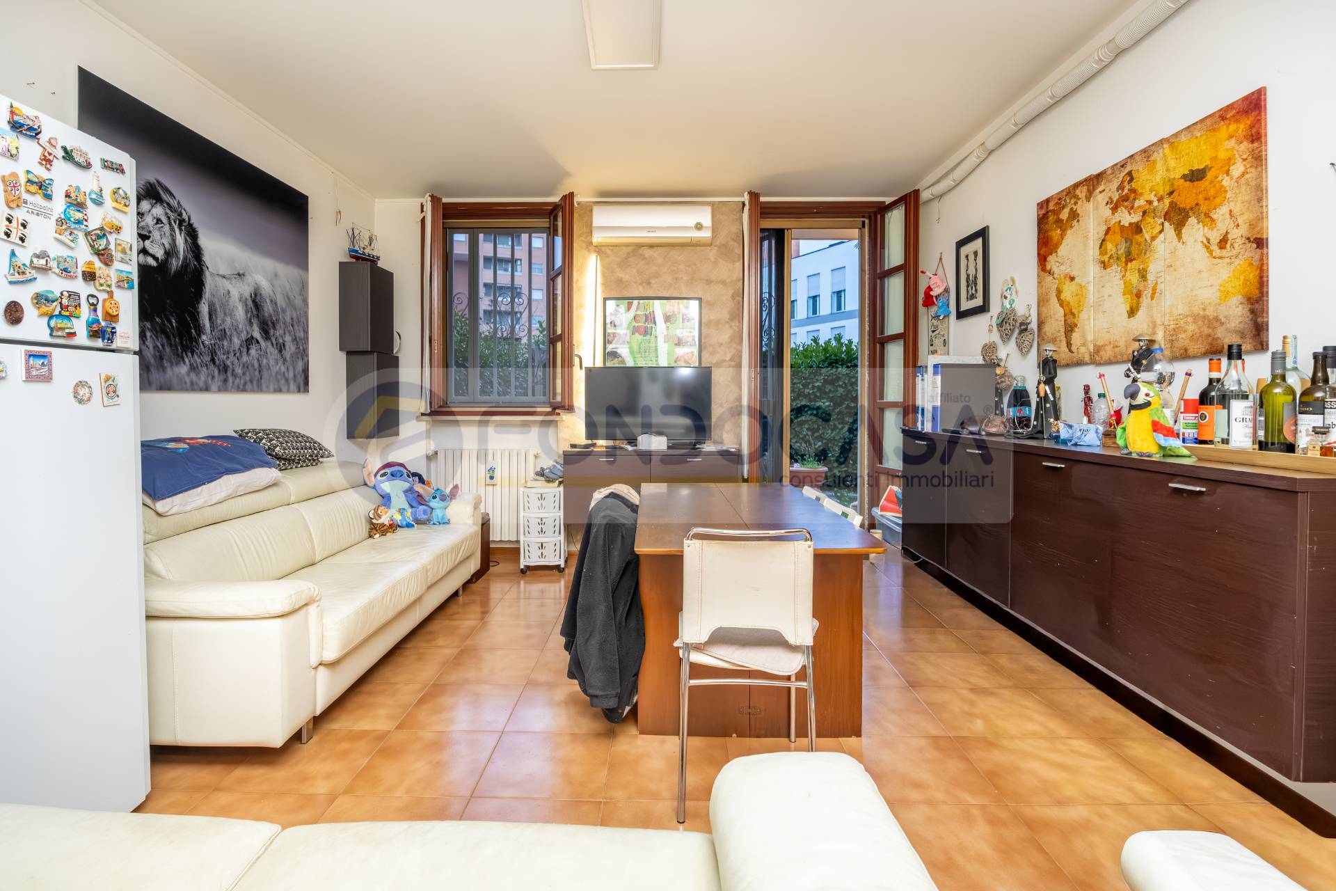 Bilocale di 61 mq, caratterizzato da doppio ingresso, di cui uno dalla scala condominiale, mentre l'altro direttamente dal giardino privato. L'appartamento è composto da uno spazioso soggiorno con un angolo cottura separato, disimpegno che porta a una camera matrimoniale di comoda metratura ed infine un bagno cieco, dotato di impianto ad aerazione forzata. L'immobile è stato ristrutturato intorno al 2018 e dispone di impianto di climatizzazione caldo/freddo.