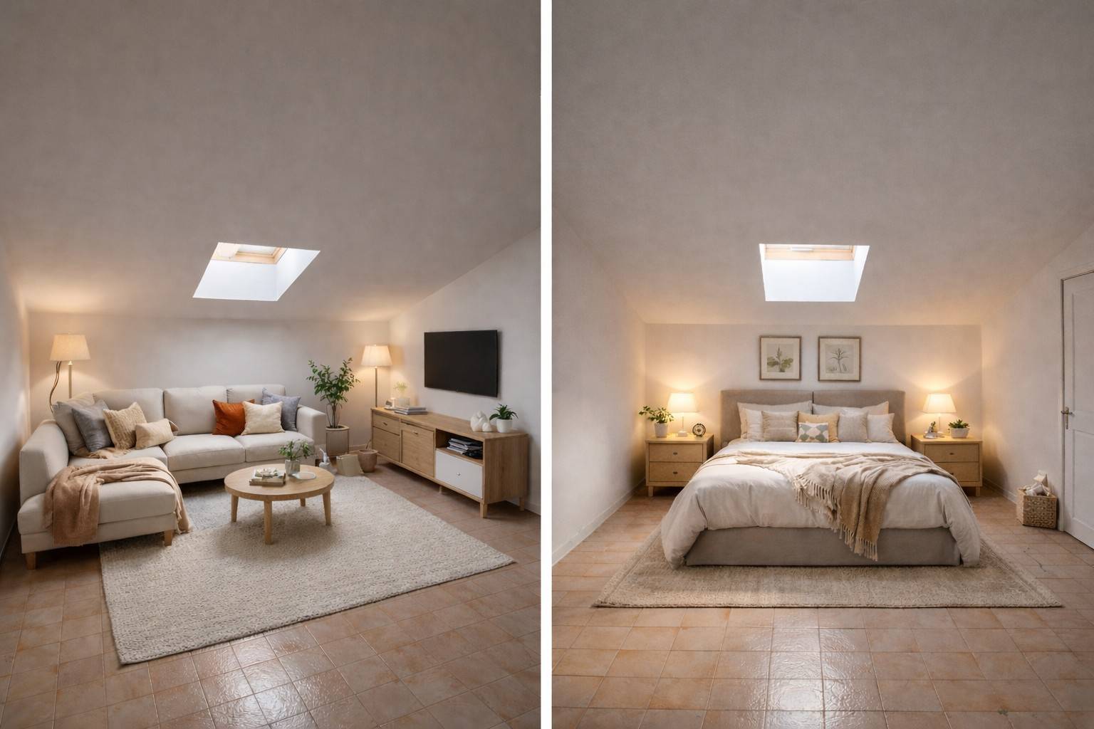- Chi sogna un elegante duplex realizzando una scala interna e creando una zona giorno e una zona notte separate