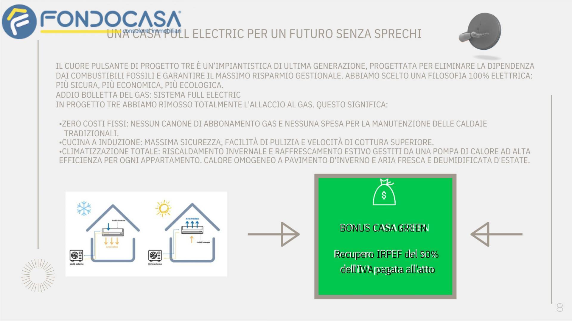 - sistema full electric: nessuna bolletta del gas;