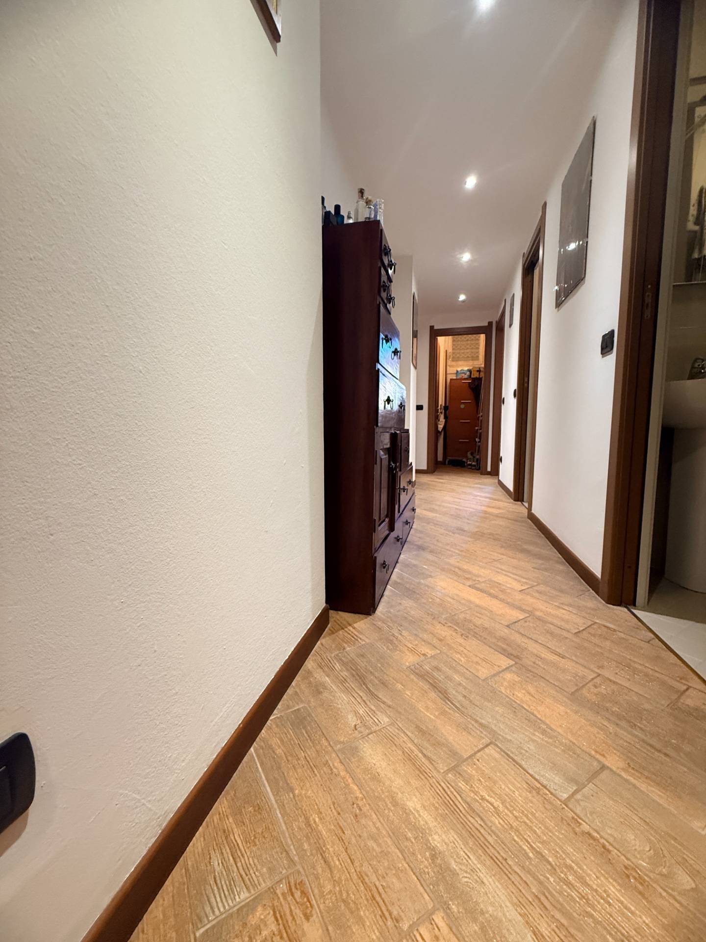 Un comodo disimpegno notte, impreziosito da ribassamento con faretti, accompagna nella zona più riservata composta da: