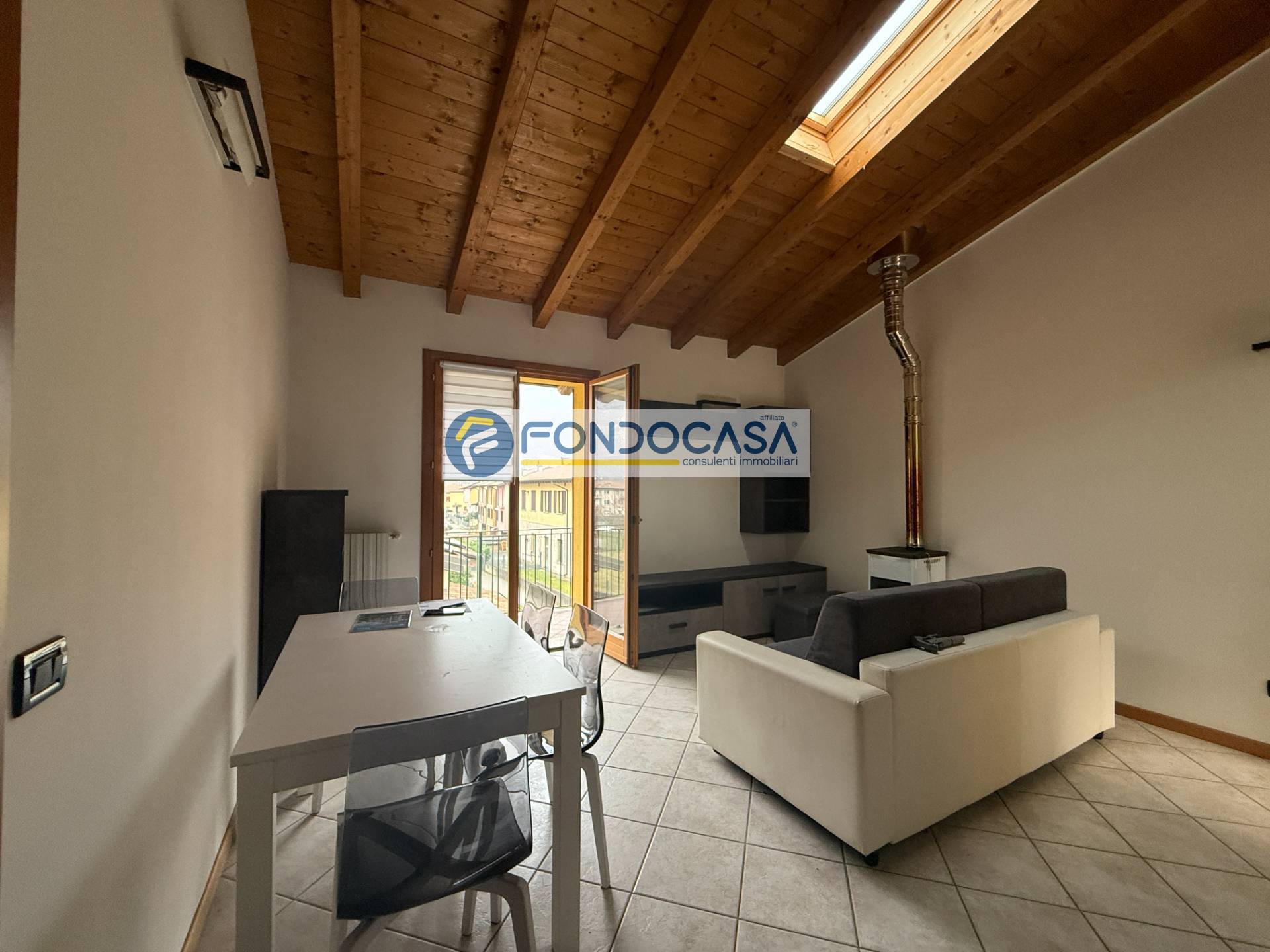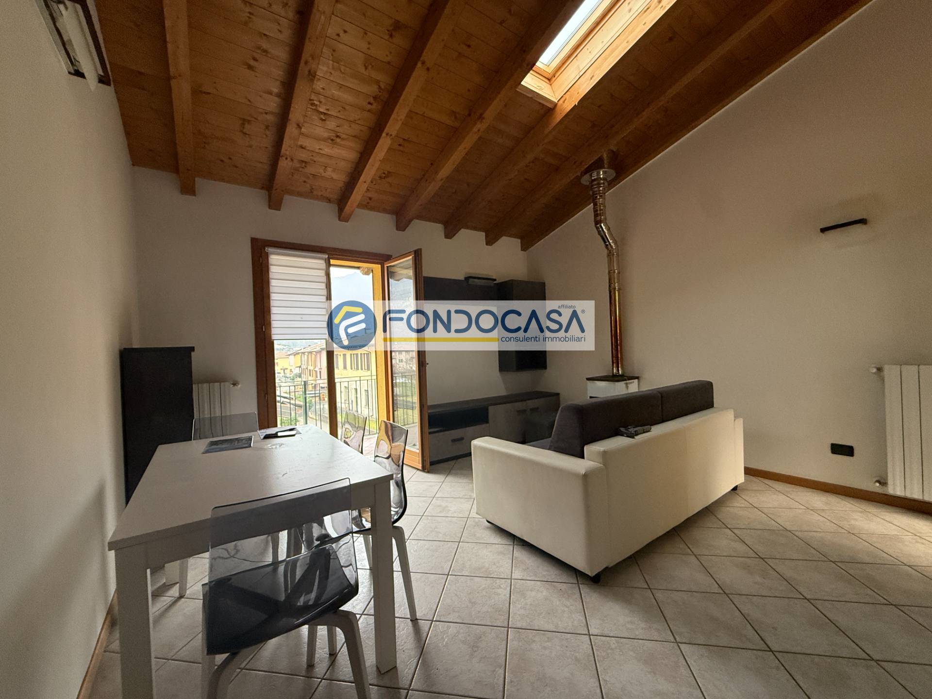 AA Suitable for singles or young couples just starting out! Vobarno, in a highly sought-after residential area, private individual selling in a small and elegant building of only four units, apartment on the first and last floor composed as follows: entrance hall, living area with kitchenette, night hallway, double bedroom with balcony, master bathroom with window... exposed beams, furnished and finished in a modern style... only lived in for six days... practically new... garage included in the price, furnished and equipped as shown in the photos... and... yes, the wood stove remains...! ! !