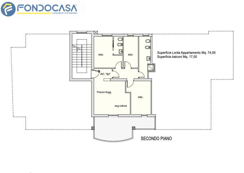 Situato al secondo piano (senza ascensore) di una piccola palazzina, l´appartamento misura internamente 74 mq ed è così composto: