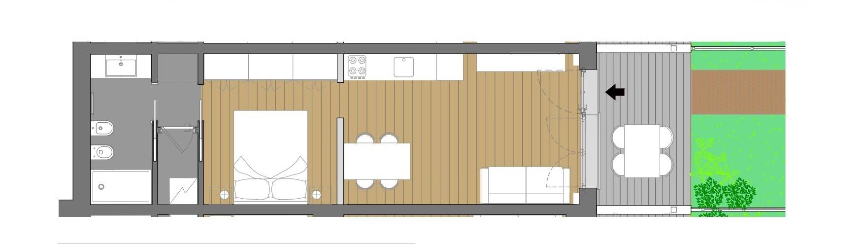 Elegante monolocale arredato di 57 m² commerciali, progettato con attenzione sartoriale agli spazi: