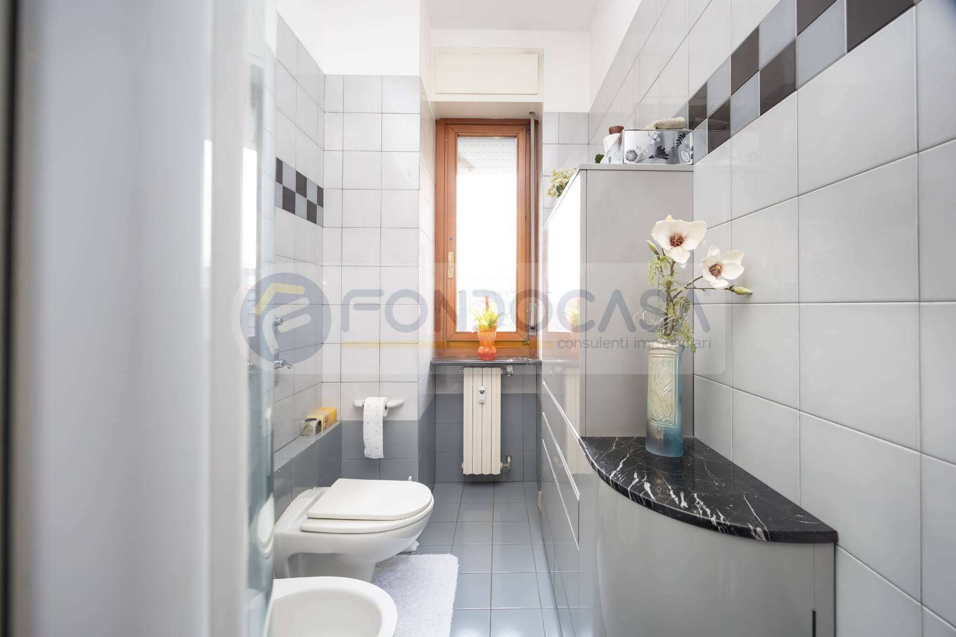 In un contesto condominiale anni '60 con servizio di portineria ad intera giornata proponiamo in vendita Spazioso trilocale di 115 mq caratterizzato da doppia esposizione est-ovest, composto da ingresso su disimpegno, un arioso doppio soggiorno, una cucina abitabile, doppi servizi entrambi finestrati, un pratico ripostiglio e due camere da letto di comoda metratura. Tutte le stanze dispongono di accesso ai rispettivi 4 balconi, mentre è presente impianto di impianto di climatizzazione in soggiorno e nella camera matrimoniale.