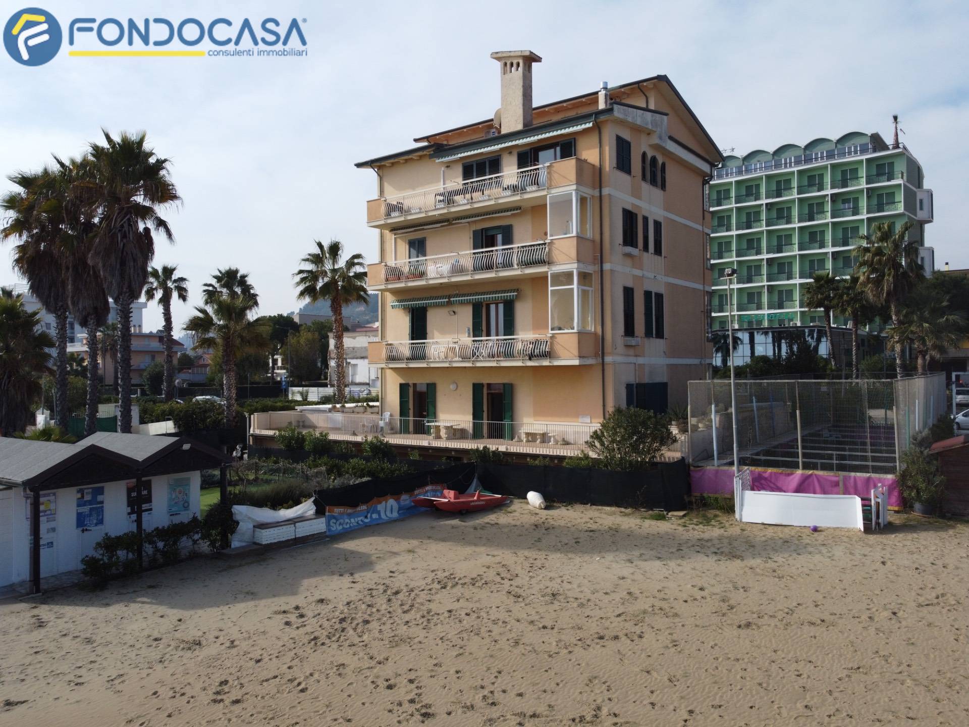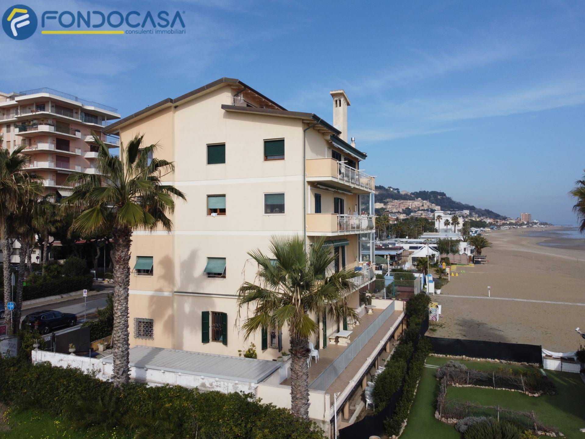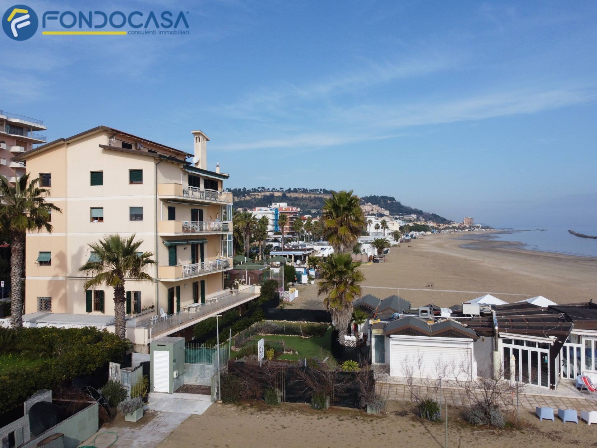 Sul lungomare di Grottammare, in una posizione semplicemente irripetibile, proponiamo in vendita in esclusiva Fondocasa un appartamento che si trova letteralmente sulla spiaggia: l´edificio affaccia direttamente sull´arenile, senza alcuna strada a separare casa e mare. Da un lato il mare, dall´altro il lungomare, i servizi e il centro di Grottammare, con San Benedetto del Tronto a pochi minuti.