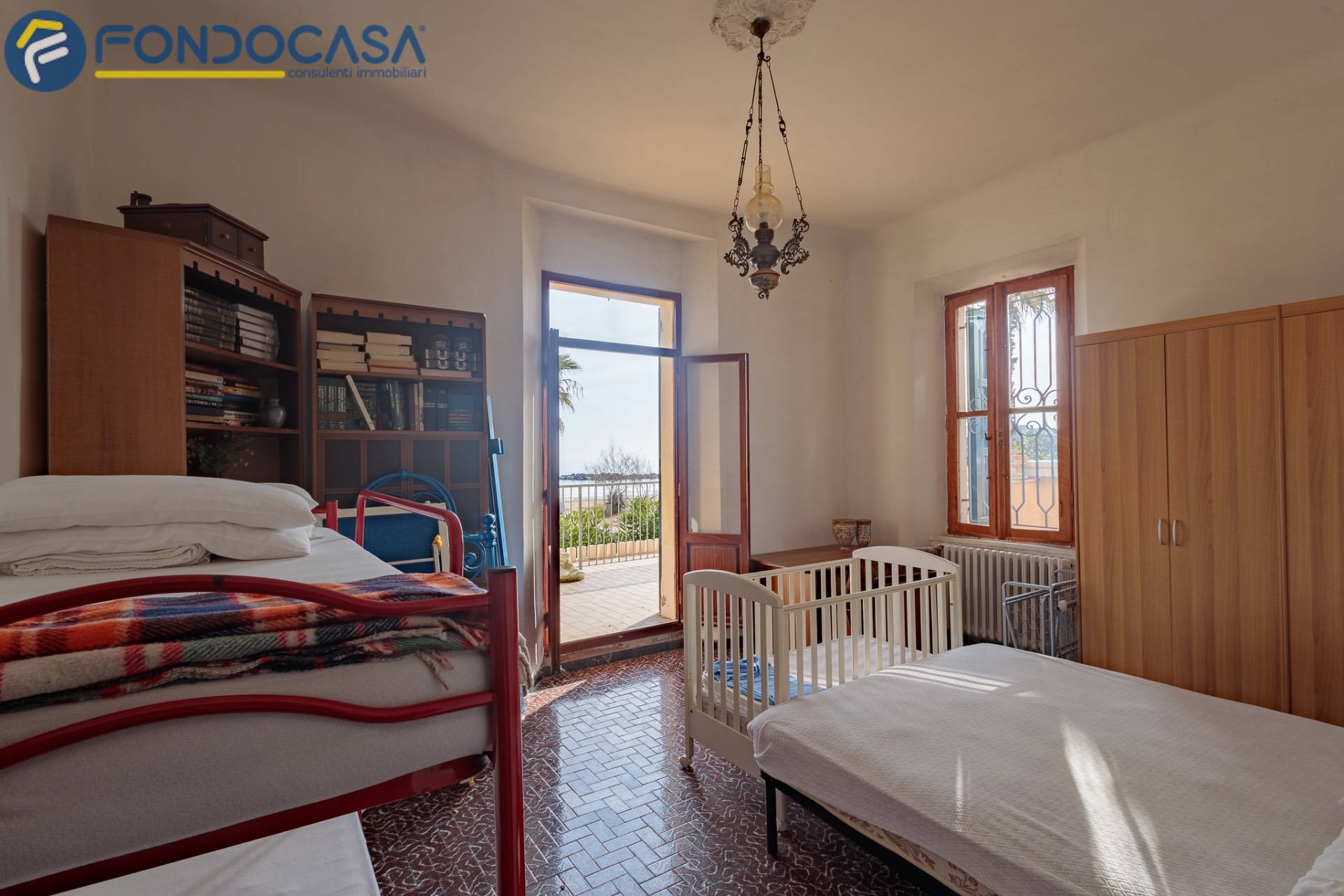 La disposizione interna è ideale per chi cerca ampie metrature: una cucina abitabile di generose dimensioni, che funge anche da zona giorno, con accesso diretto al terrazzo vista mare, quattro camere da letto spaziose e due bagni entrambi finestrati.