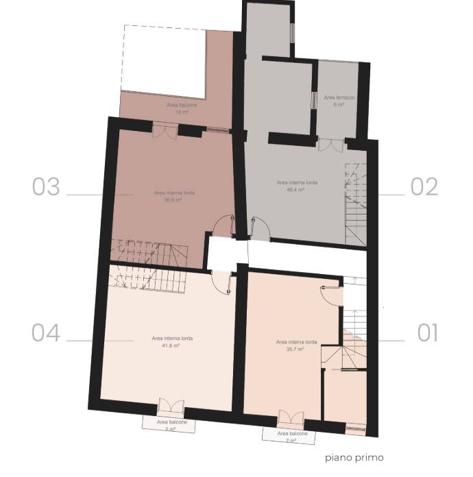 Gli appartamenti sono duplex di nuova realizzazione, con metrature tra circa 75 e 84 mq, pensati per garantire comfort e qualità abitativa.