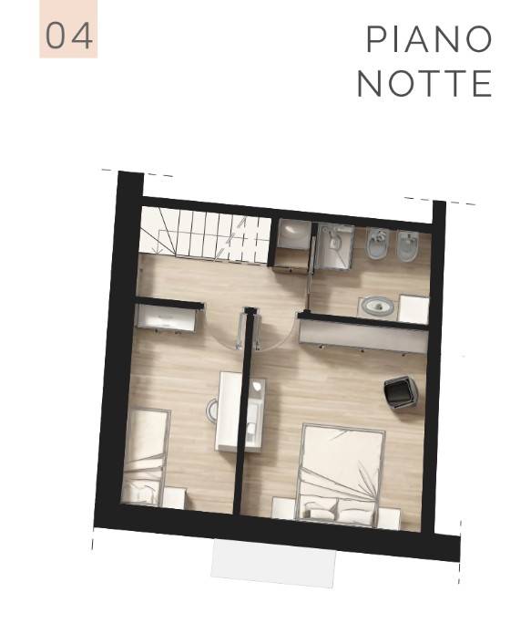 Gli interni valorizzano materiali naturali e raffinati come parquet in rovere naturale, legno a vista, mattoni originali restaurati e rivestimenti in gres effetto pietra, creando un perfetto equilibrio tra tradizione e design contemporaneo.