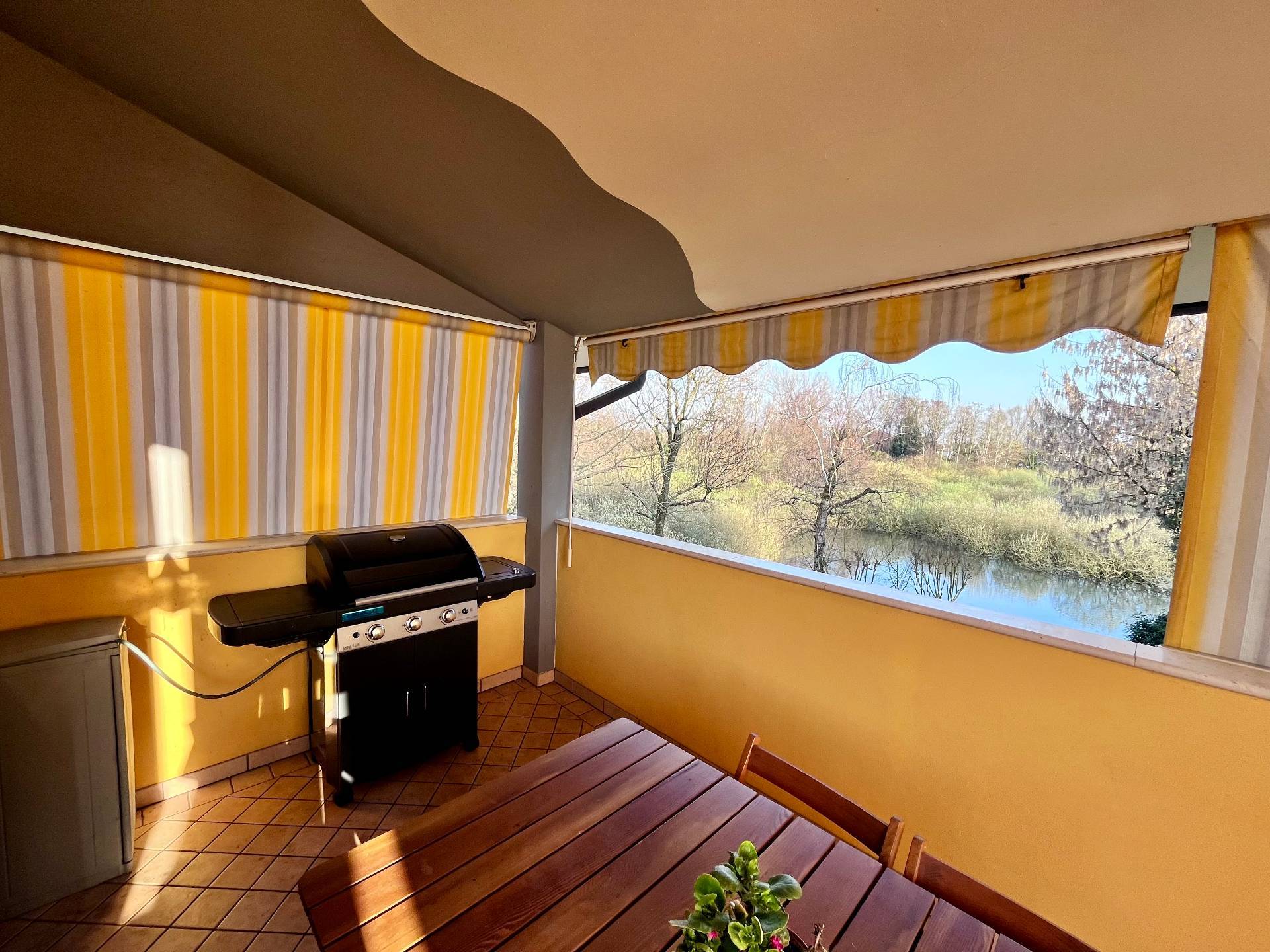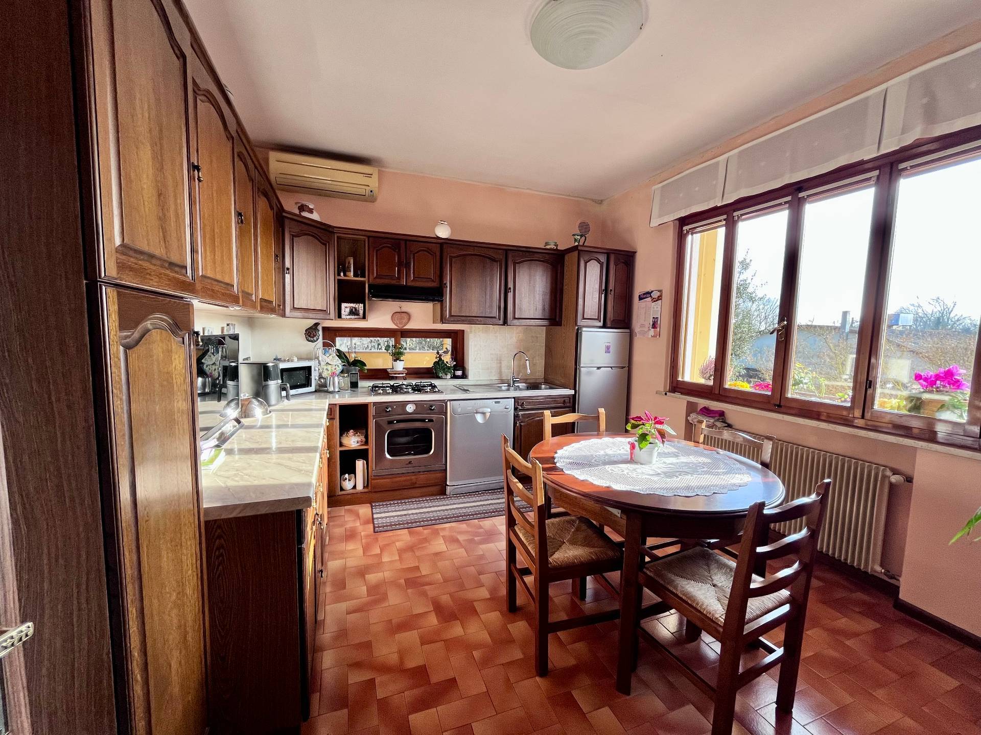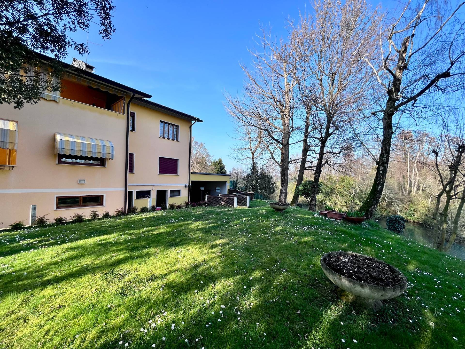 Appartamento indipendente al primo piano in casa bifamiliare, composto da ingresso, luminoso soggiorno con stufa a legna e uscita in bellissima terrazza abitabile con vista sul Noncello, cucina abitabile, disimpegno notte, due camere matrimoniali, camera doppia, bagno ristrutturato con doccia. Al piano seminterrato taverna con caminetto e cucinino, lavanderia, bagno con doccia, cantina, garage singolo e garage doppio. Giardino condiviso con l'appartamento del piano terra. Edificio ben curato e manutentato.