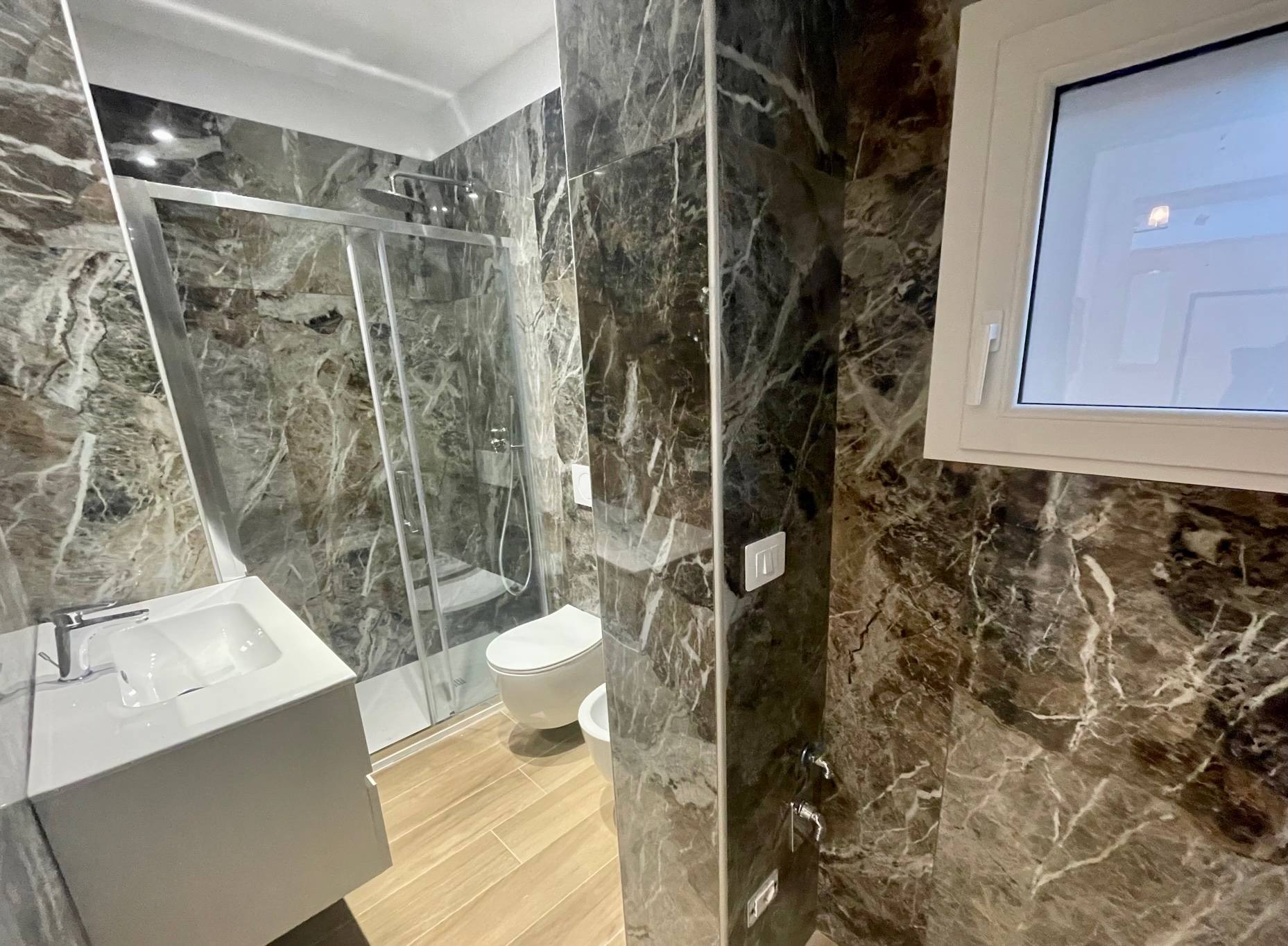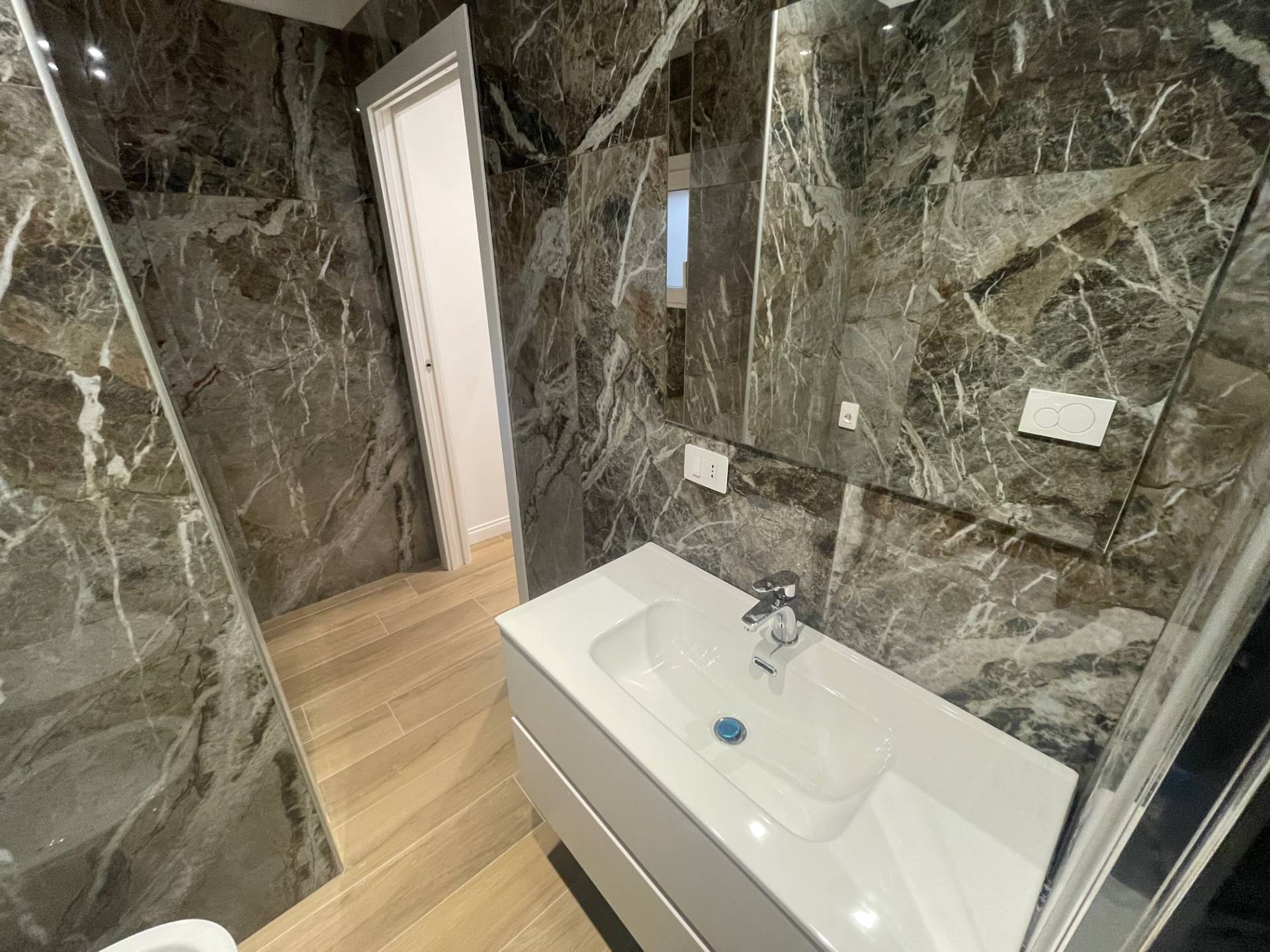Bilocale di 35mq, composto da ingresso diretto su spaziosa zona living dotata di cucina a vista, una camera da letto matrimoniale ed un bagno finestrato dotato di box doccia, impreziosito da eleganti finiture in marmo.