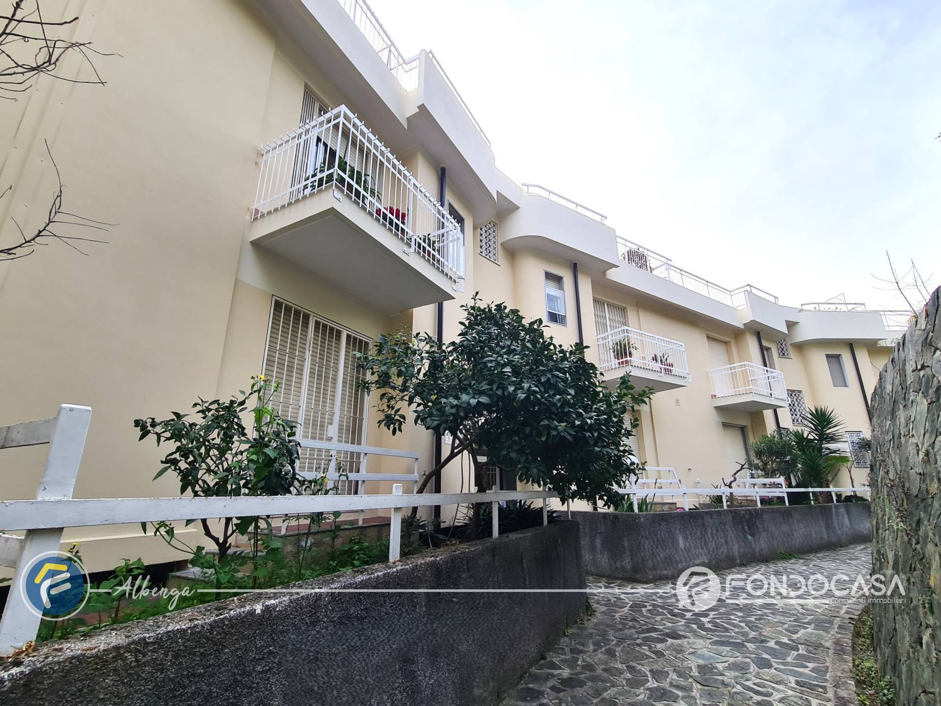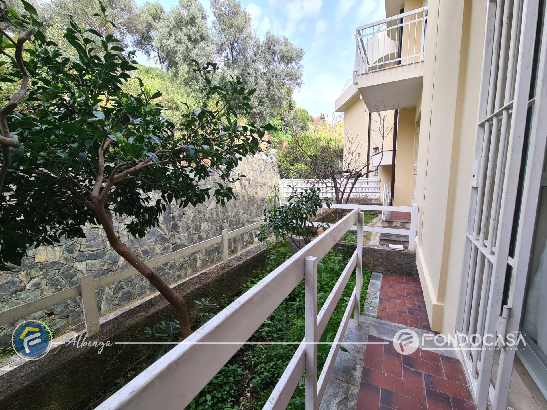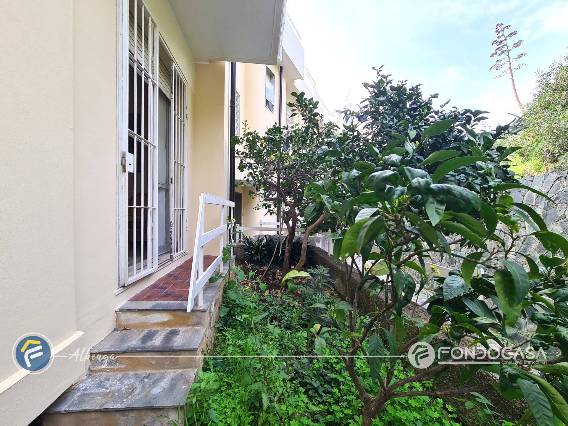 L´ingresso conduce ad un ampio salone dal quale si accede alla spaziosa terrazza vivibile in cui poter trascorrere momenti di relax godendo di una splendida vista sul mare e sull'Isola Gallinara, cucinotto separato e finestrato, camera matrimoniale con accesso diretto ad un giardino di proprietà, bagno finestrato ed un comodo ripostiglio.