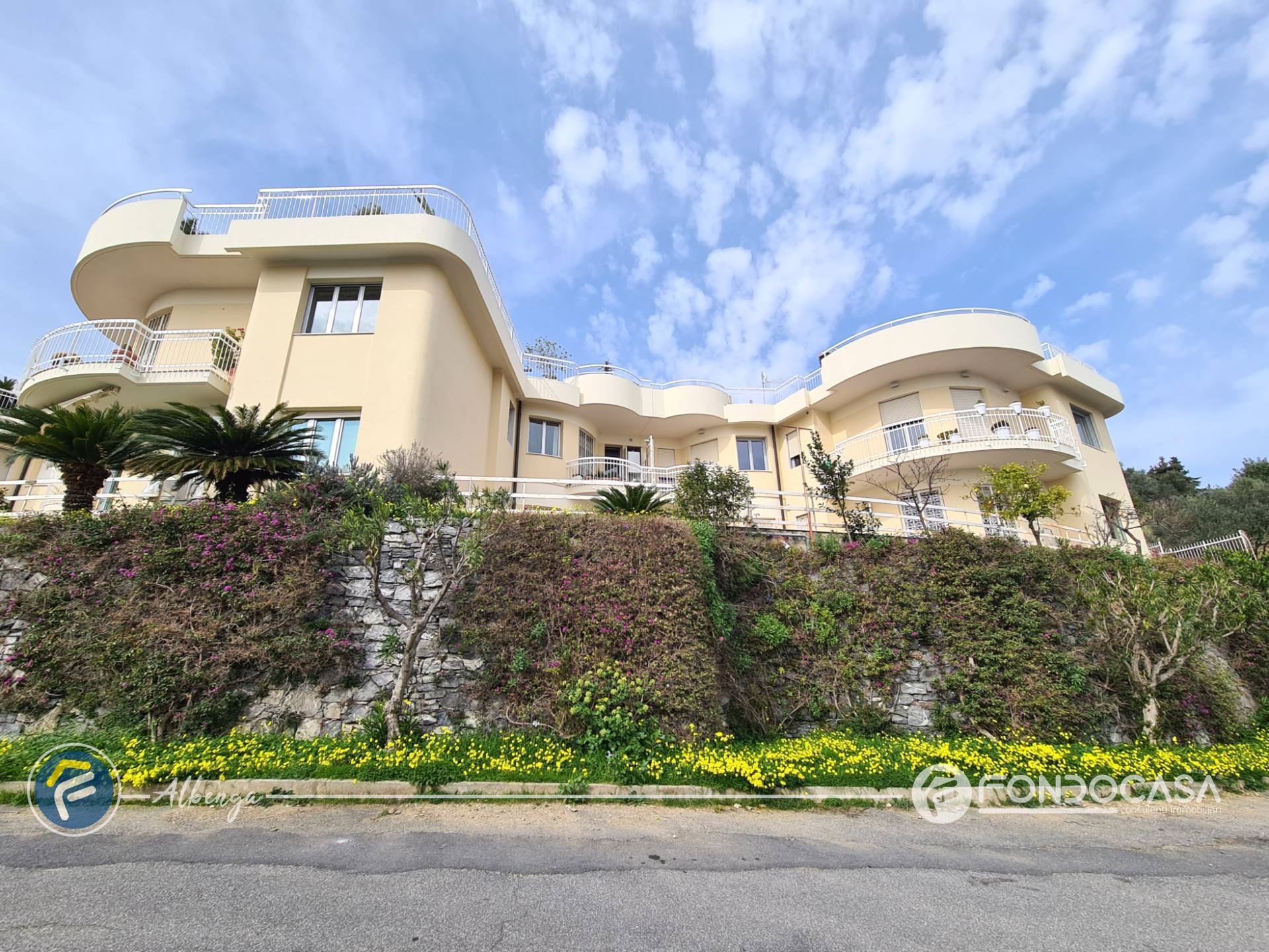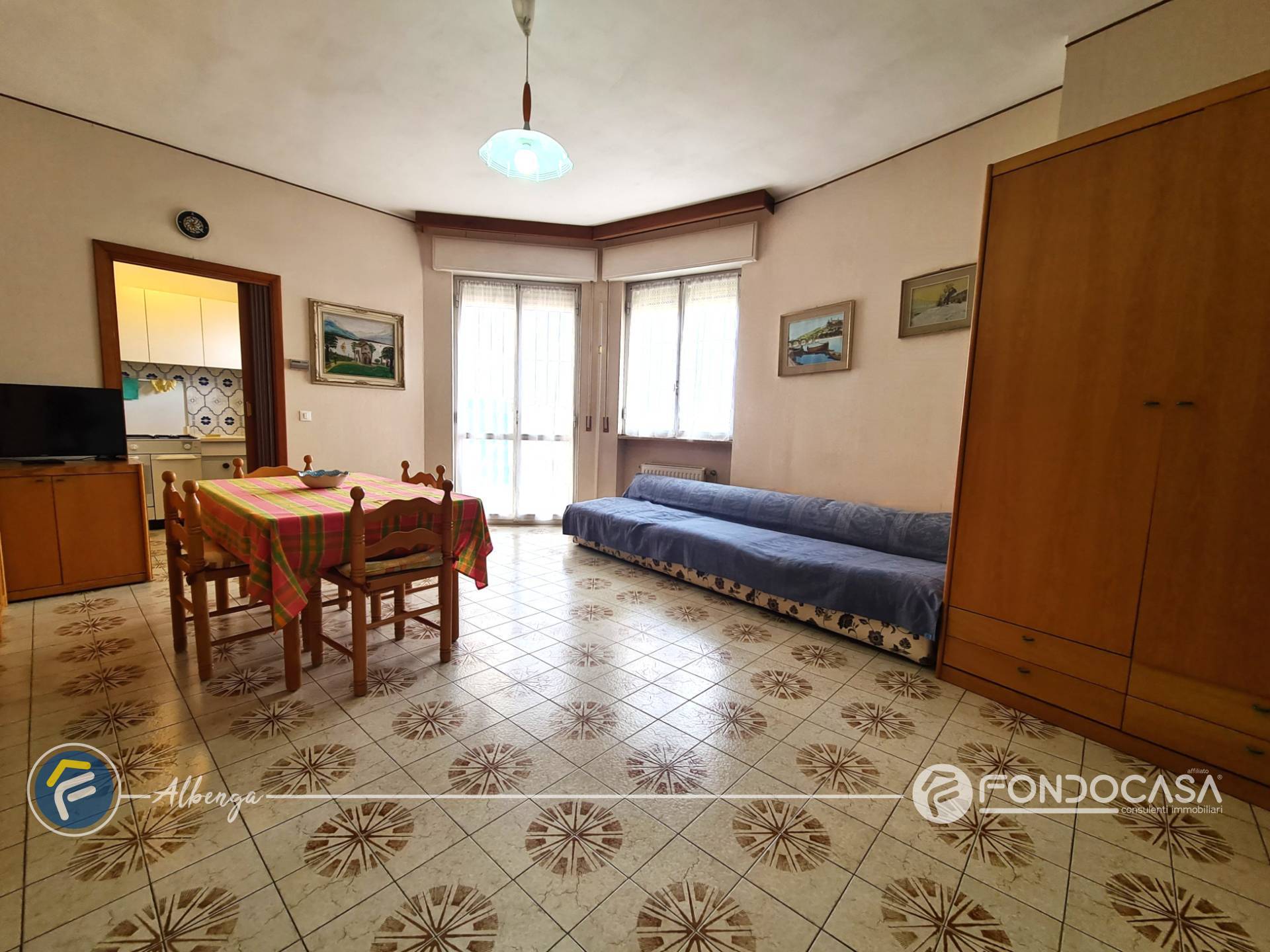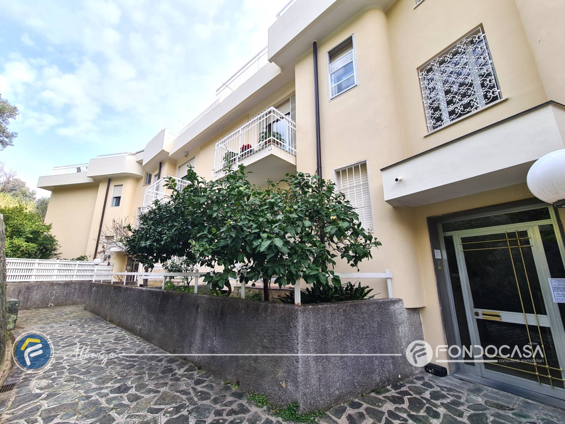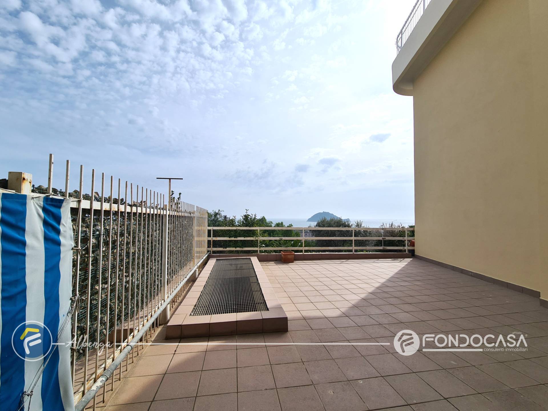 L´ingresso conduce ad un ampio salone dal quale si accede alla spaziosa terrazza vivibile in cui poter trascorrere momenti di relax godendo di una splendida vista sul mare e sull'Isola Gallinara, cucinotto separato e finestrato, camera matrimoniale con accesso diretto ad un giardino di proprietà, bagno finestrato ed un comodo ripostiglio.