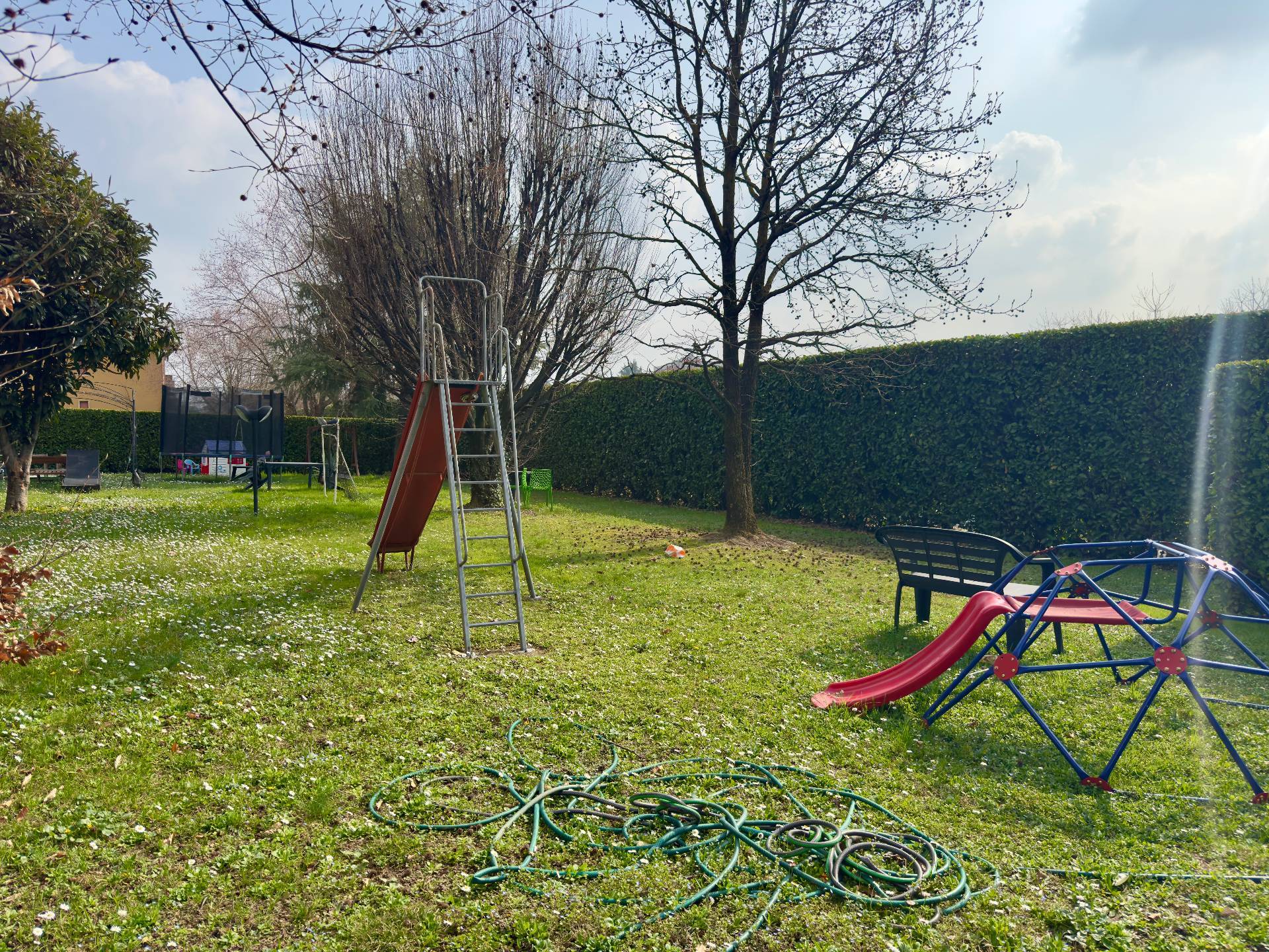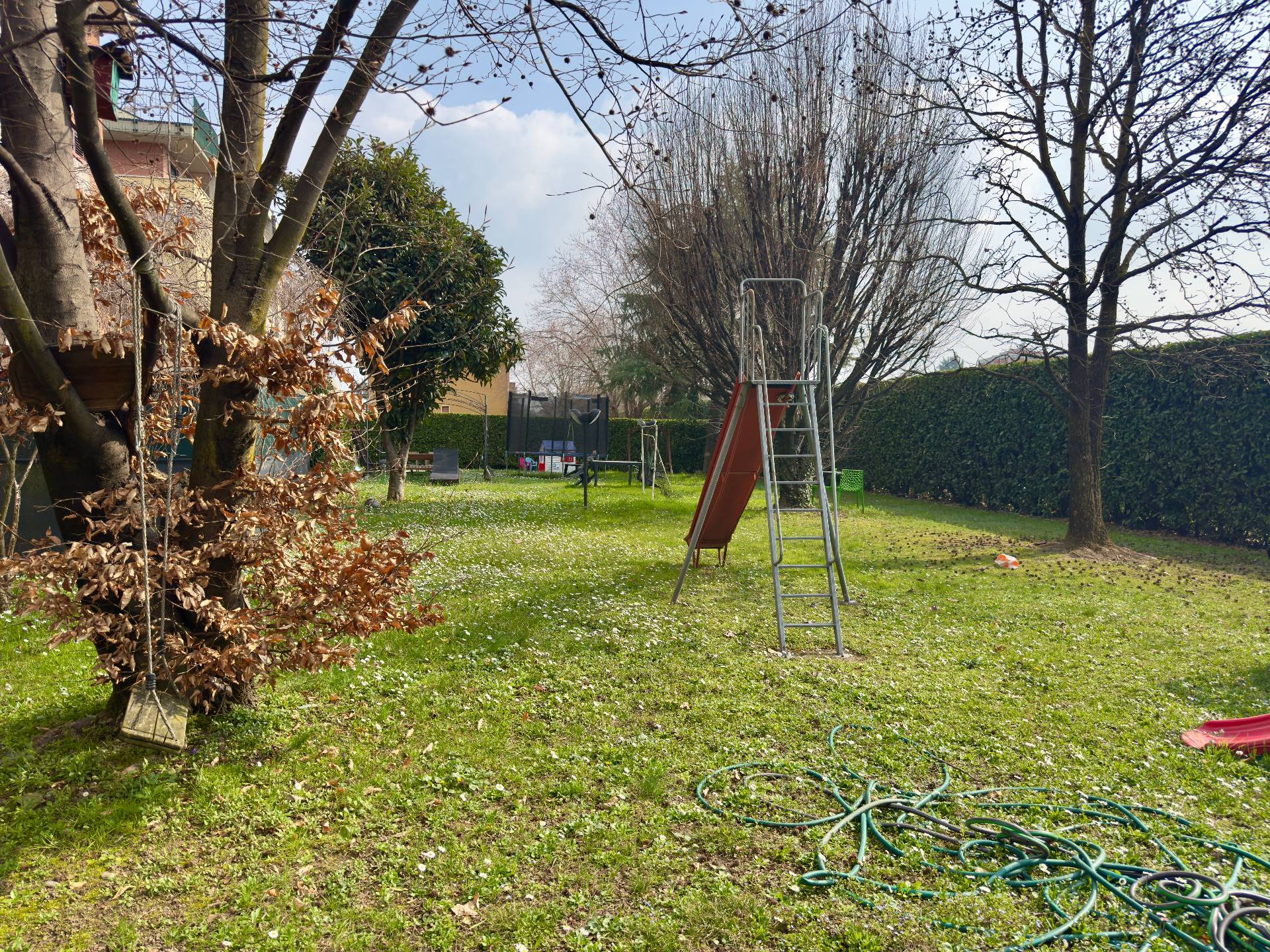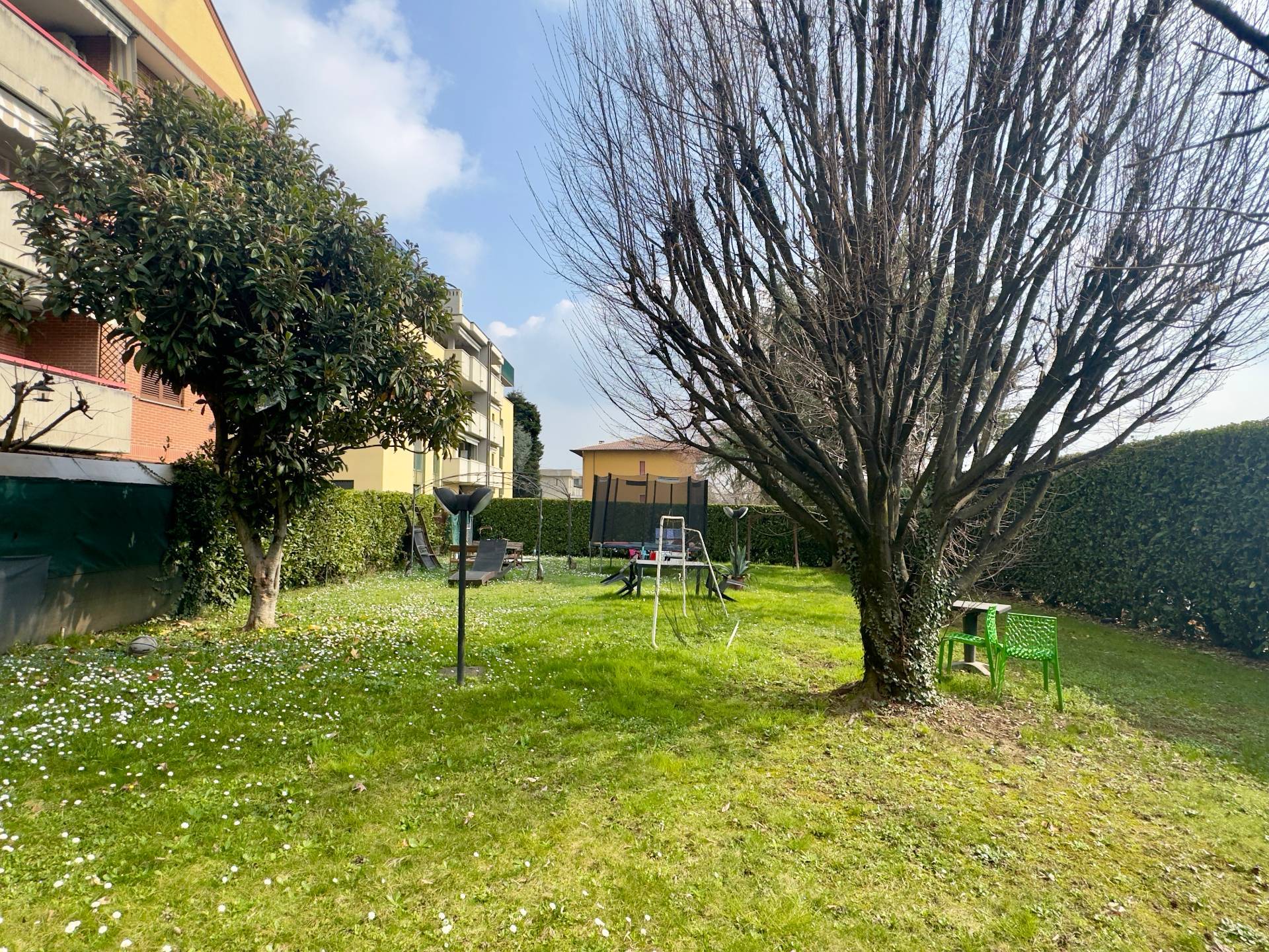 L´appartamento è situato al primo piano di una palazzina edificata negli anni ´90, servita da ascensore e circondata da un piacevole spazio verde comune attrezzato con giochi per bambini e panchine, perfetto per trascorrere momenti di relax all´aria aperta e favorire la convivialità tra vicini.