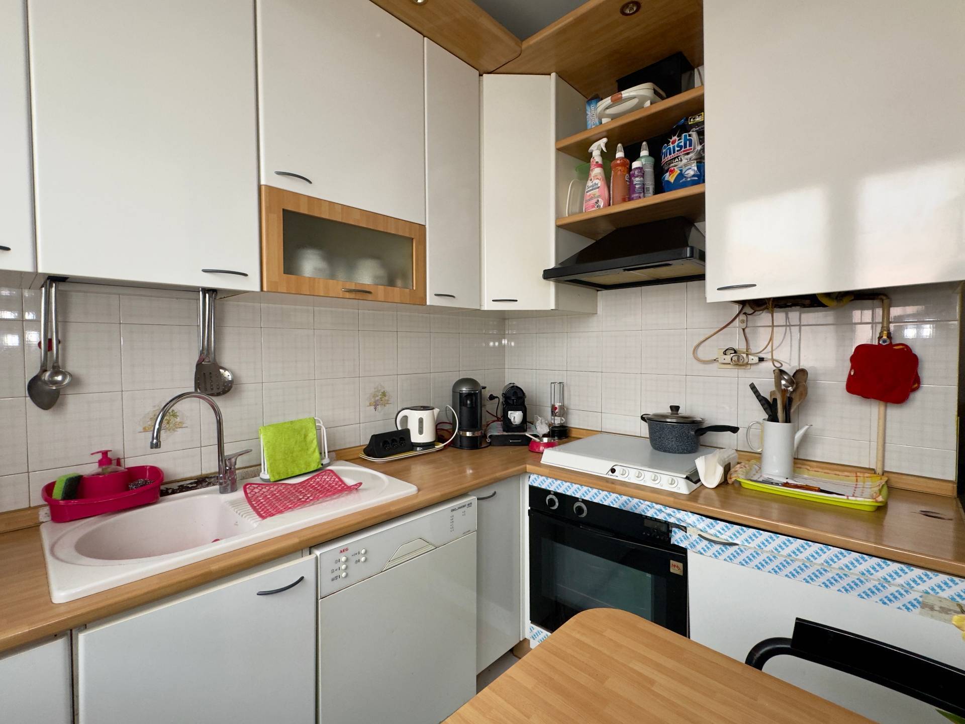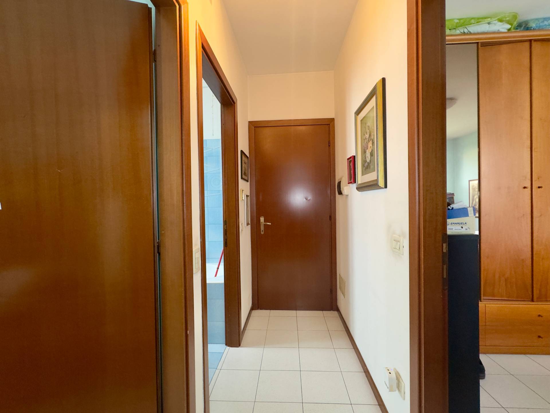 Internamente l´immobile si presenta con una distribuzione razionale e funzionale degli ambienti: l´ingresso si apre su un luminoso soggiorno con angolo cottura e accesso al balcone, ideale per godere di uno sfogo esterno. Un comodo disimpegno conduce alla zona notte, dove troviamo un primo bagno finestrato con vasca, una cameretta versatile perfetta come stanza per un figlio o studio, un secondo bagno con box doccia e una spaziosa camera matrimoniale. Completa la proprietà una cantina al piano seminterrato; è inoltre disponibile un box singolo di ampia metratura acquistabile al prezzo di EUR 15.000.