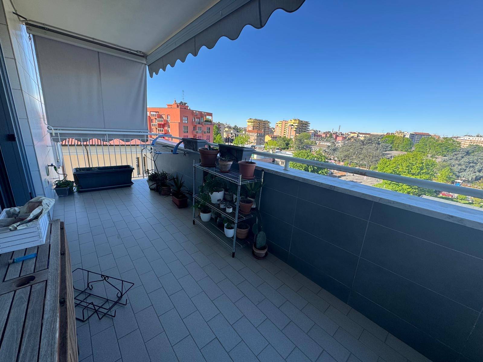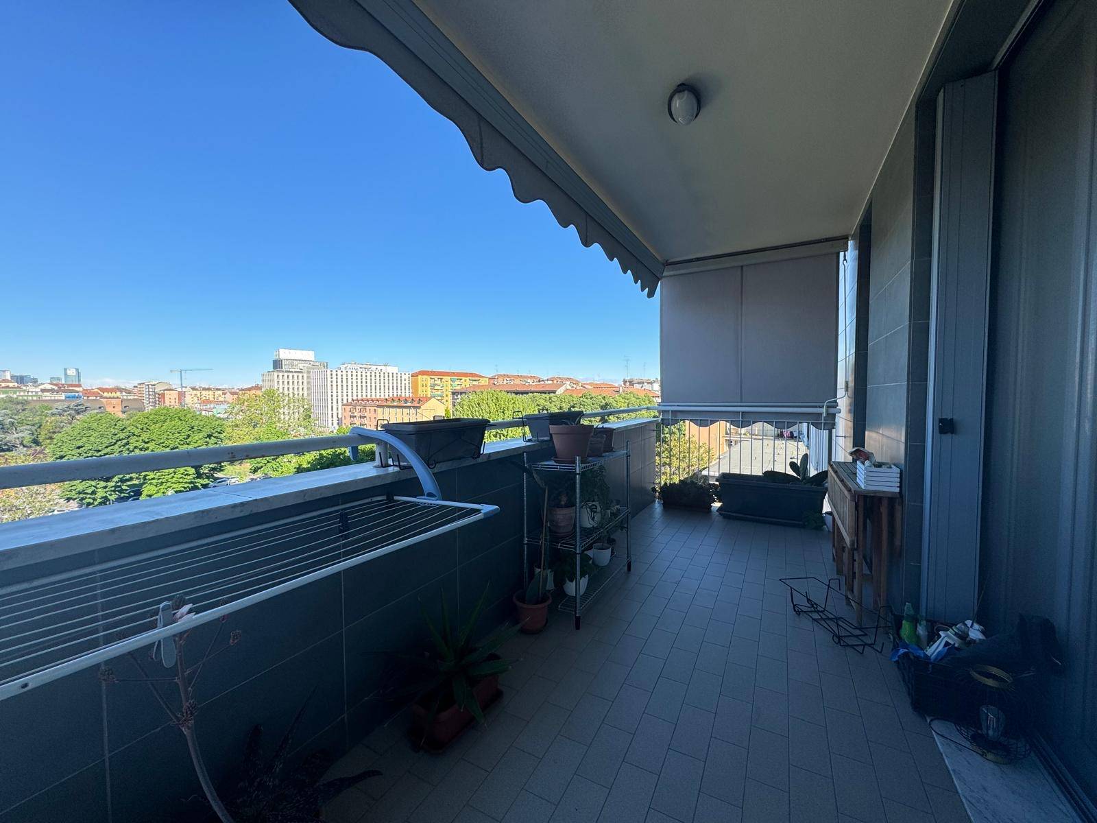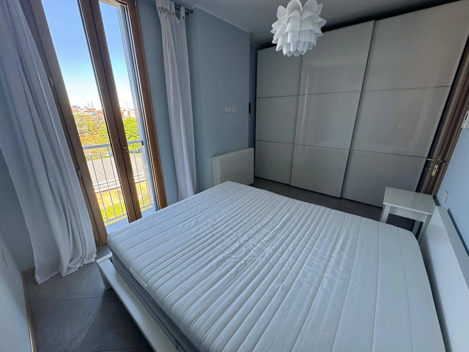 Spazioso Bilocale di 61 mq, composto da ingresso su un arioso soggiorno dotato di moderna cucina a vista, un ampio terrazzo, accessibile sia dalla zona giorno, sia dalla zona notte e che offre una vista libera sulla città, una luminosa camera matrimoniale ed infine un bagno finestrato provvisto di box doccia. La soluzione è dotata di un moderno impianto di climatizzazione freddo/caldo e infissi in doppio vetro.