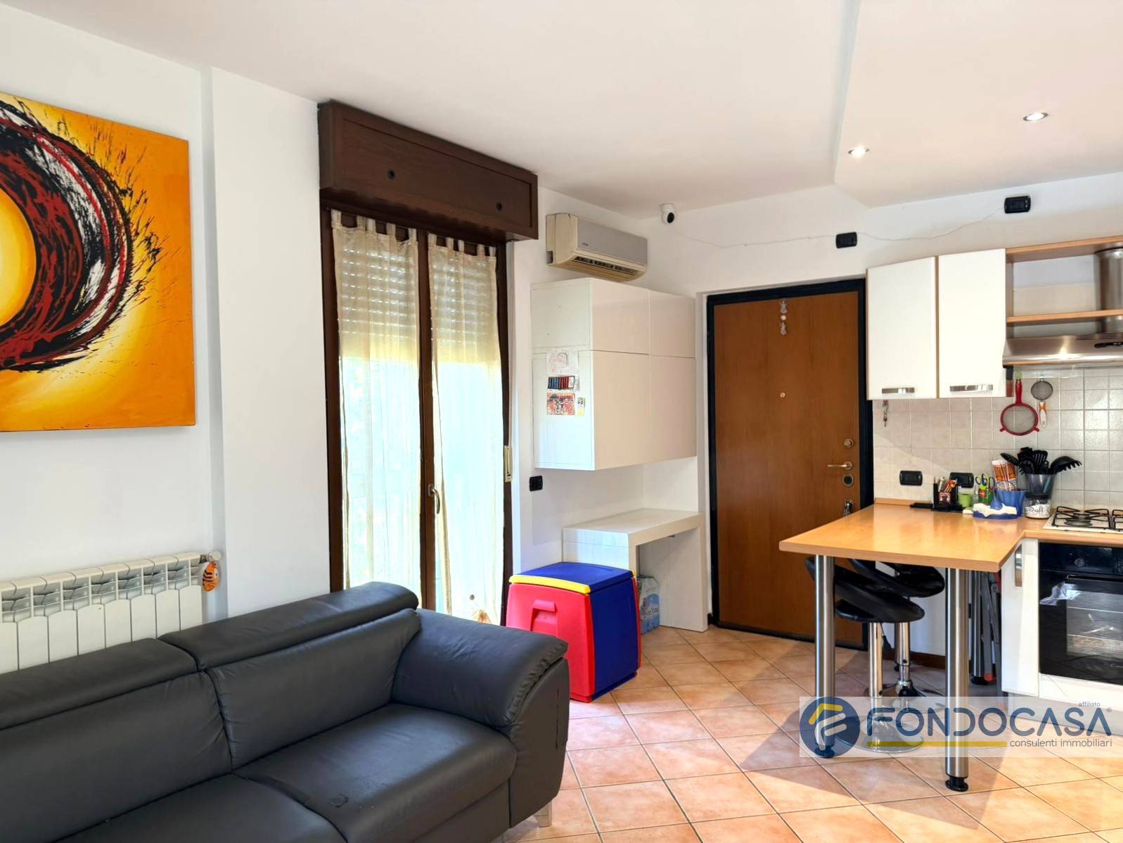 L'appartamento si compone di ingresso su zona giorno con cucina a vista, disimpegno, cameretta, camera matrimoniale e bagno.
