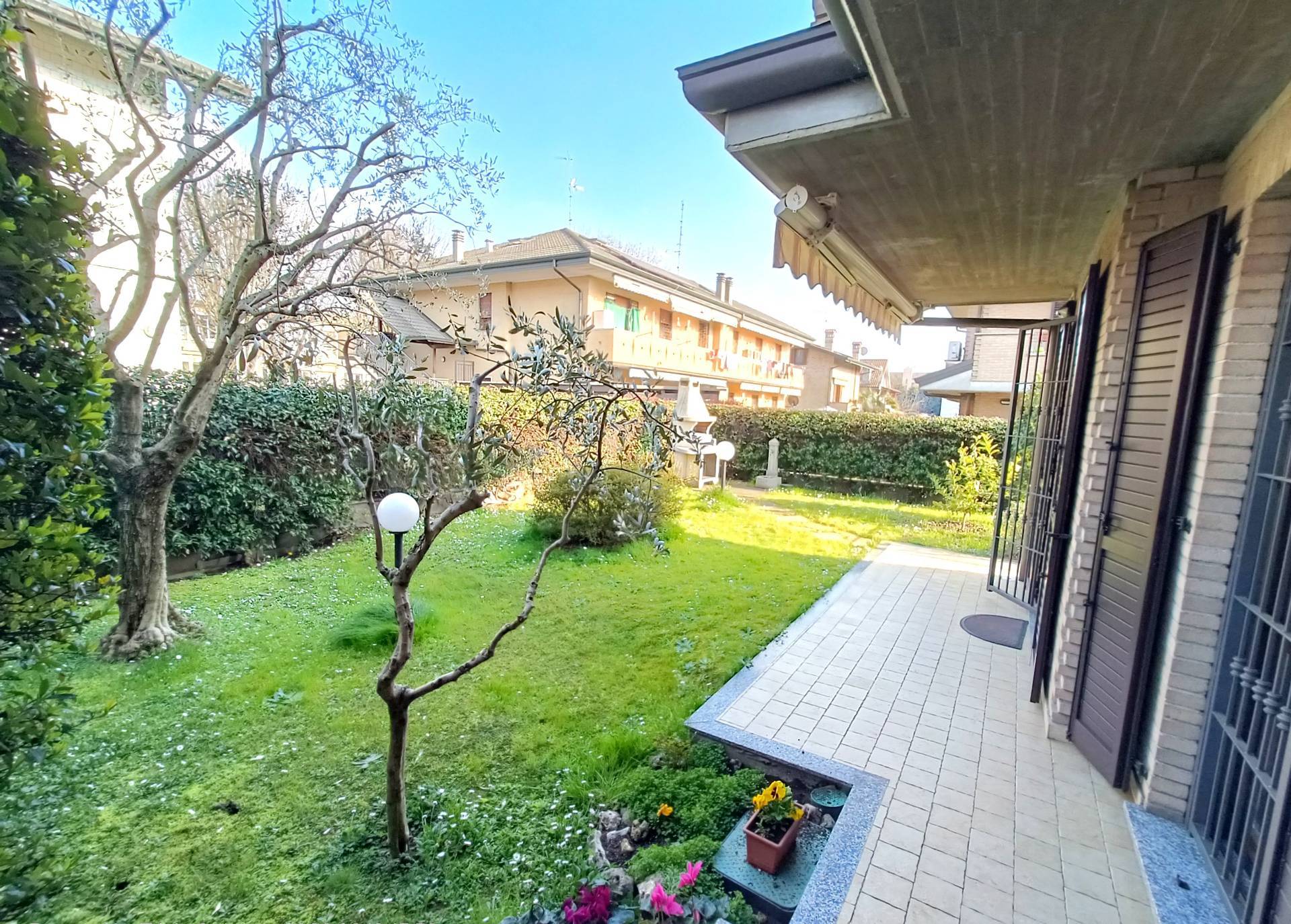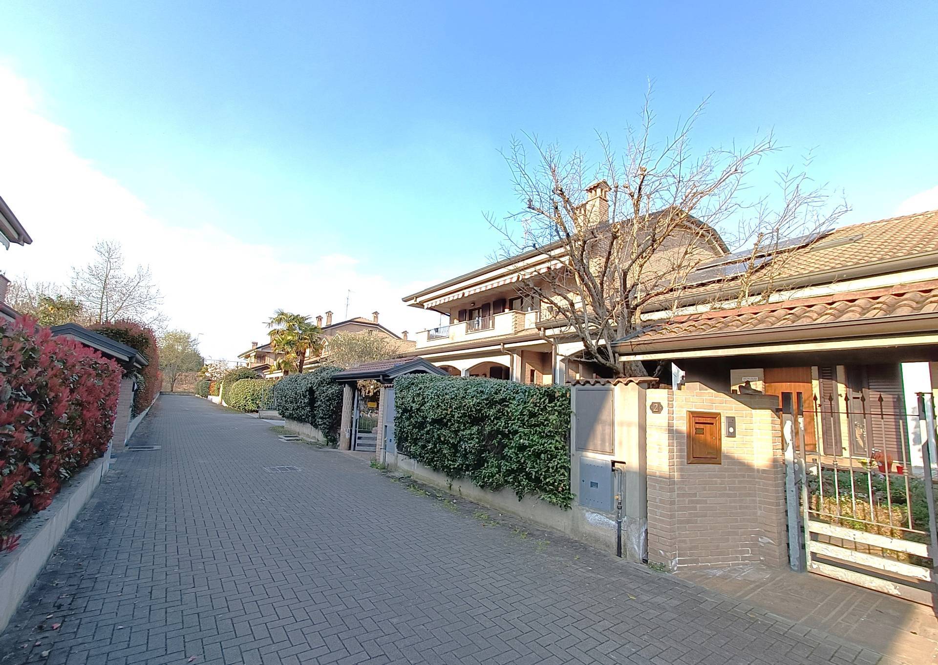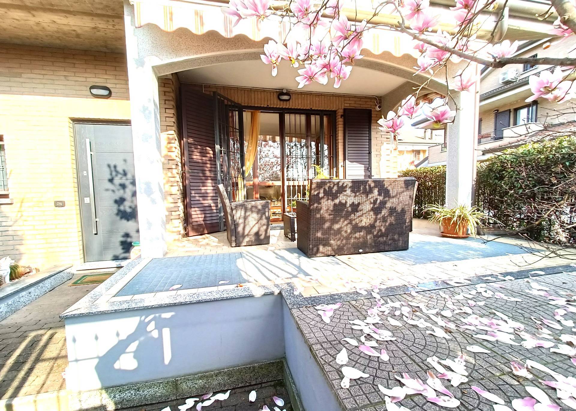 PADERNO DUGNANO: ubicata in una Via Privata, porzione di villa bifamiliare con esterni in mattoni a vista e composta da 4 locali disposti su 2 livelli di 65 mq. per piano così divisa: PT: ingresso con patio coperto, ampio soggiorno con zona pranzo, cucina abitabile con uscita sul giardino retrostante, bagno P1: disimpegno, 3 camere di cui una matrimoniale con bagno padronale e cabina armadio, 2 balconi e secondo servizio, sottotetto open sapce pavimentato e dotato di 3 lucernari e una finestra, oltre a predisposizione per eventuale servizio, accessibile con scala interna, taverna finestrata comunicante con il box triplo con serranda motorizzata e predisposizione per attacchi cucina, servizio con lavanderia e dispensa, giardino privato di 150 mq. con barbeque elettrico. IMPIANTO FOTOVOLTAICO a PANNELLI SOLARI - ANTIFURTO - IMPIANTO DI IRRIGAZIONE - TENDE MOTORIZZATE - ZANZARIERE ed INFERRIATE - CALDAIA A CONDENSAZIONE IBRIDA. OTTIMO STATO