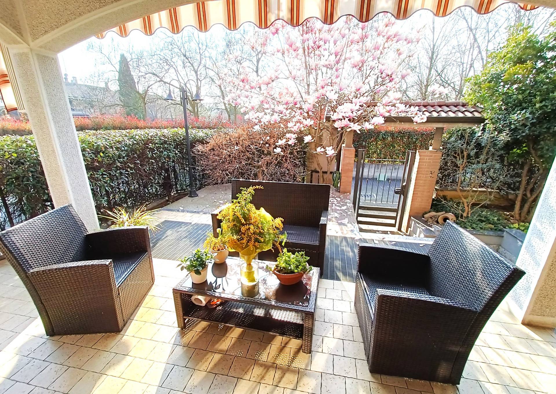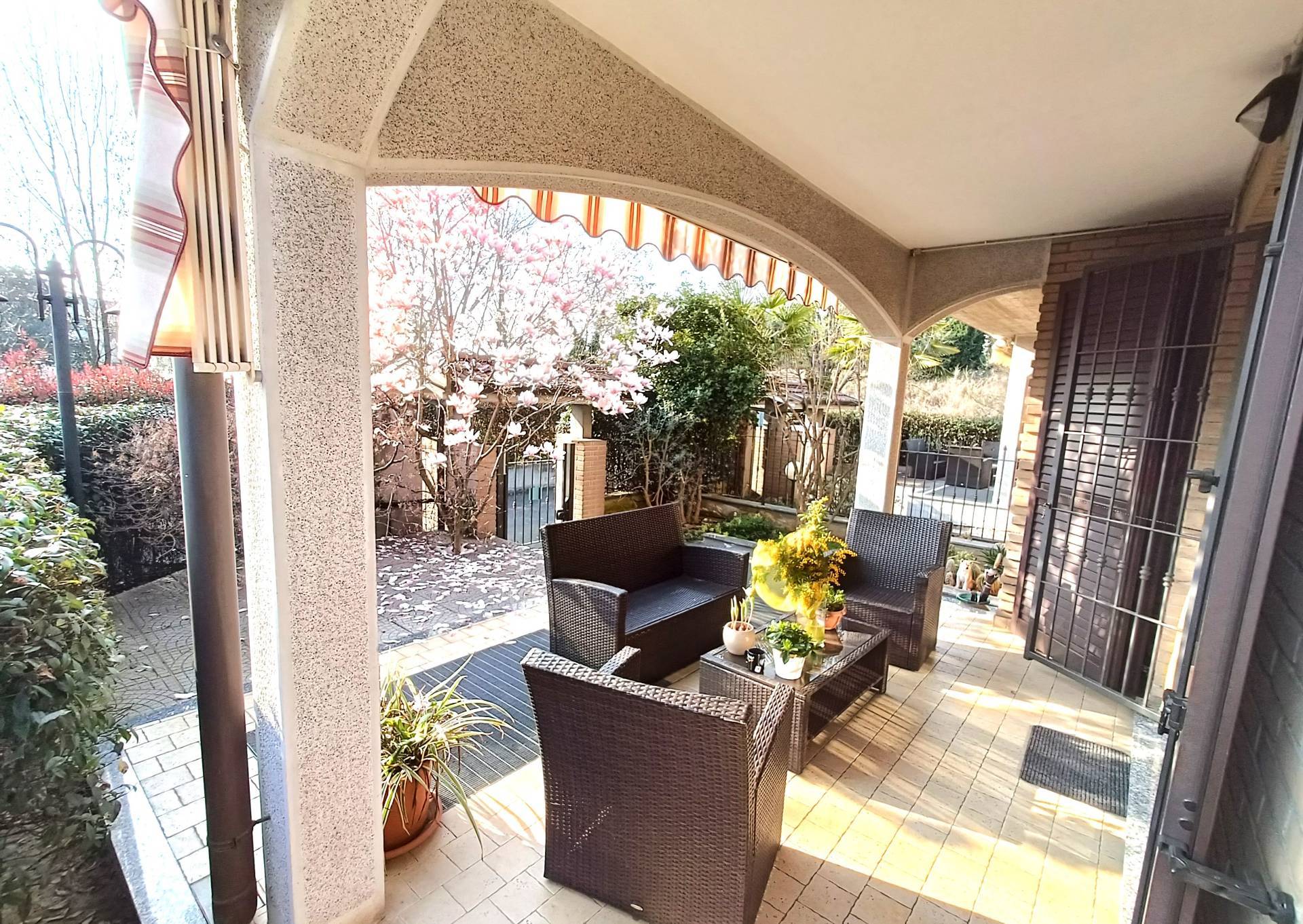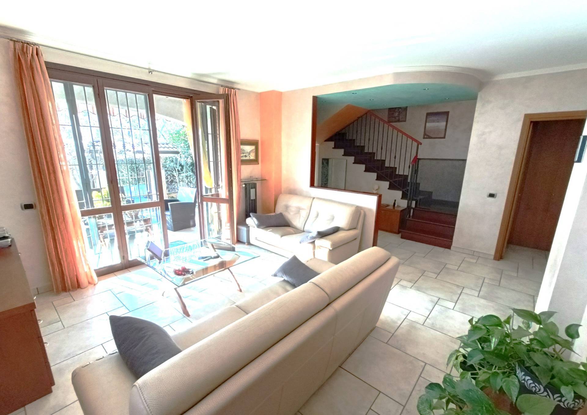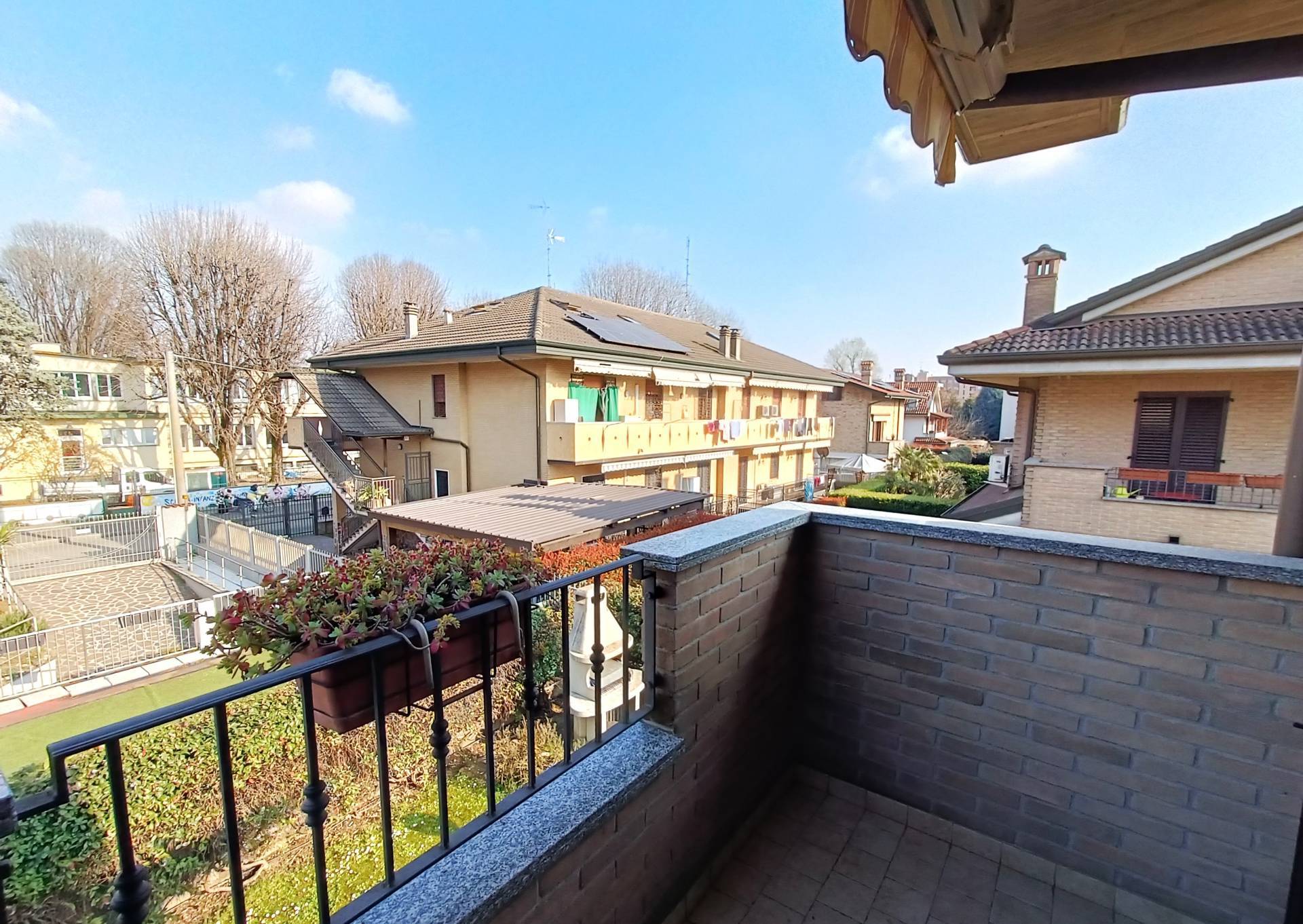 PADERNO DUGNANO: ubicata in una Via Privata, porzione di villa bifamiliare con esterni in mattoni a vista e composta da 4 locali disposti su 2 livelli di 65 mq. per piano così divisa: PT: ingresso con patio coperto, ampio soggiorno con zona pranzo, cucina abitabile con uscita sul giardino retrostante, bagno P1: disimpegno, 3 camere di cui una matrimoniale con bagno padronale e cabina armadio, 2 balconi e secondo servizio, sottotetto open sapce pavimentato e dotato di 3 lucernari e una finestra, oltre a predisposizione per eventuale servizio, accessibile con scala interna, taverna finestrata comunicante con il box triplo con serranda motorizzata e predisposizione per attacchi cucina, servizio con lavanderia e dispensa, giardino privato di 150 mq. con barbeque elettrico. IMPIANTO FOTOVOLTAICO a PANNELLI SOLARI - ANTIFURTO - IMPIANTO DI IRRIGAZIONE - TENDE MOTORIZZATE - ZANZARIERE ed INFERRIATE - CALDAIA A CONDENSAZIONE IBRIDA. OTTIMO STATO