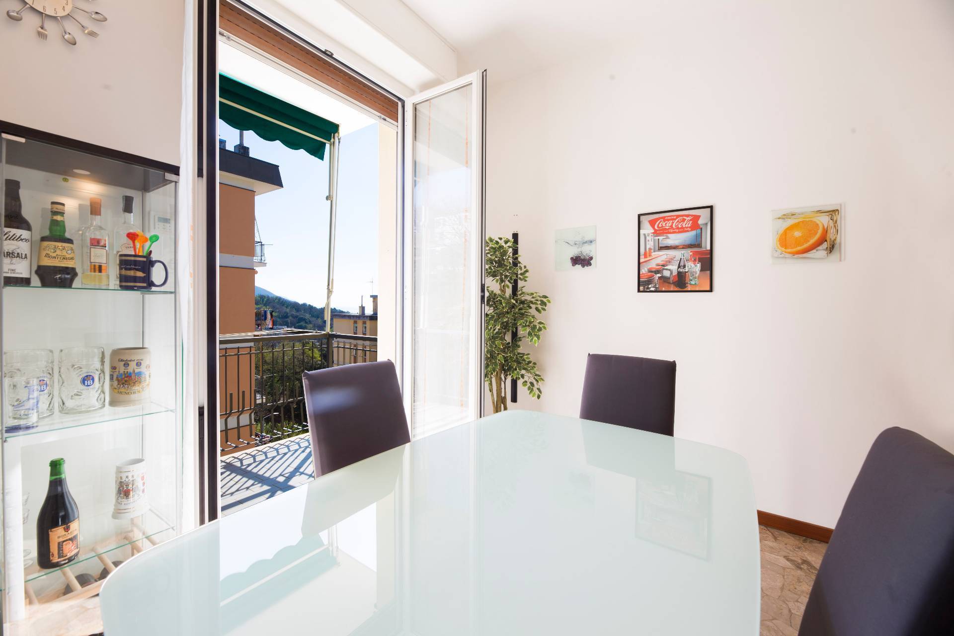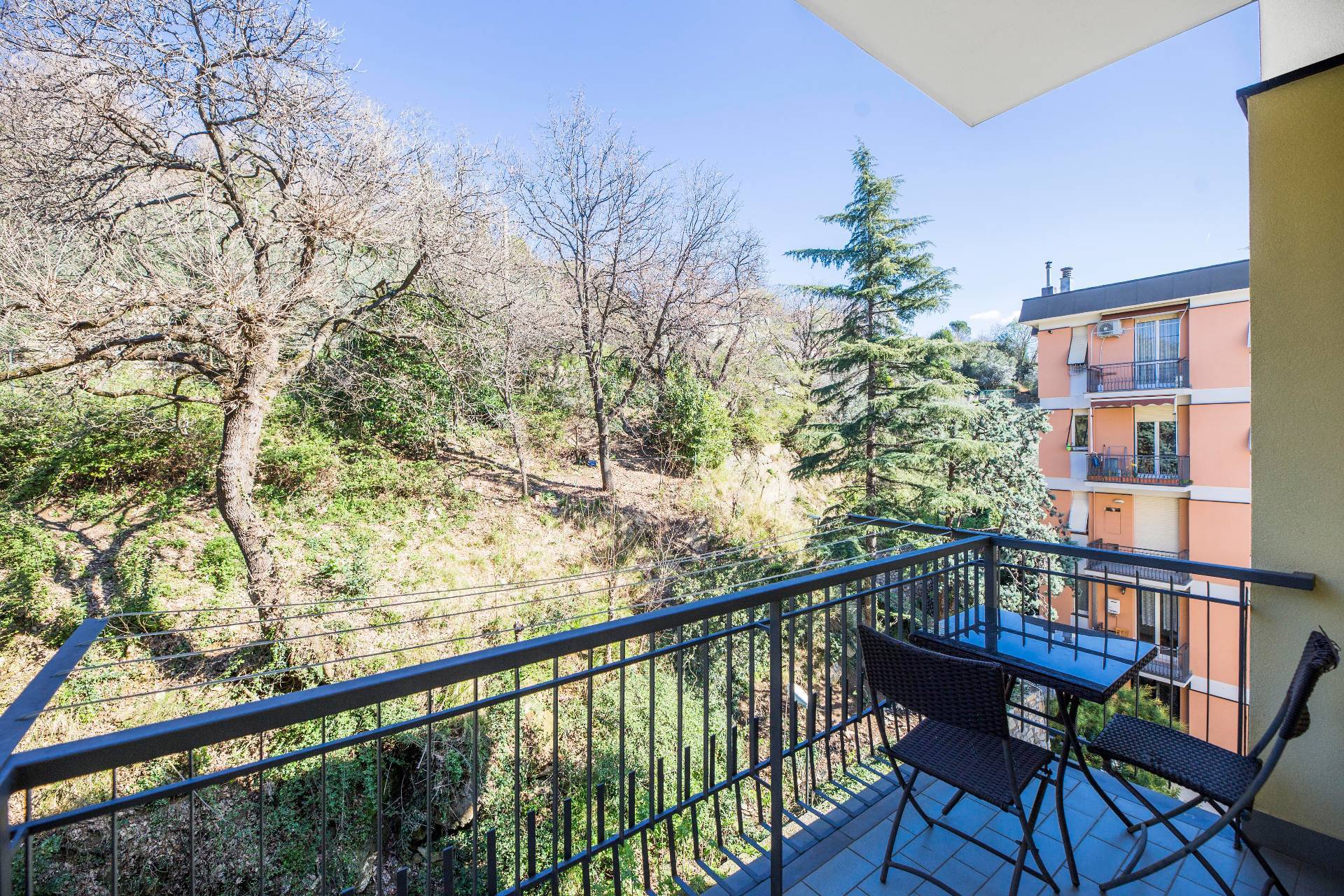 L'immobile, ristrutturato, è così composto: ingresso con porta blindata, ampia sala sulla quale insiste il primo dei due balconi terrazzati (vista monte/verde) e cucina abitabile con il secondo balcone (vista mare).