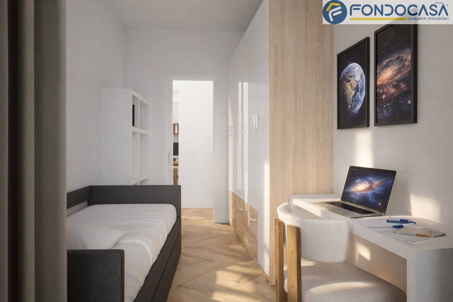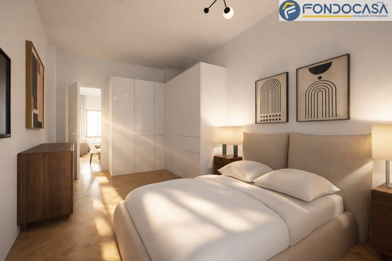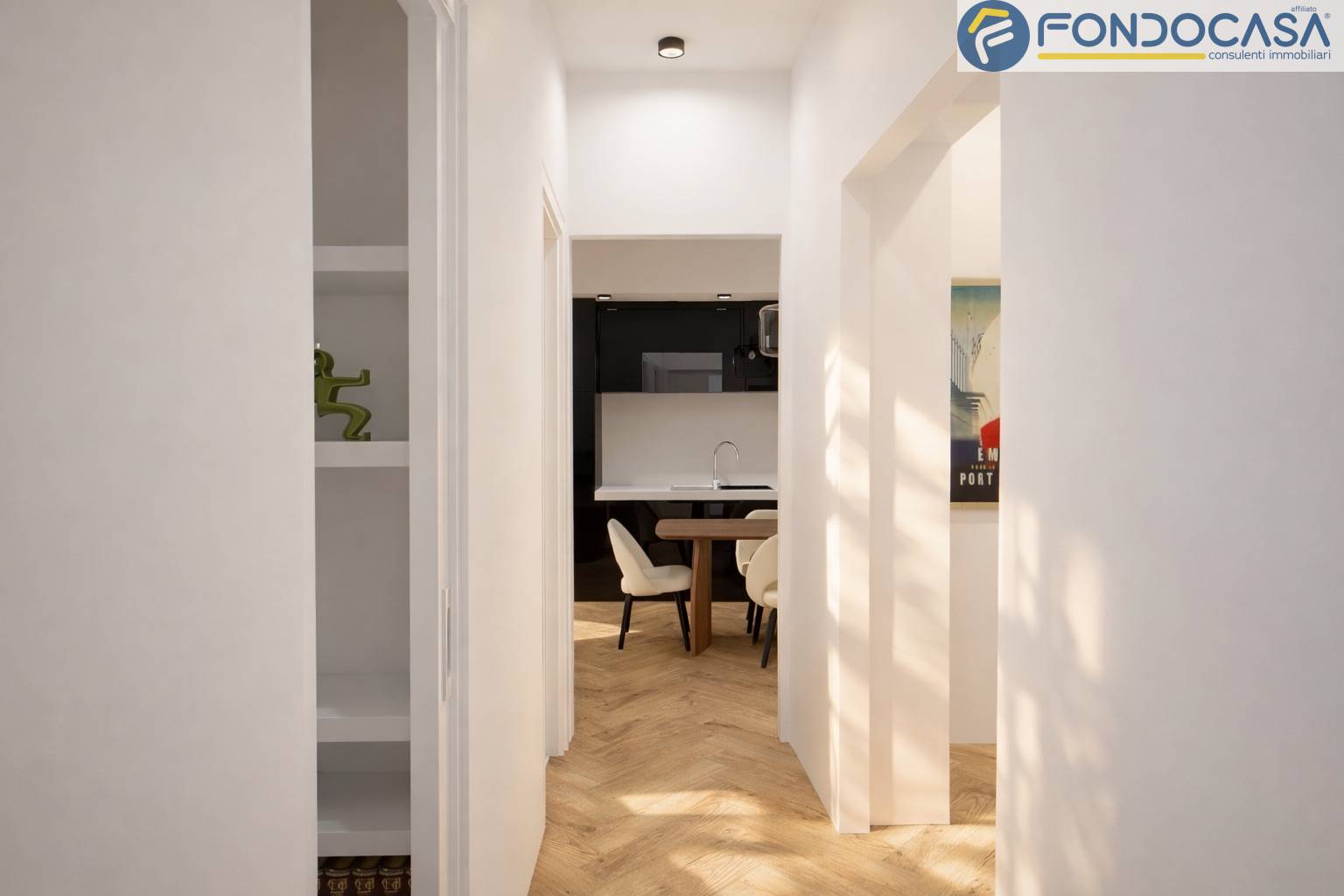 L´appartamento, curato nei minimi dettagli e pronto da abitare, si distingue per la distribuzione funzionale degli spazi: ingresso, luminoso soggiorno con cucina a vista e accesso al primo balcone, disimpegno, bagno finestrato moderno con box doccia, ampia camera matrimoniale con secondo balcone,cameretta , e un comodo studio versatile anche come cabina armadio.