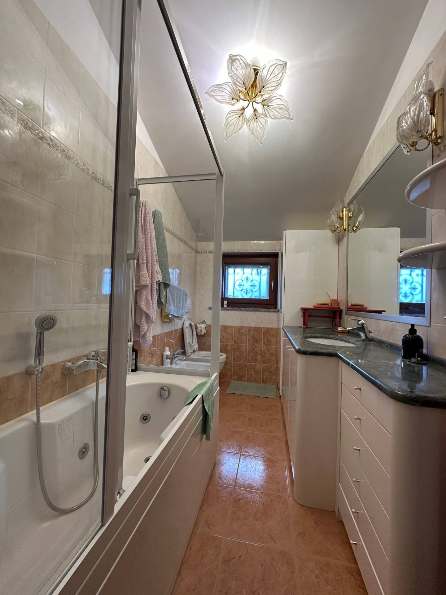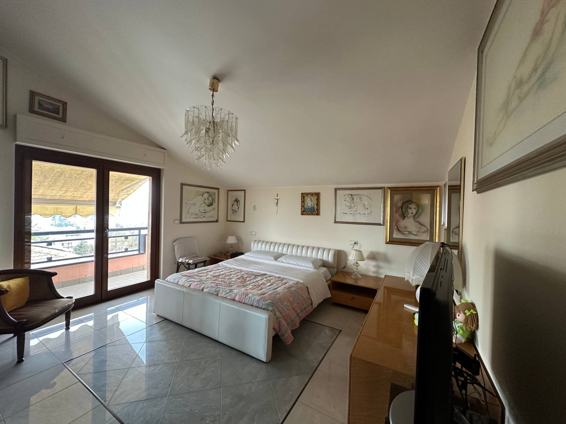 due camere matrimoniali, bagno con vasca idromassaggio e balconi su due lati.