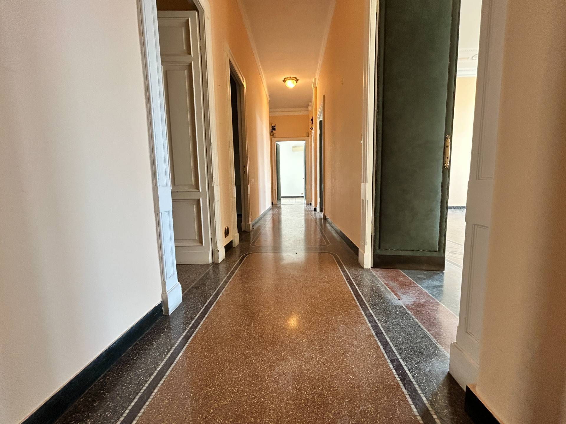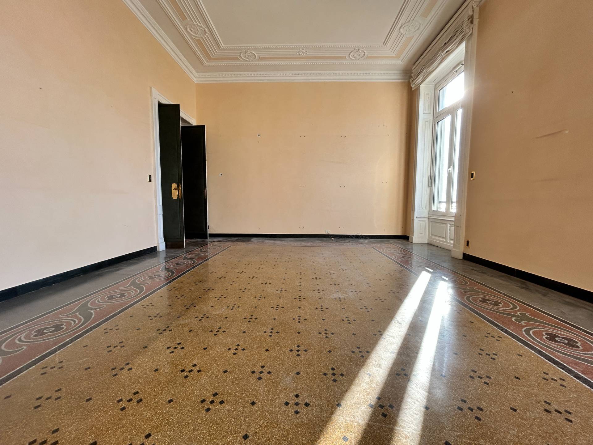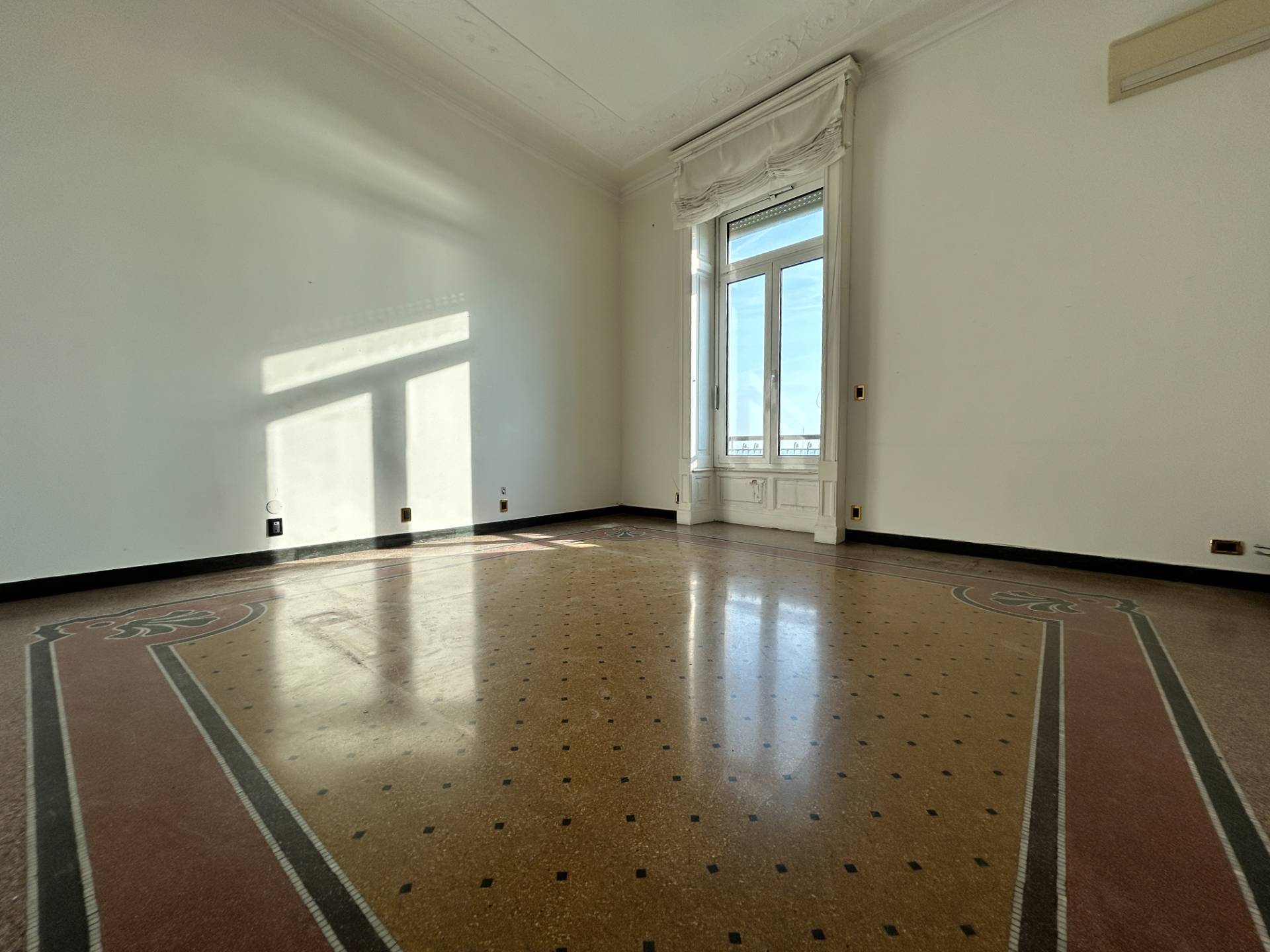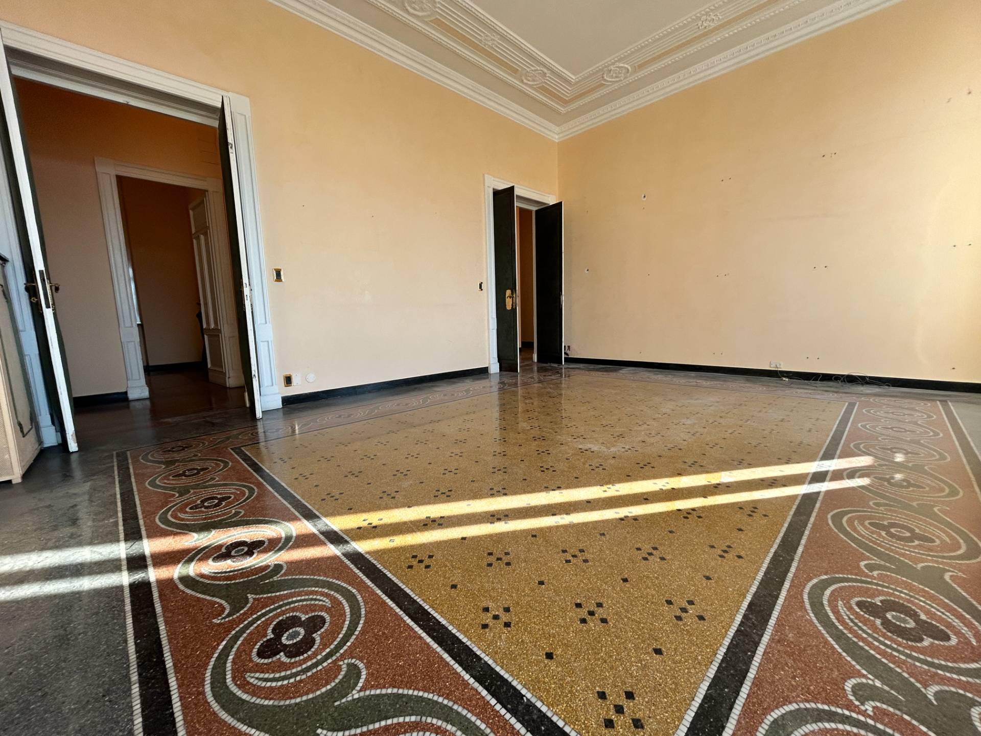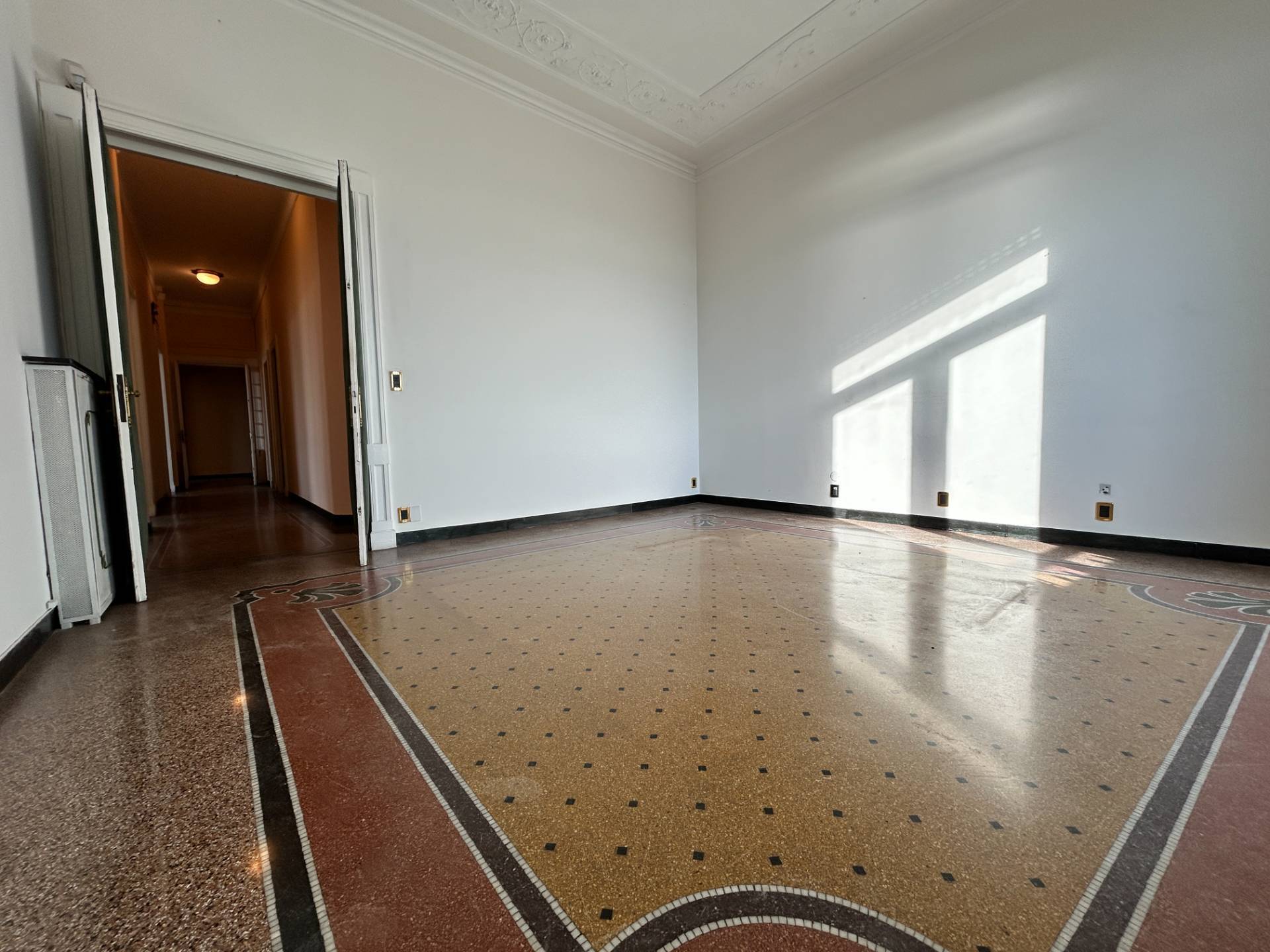 I pavimenti sono in parte in parquet e in parte in splendida graniglia, mentre i soffitti alti 3,75 m, sono decorati con magnifici stucchi.