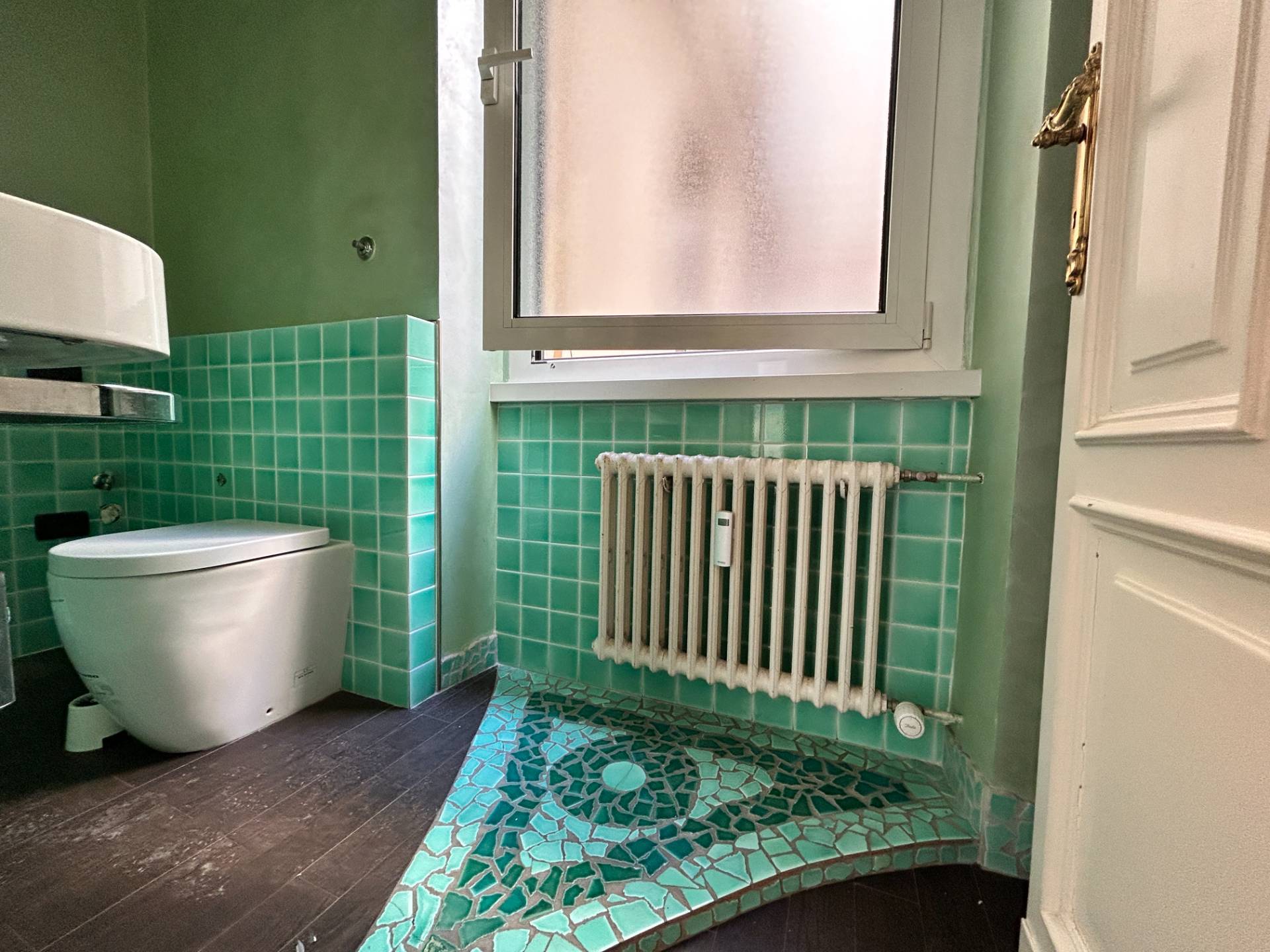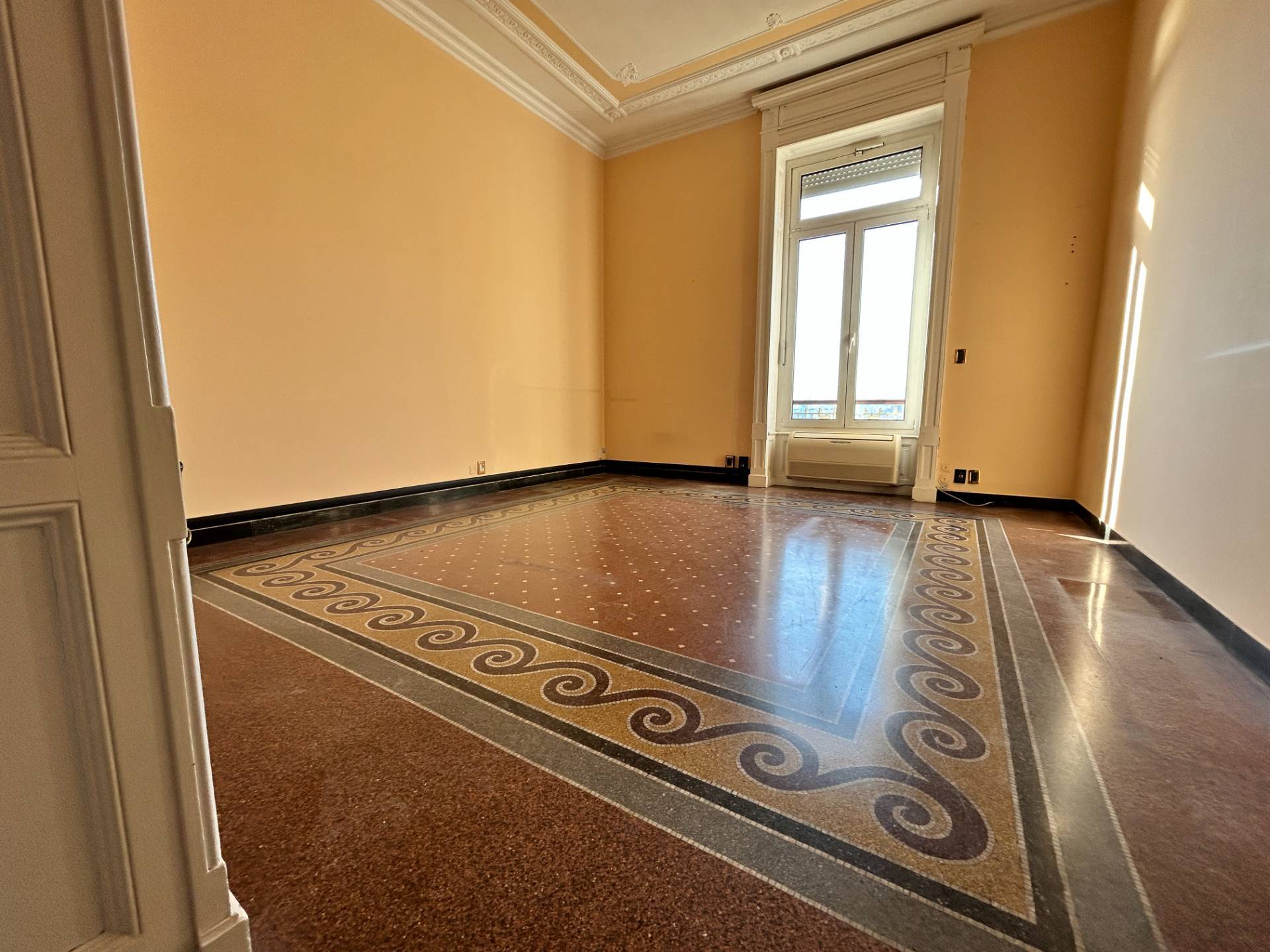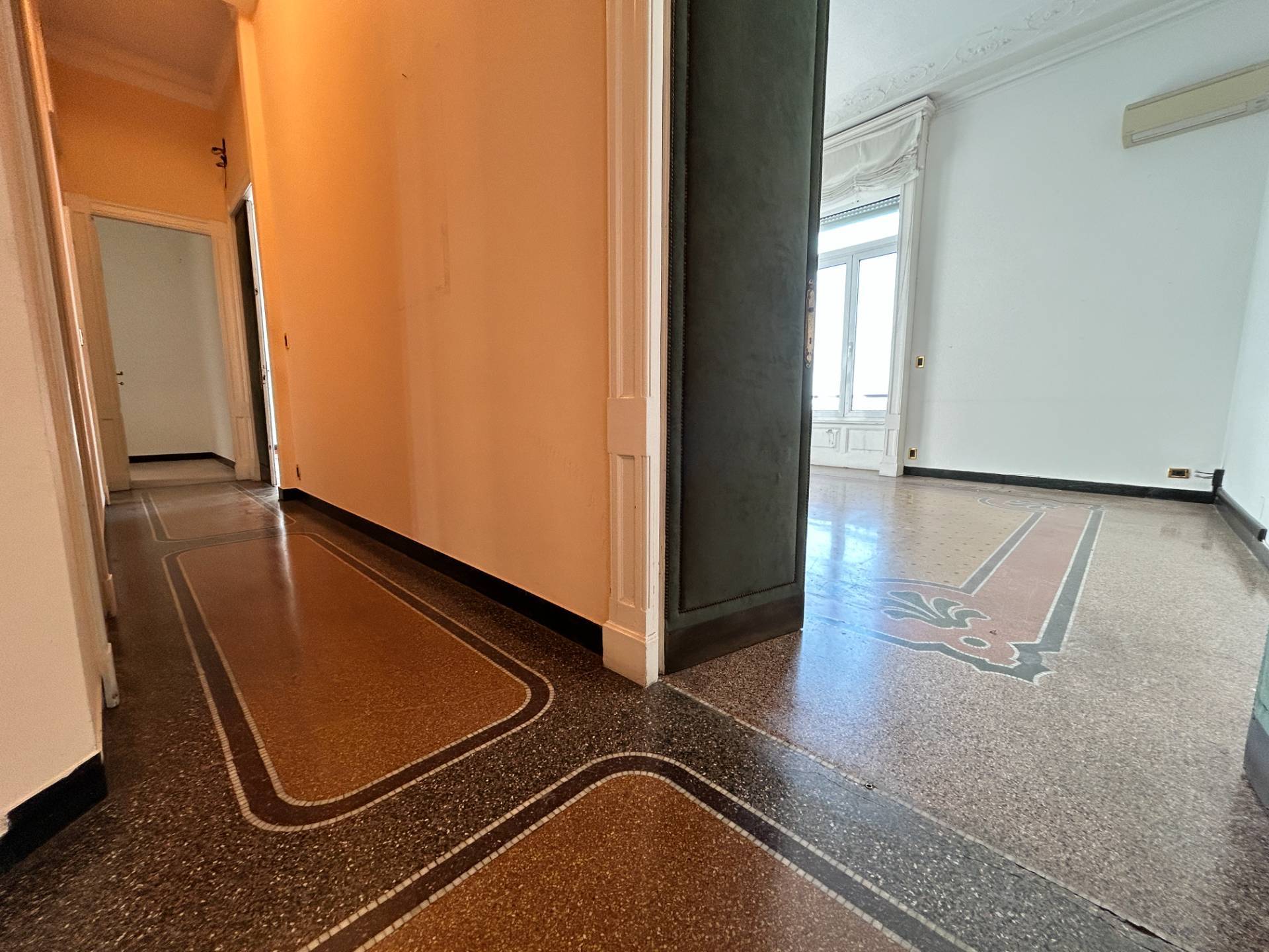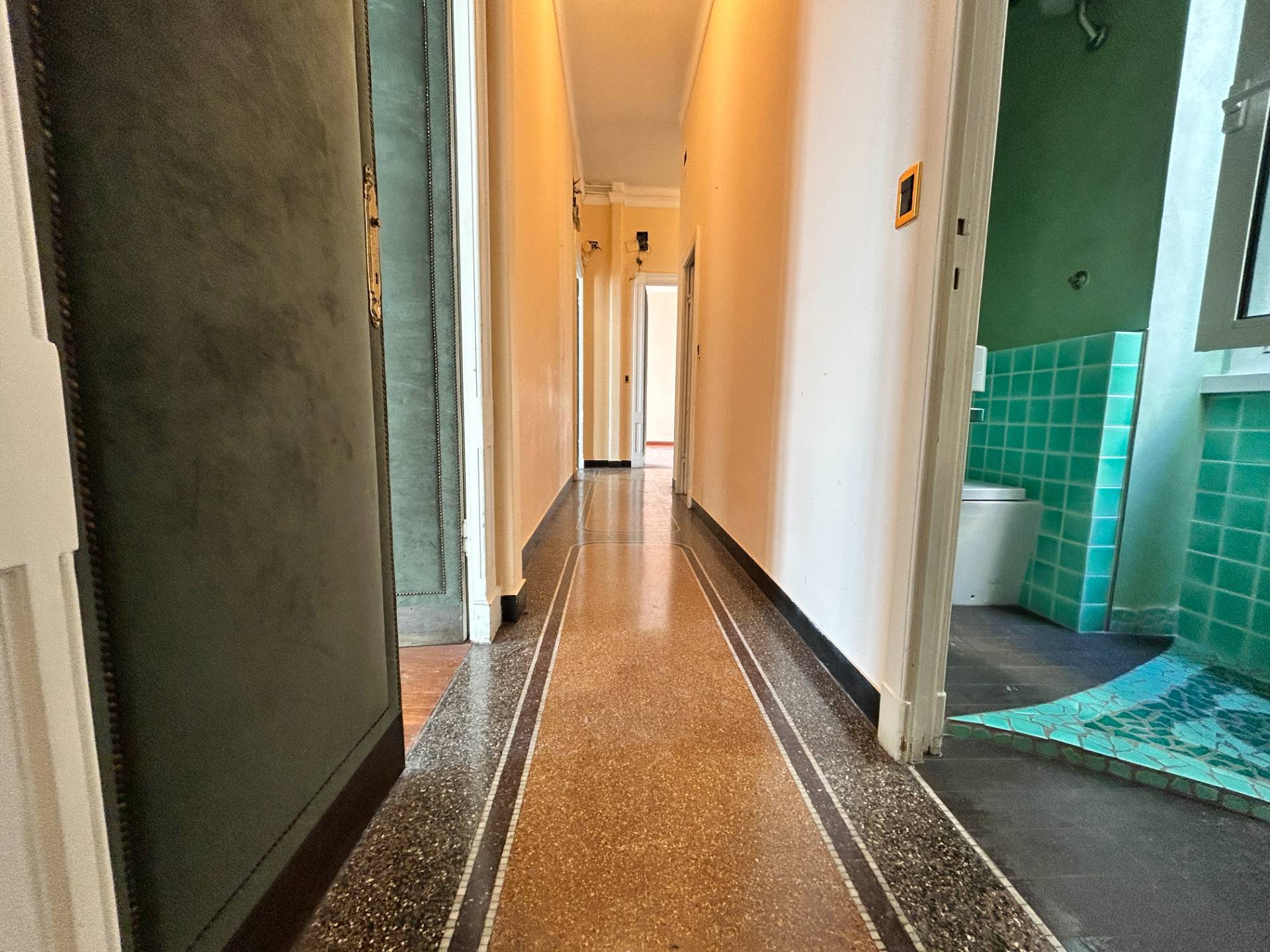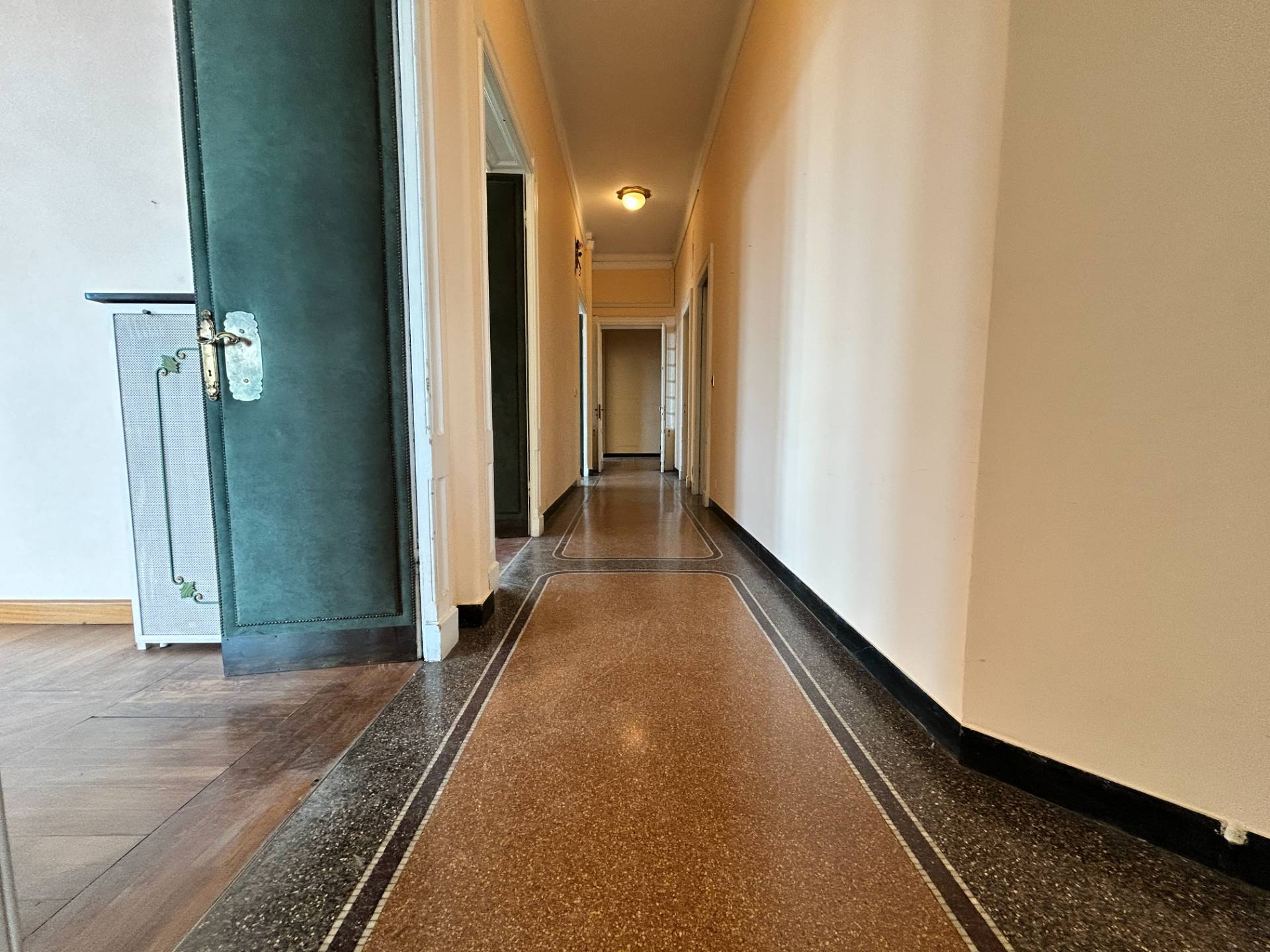 I pavimenti sono in parte in parquet e in parte in splendida graniglia, mentre i soffitti alti 3,75 m, sono decorati con magnifici stucchi.