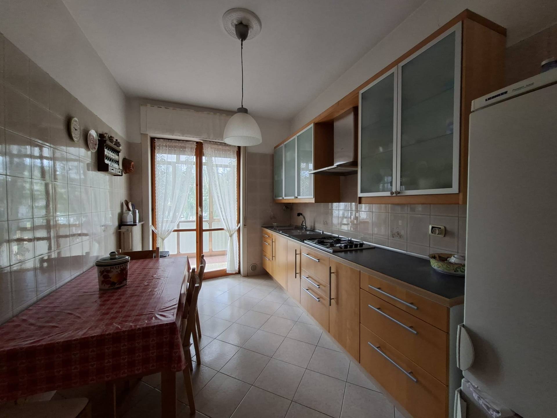 La cucina abitabile, dotata di balcone verandato, è spaziosa e accogliente, ideale per trascorrere piacevoli momenti in famiglia.