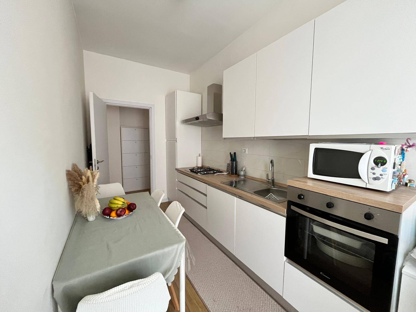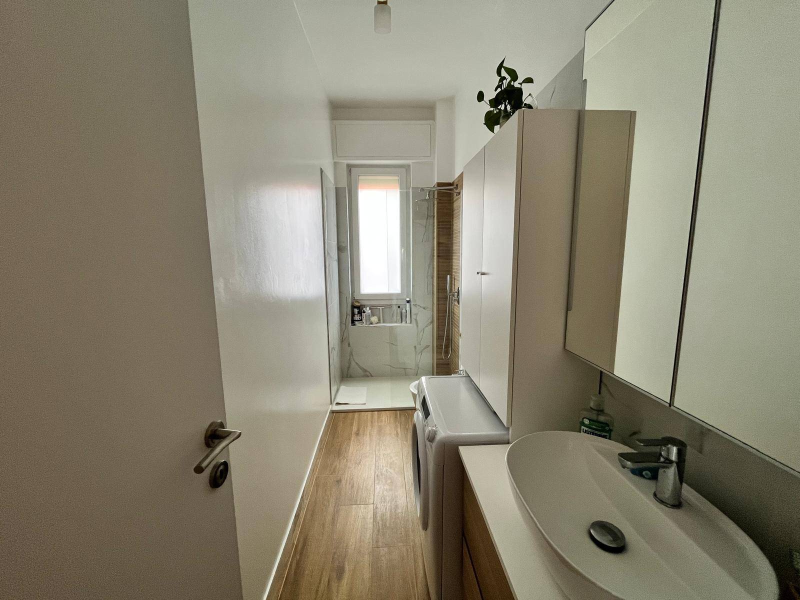L´appartamento è posto al quarto piano con ascensore ed è composto da ingresso su soggiorno con accesso al balcone, cucina abitabile separata collegata allo stesso balcone, camera da letto matrimoniale e bagno finestrato dotato di box doccia. Gli spazi risultano ben distribuiti e la recente ristrutturazione rende l´immobile pronto all´uso.