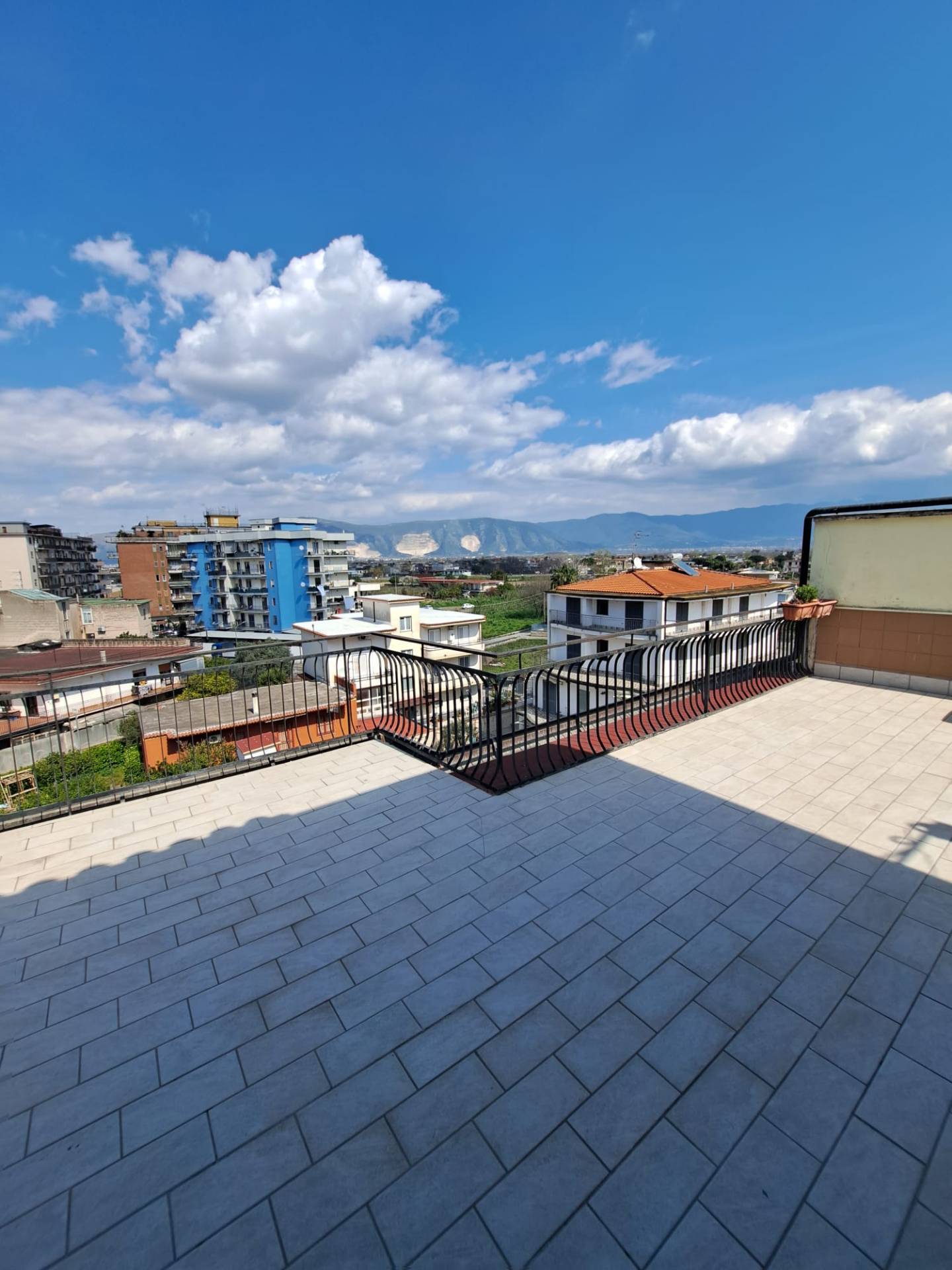 Fondocasa Marigliano propone in Esclusiva in Centro Marigliano via San Francesco, al IV piano, appartamento Panoramico composto da ingresso, salone ampio, cucina grande con camino, 3 camere da letto matrimoniali, 2 acc.ri e ripostiglio. A completare l'immobile terrazzo a livello e di copertura + box auto. Buono stato.